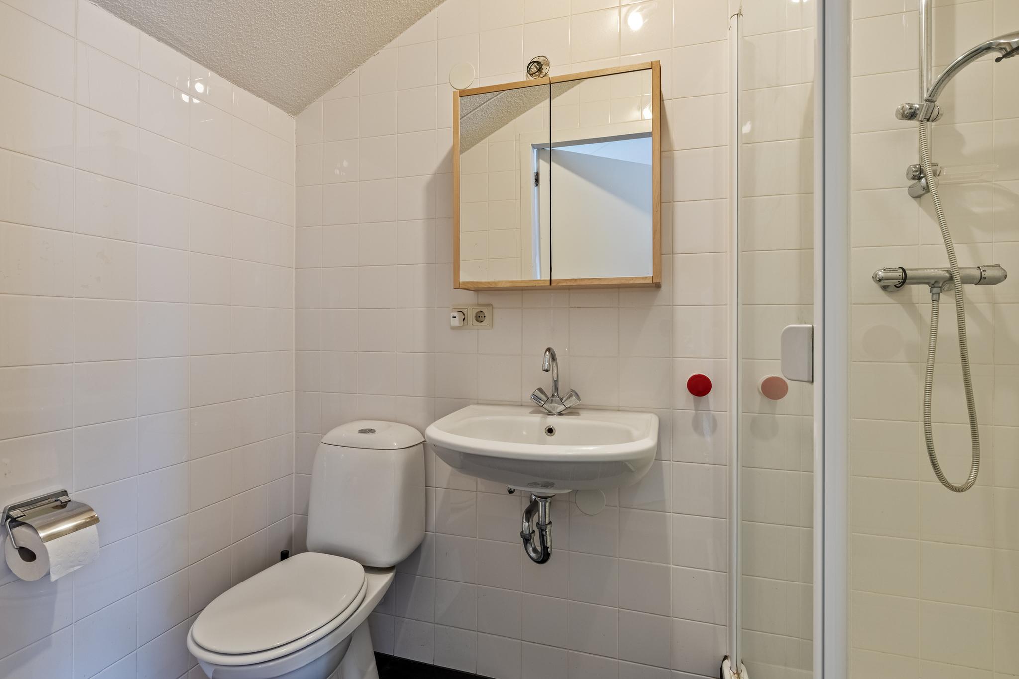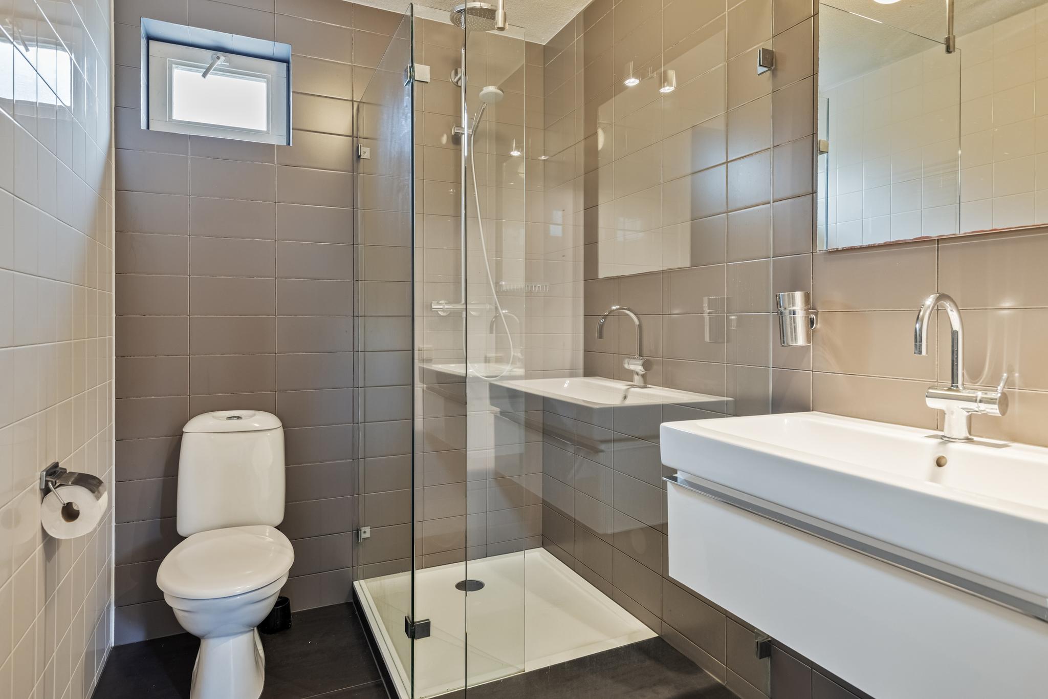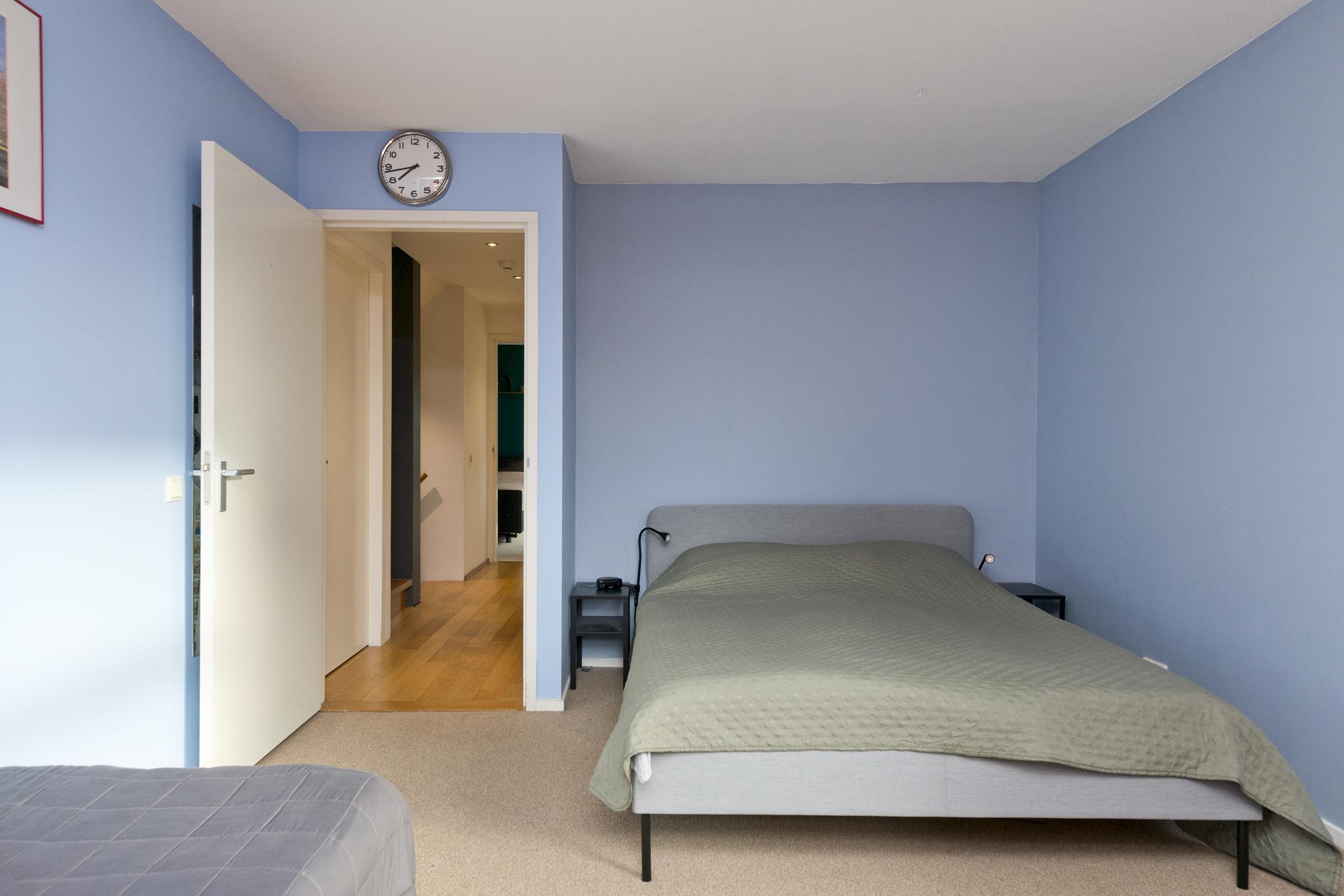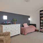 overloop, met een stookruimte, wasruimte, zeer royale slaapkamer en een slaapkamer met wederom een eigen badkamer. Deze badkamer bestaat uit toilet, wastafel en douche.