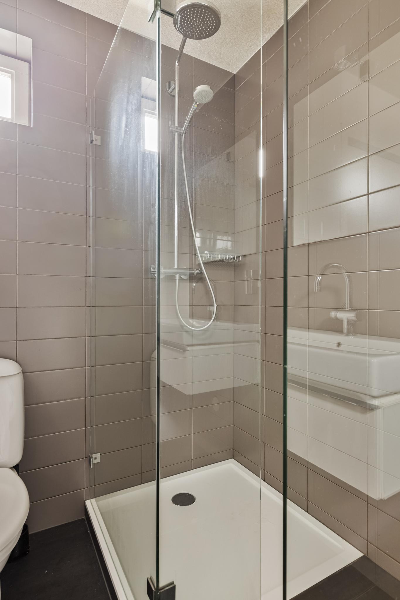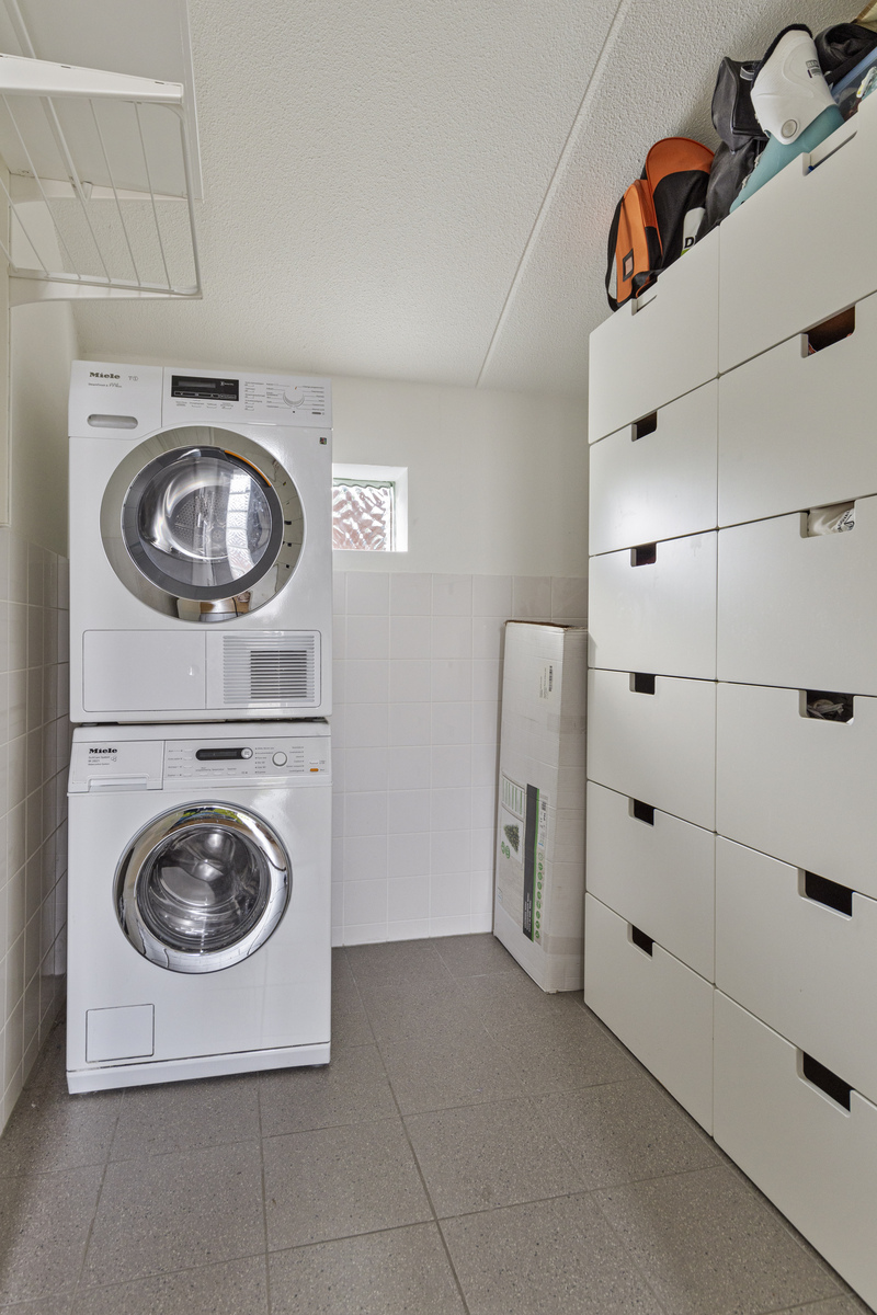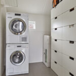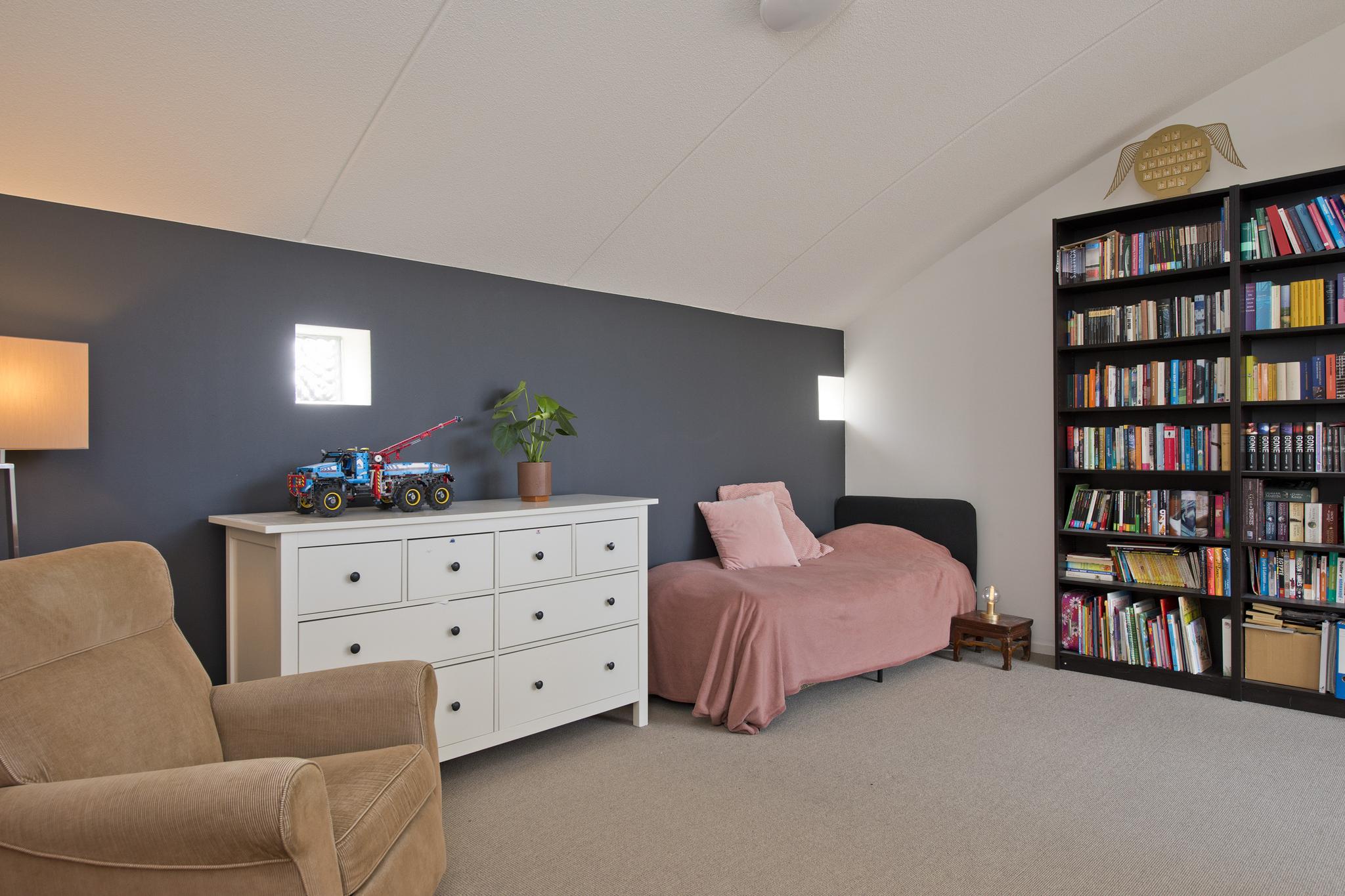 overloop, met een stookruimte, wasruimte, zeer royale slaapkamer en een slaapkamer met wederom een eigen badkamer. Deze badkamer bestaat uit toilet, wastafel en douche.