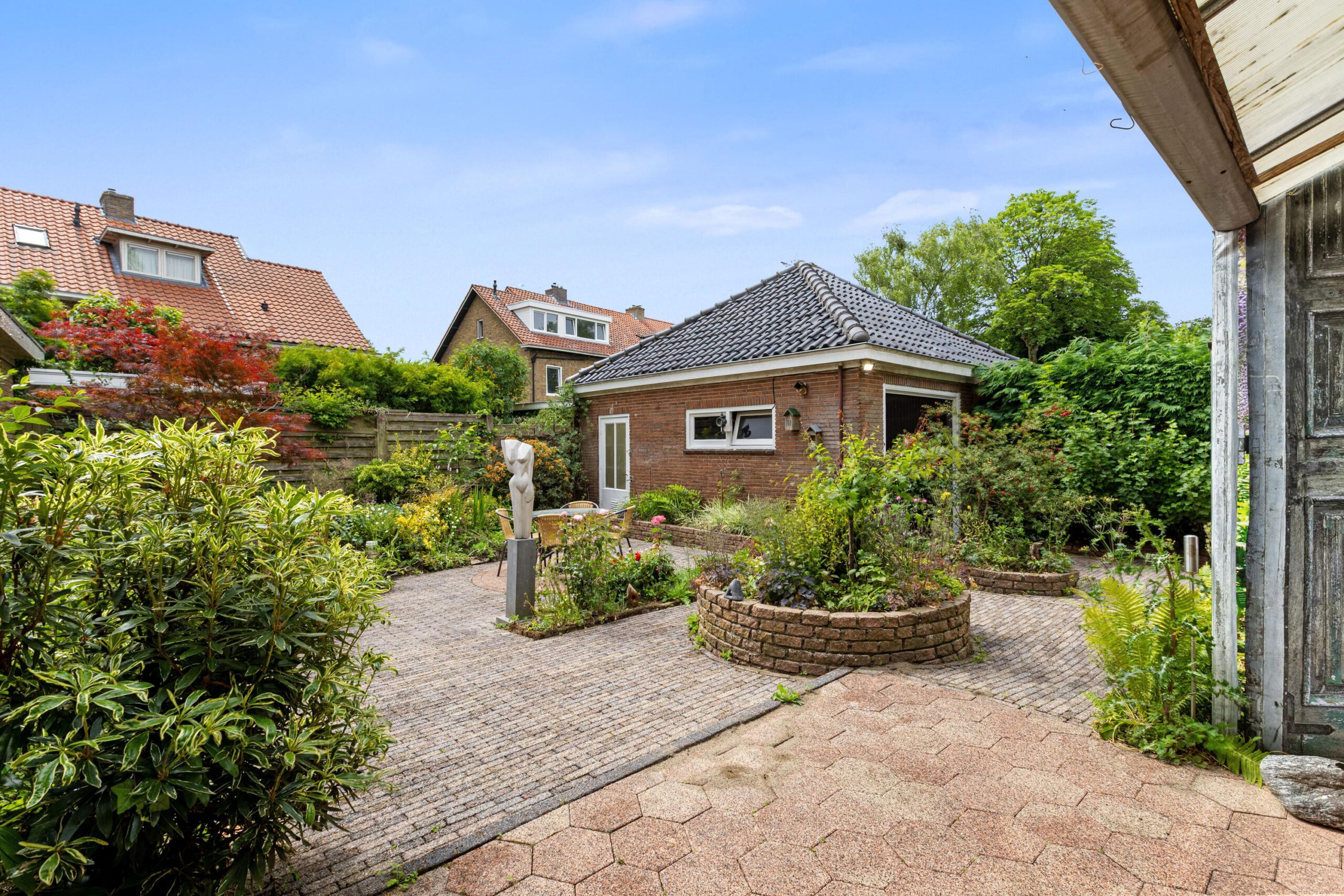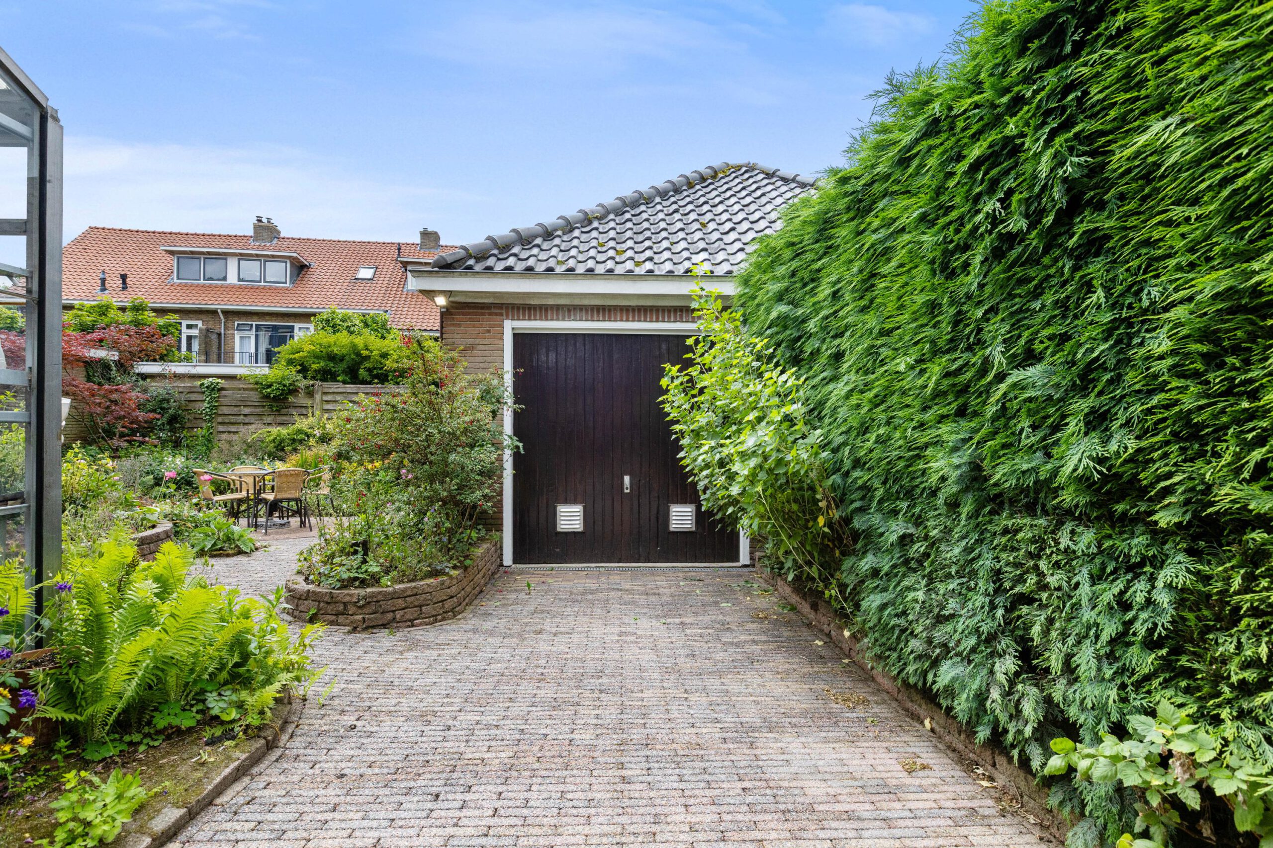De ruime achtertuin nodigt uit om op zonnige dagen te ontspannen, te tuinieren of lekker buiten te eten. Aan de woning bevindt zich bovendien een kweekkas – perfect voor het zelf kweken van kruiden en jonge planten. De oprit en garage bieden voldoende parkeergelegenheid op eigen terrein, en de garage beschikt ook nog over een praktische vliering voor extra bergruimte.