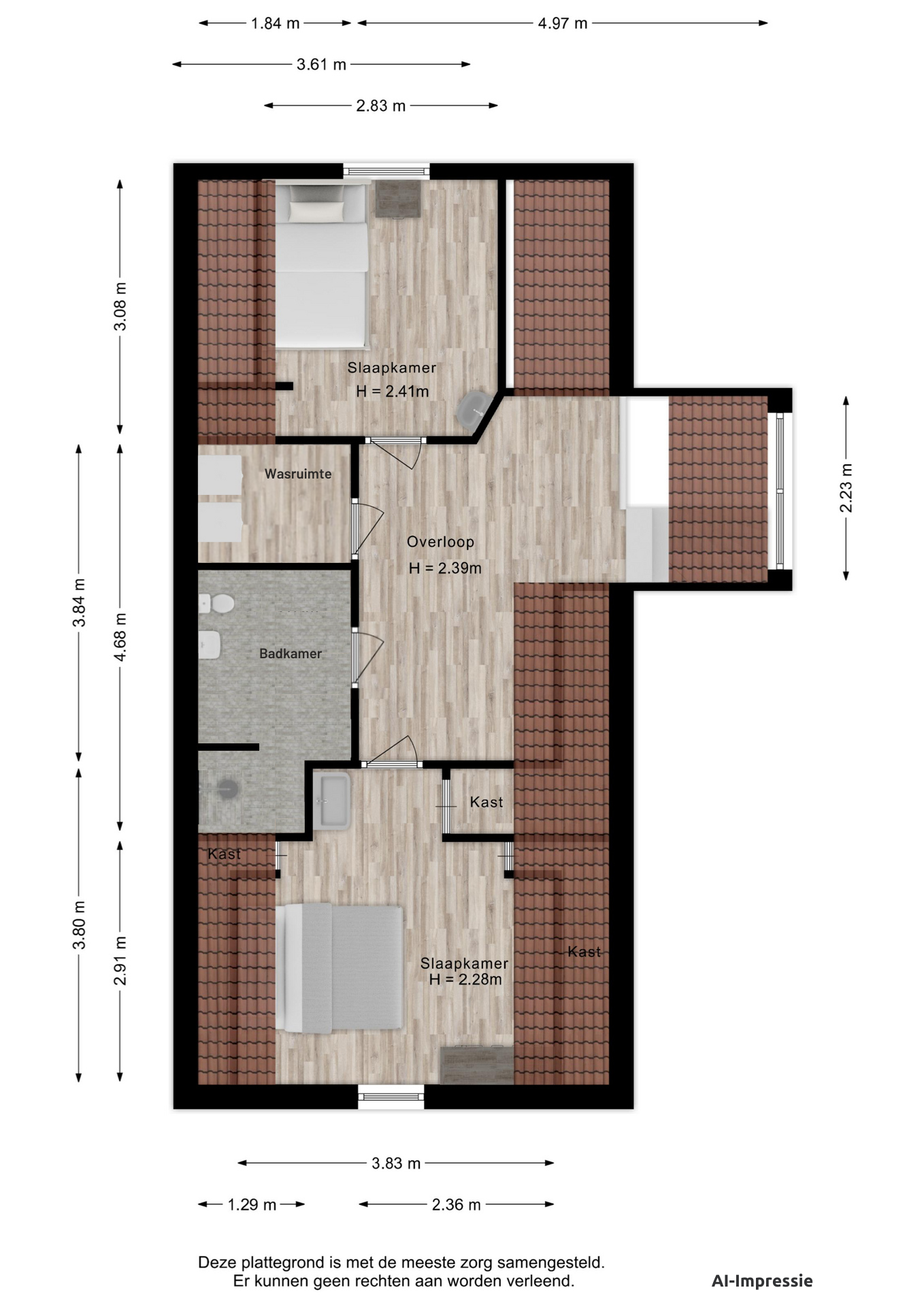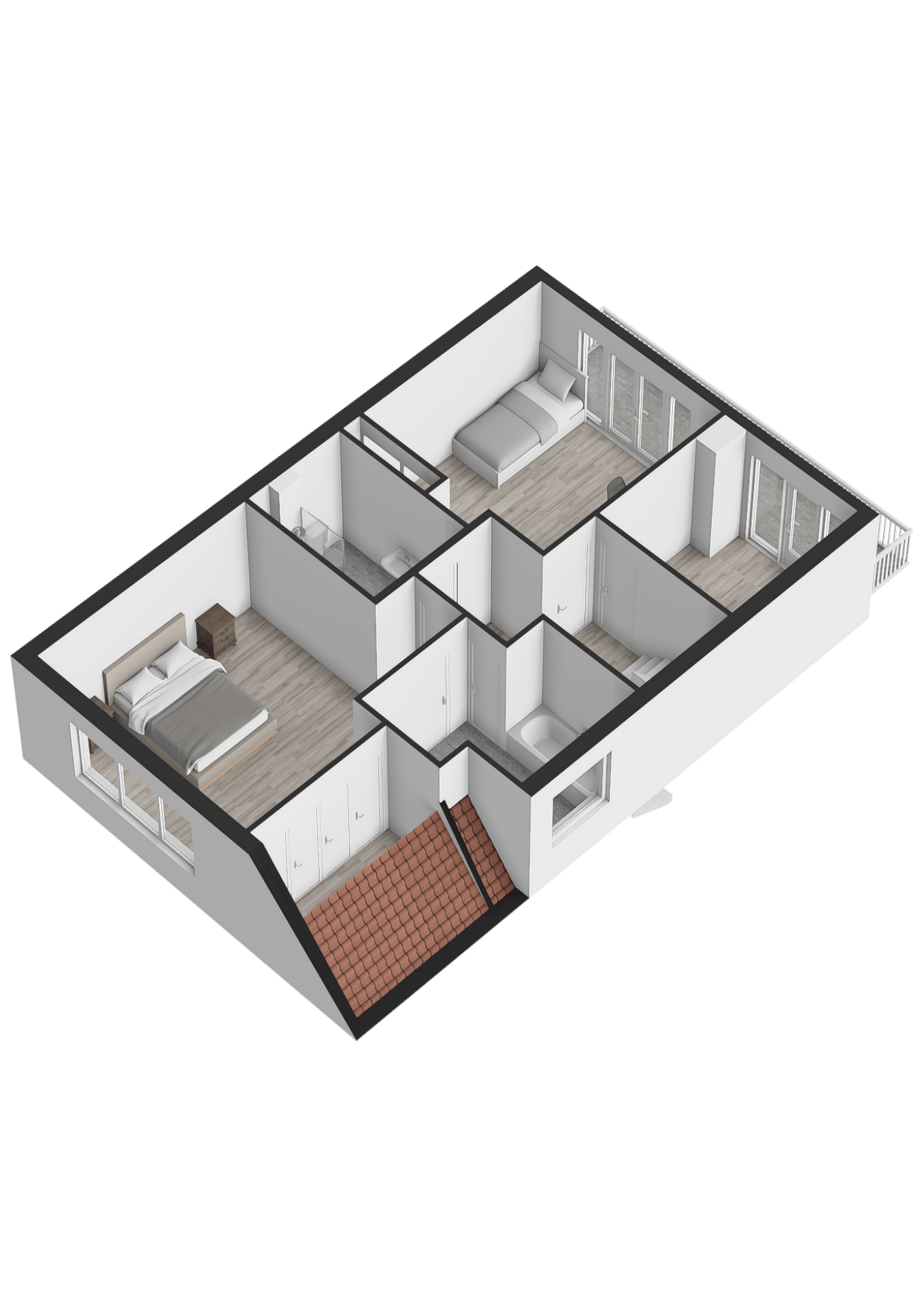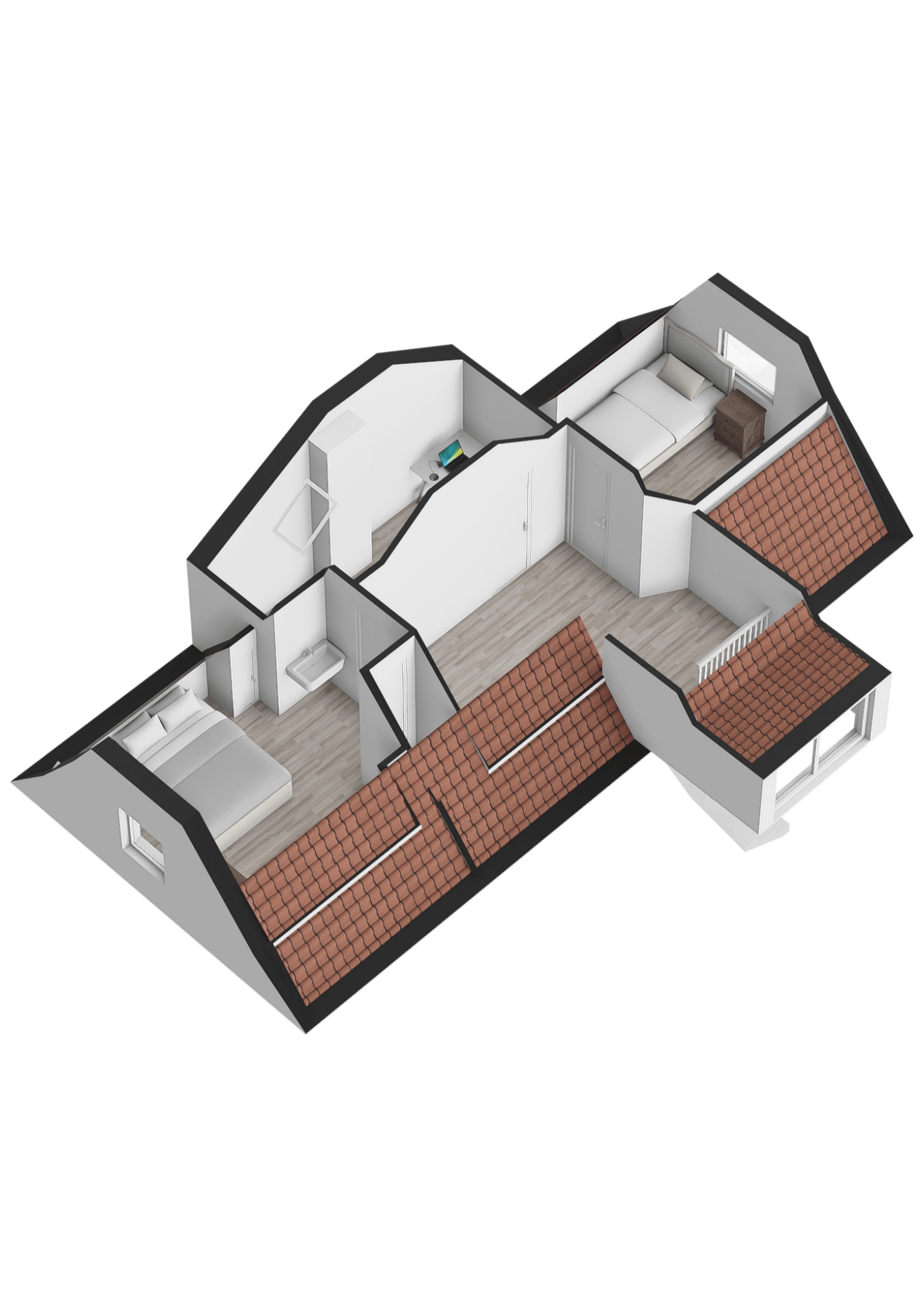De zolderverdieping verrast met nog eens twee slaapkamers en een extra kamer. Deze extra kamer biedt volop mogelijkheden – van werkkamer tot hobbyruimte, of zelfs een extra badkamer voor nog meer comfort. Een extra badkamer is ingetekend op de nieuwe plattegrond.