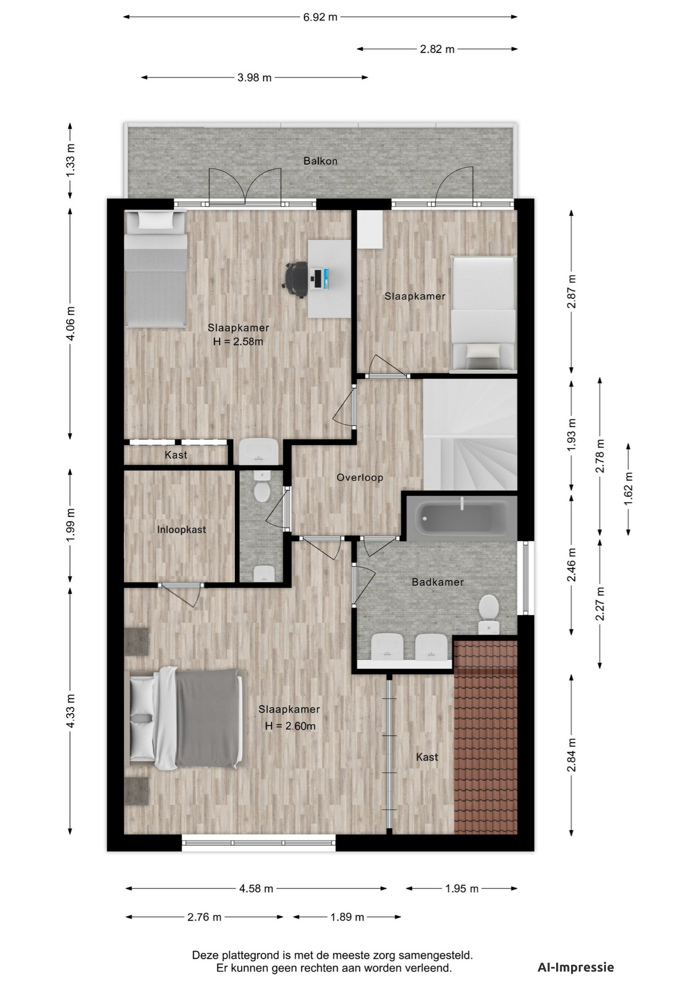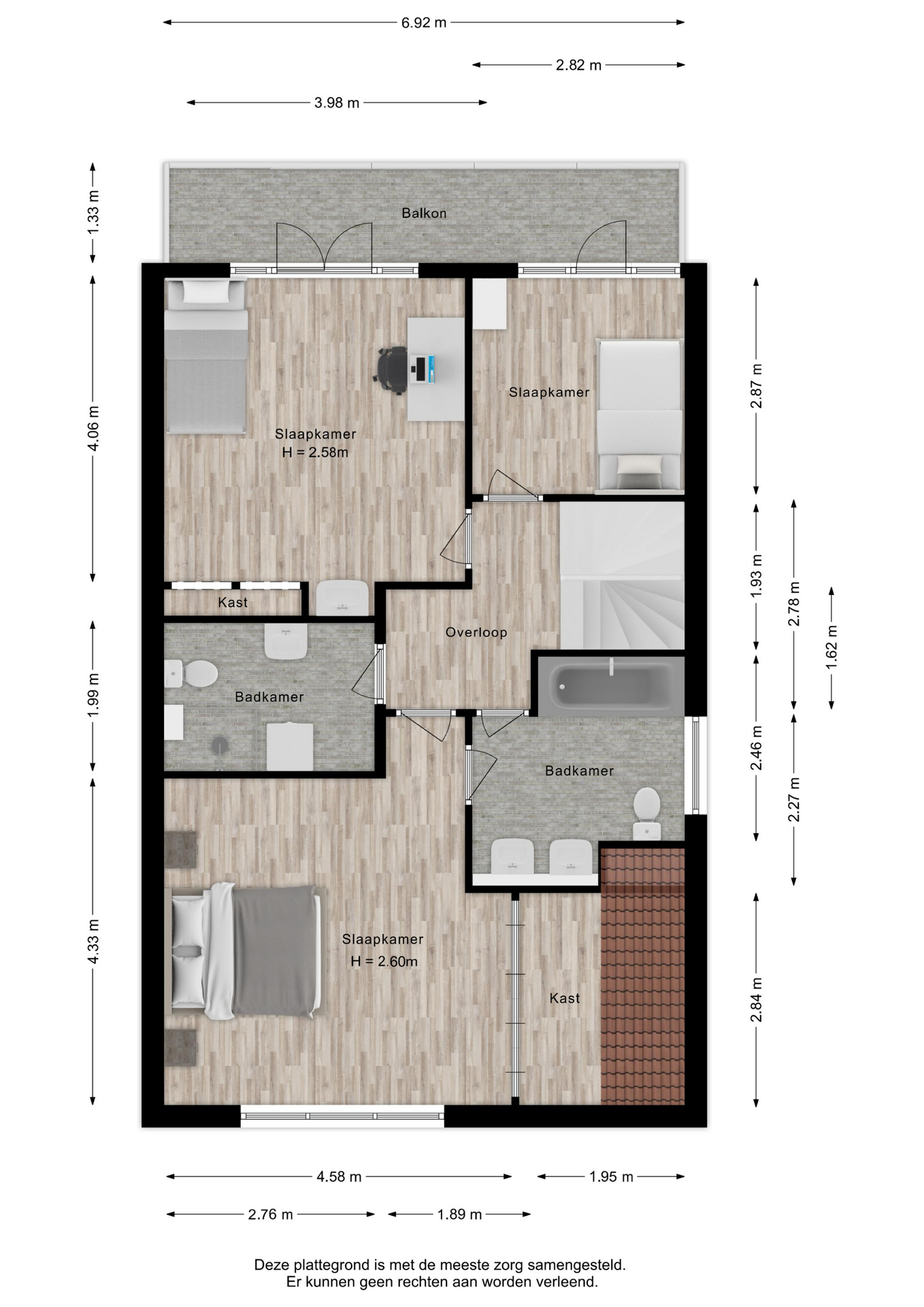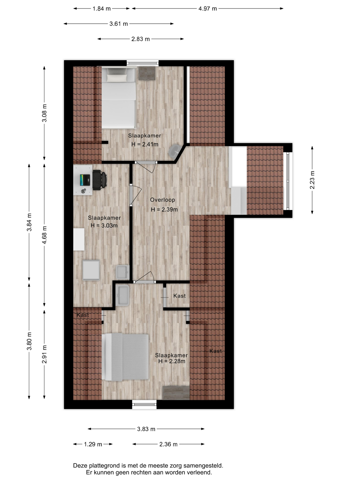 De zolderverdieping verrast met nog eens twee slaapkamers en een extra kamer. Deze extra kamer biedt volop mogelijkheden – van werkkamer tot hobbyruimte, of zelfs een extra badkamer voor nog meer comfort. Een extra badkamer is ingetekend op de nieuwe plattegrond.