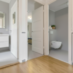 Op de eerste verdieping bevinden zich drie slaapkamers en twee badkamers, ideaal voor een gezin dat ruimte en privacy waardeert. De vernieuwde plattegronden tonen bovendien een interessante optie: de badkamer die grenst aan de master bedroom kan worden omgevormd tot een ruime inloopkast.
