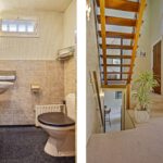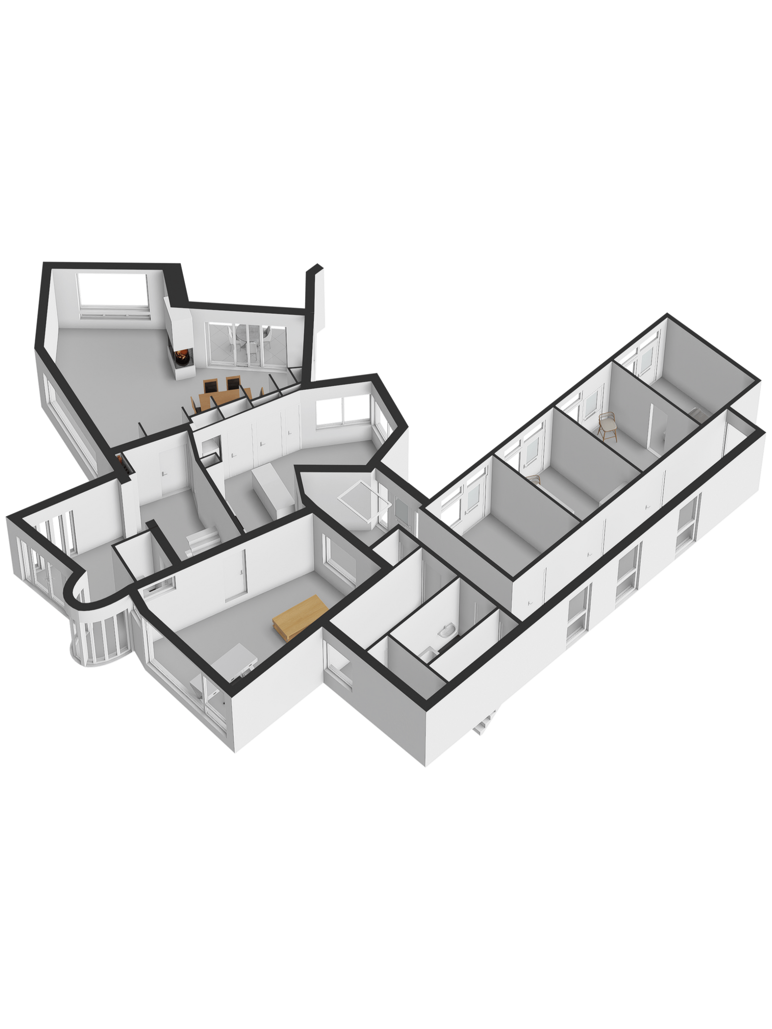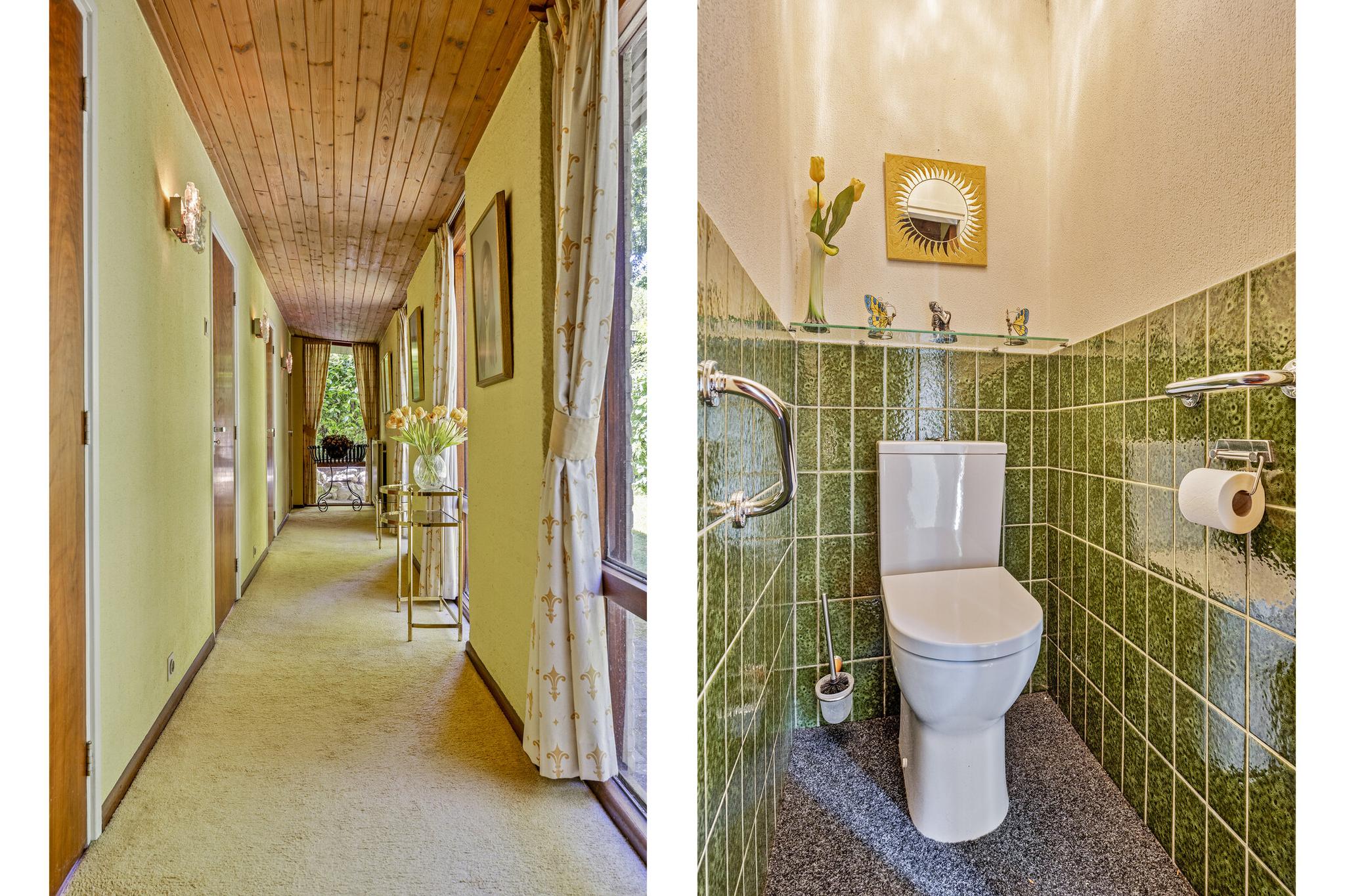 Vervolgens treffen we de aanbouw aan die in 1974 gerealiseerd is en 4 ruime slaapkamers heeft, 2 badkamers, bijkeuken en een multifunctionele ruimte in het souterrain.