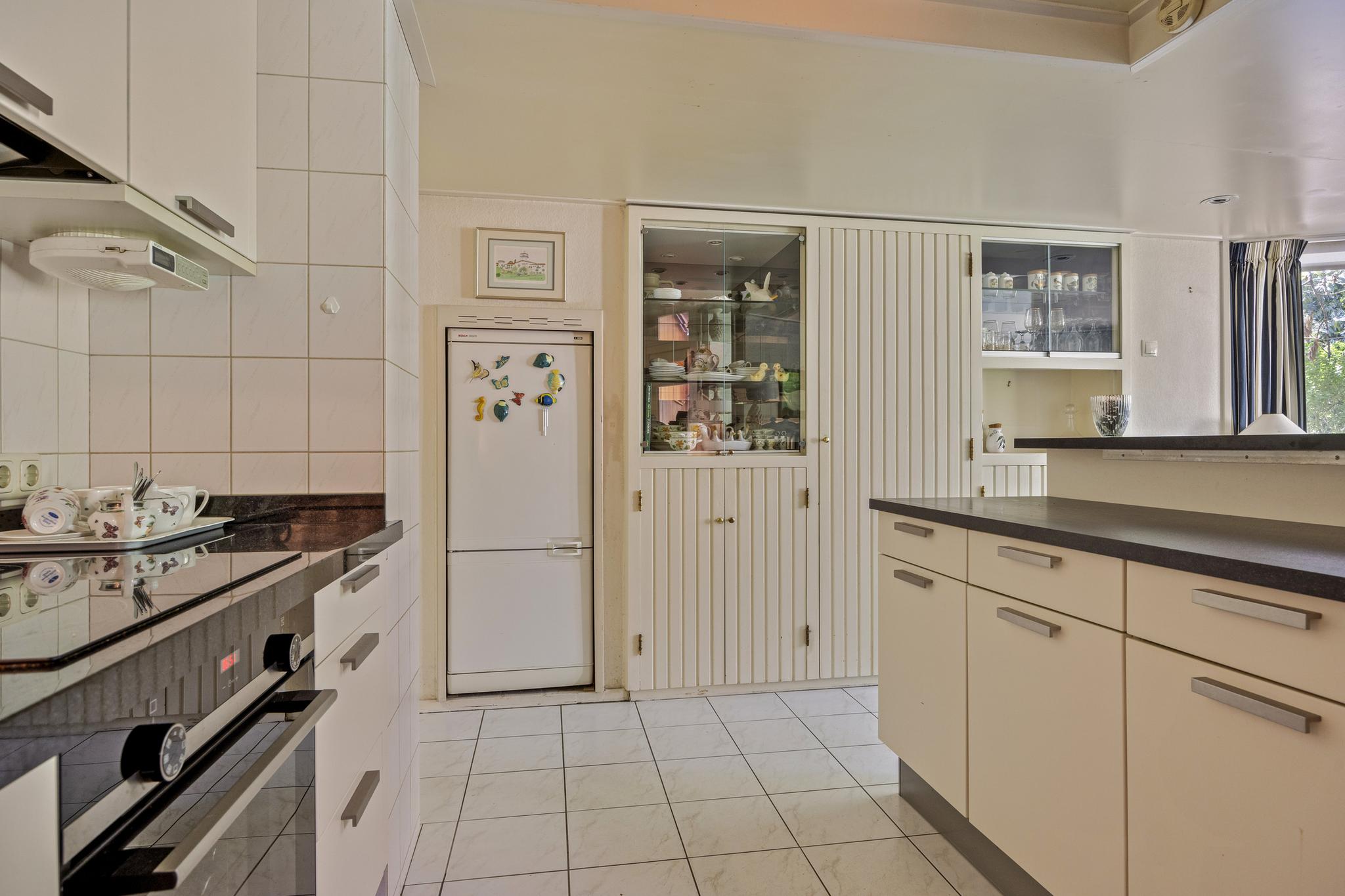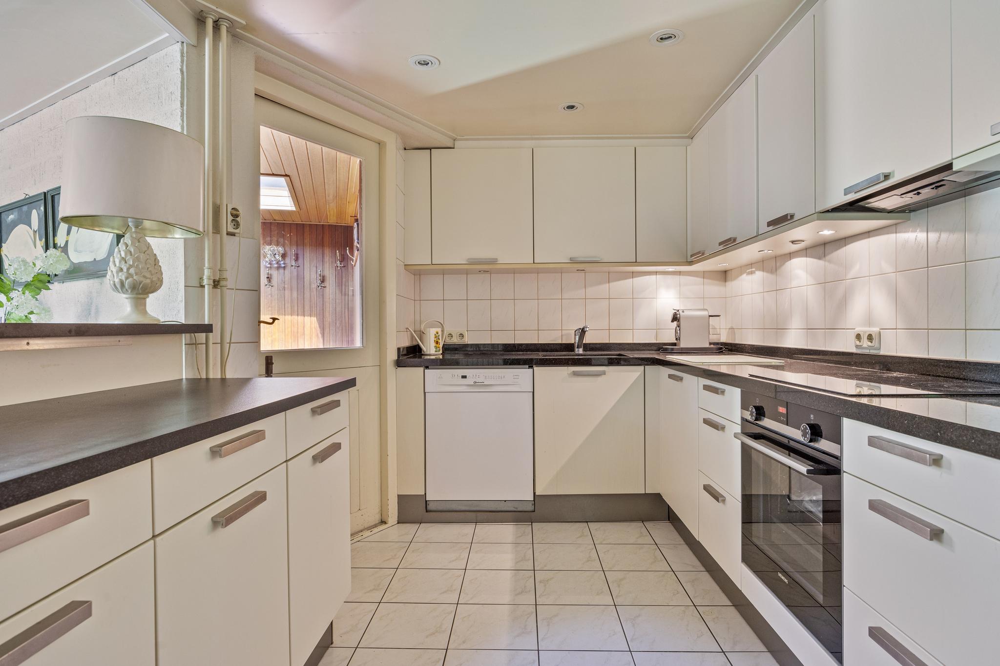 Als we verder gaan op de begane grond komen we in de leefkeuken met een apart zitgedeelte dat zicht heeft over de tuin en terras.