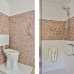 Op de 1e verdieping vinden we een 2 badkamers en een grote masterbedroom (voorheen 2 slaapkamers)
