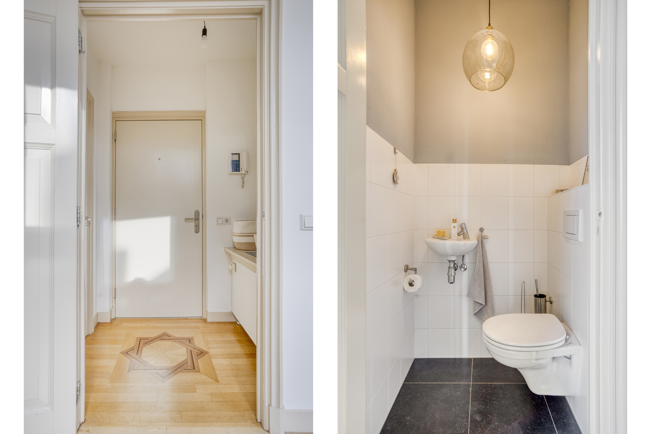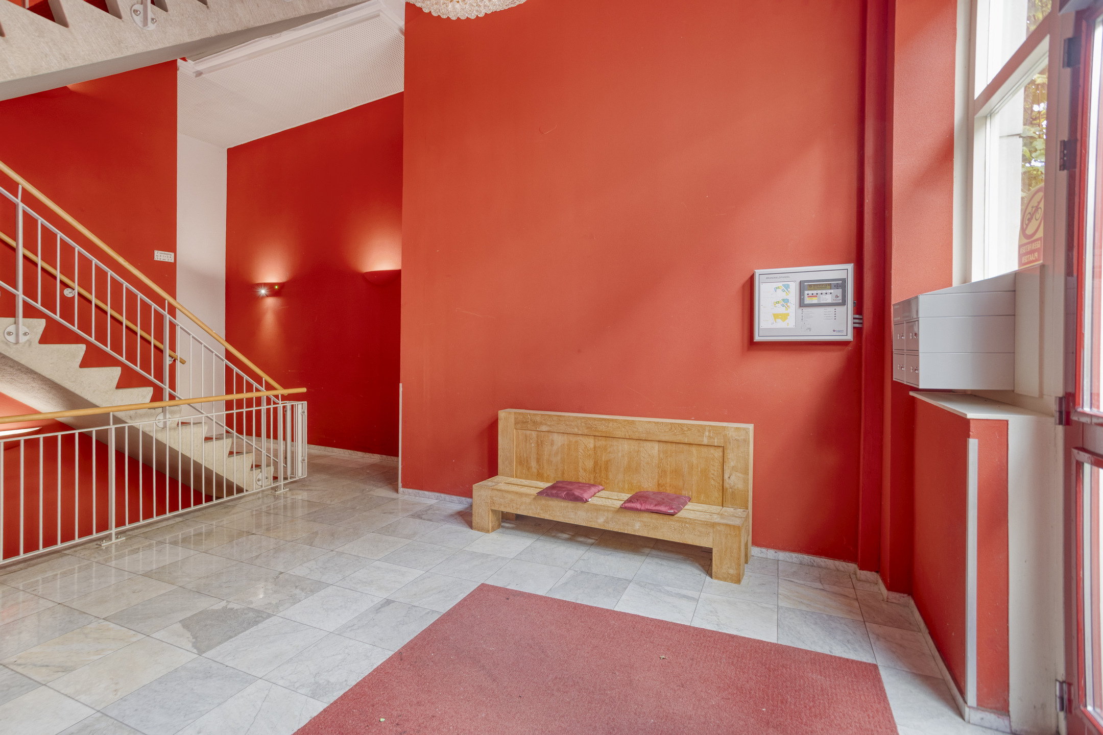 Centrale entree met videofoon, brievenbussen en trapopgang. Indrukwekkende hal met liftinstallatie en trappenhuis naar zowel de berging in de onderbouw als de verdiepingen.
