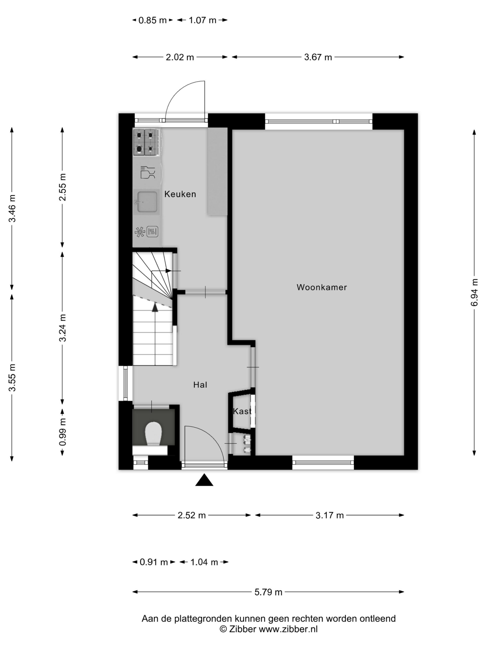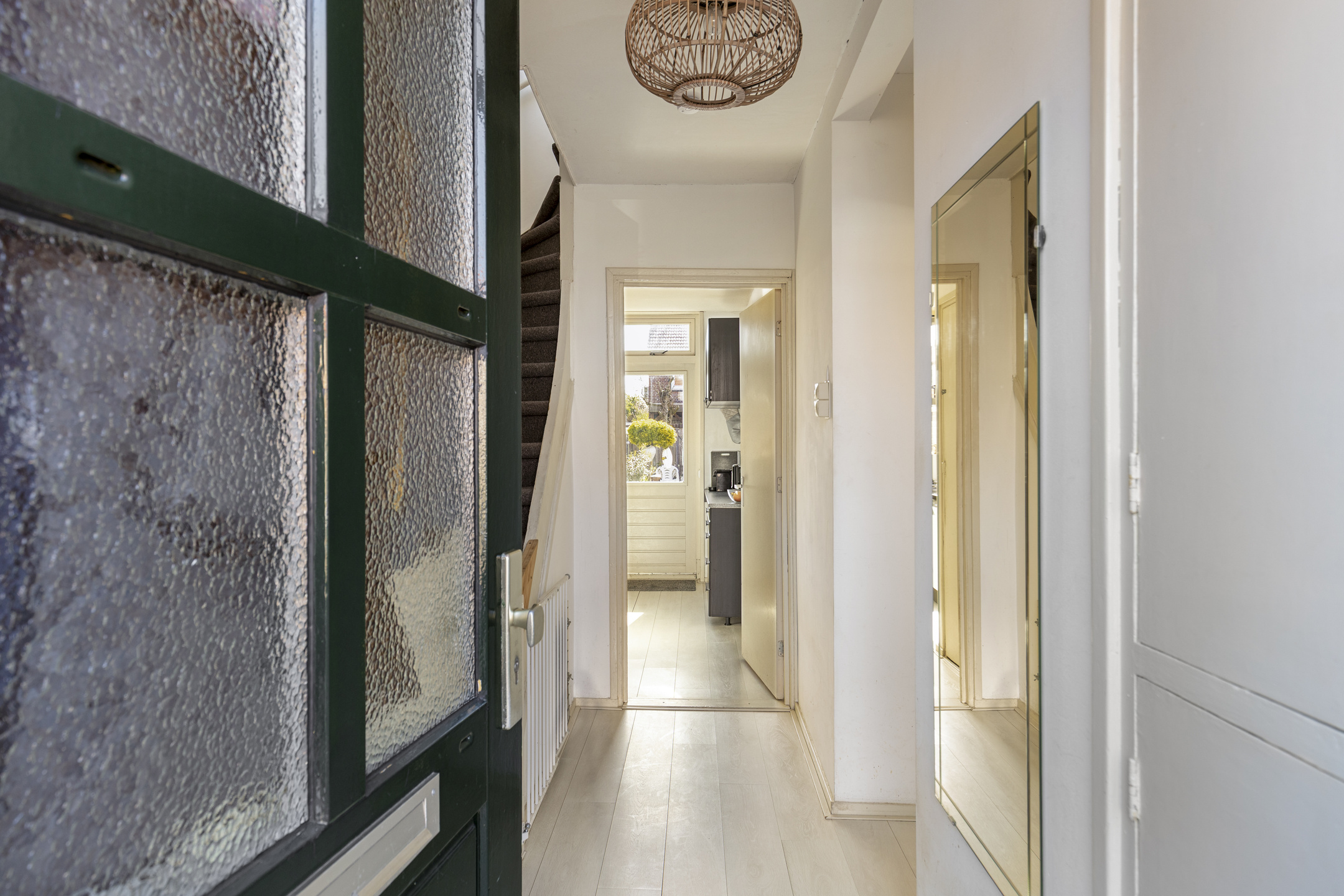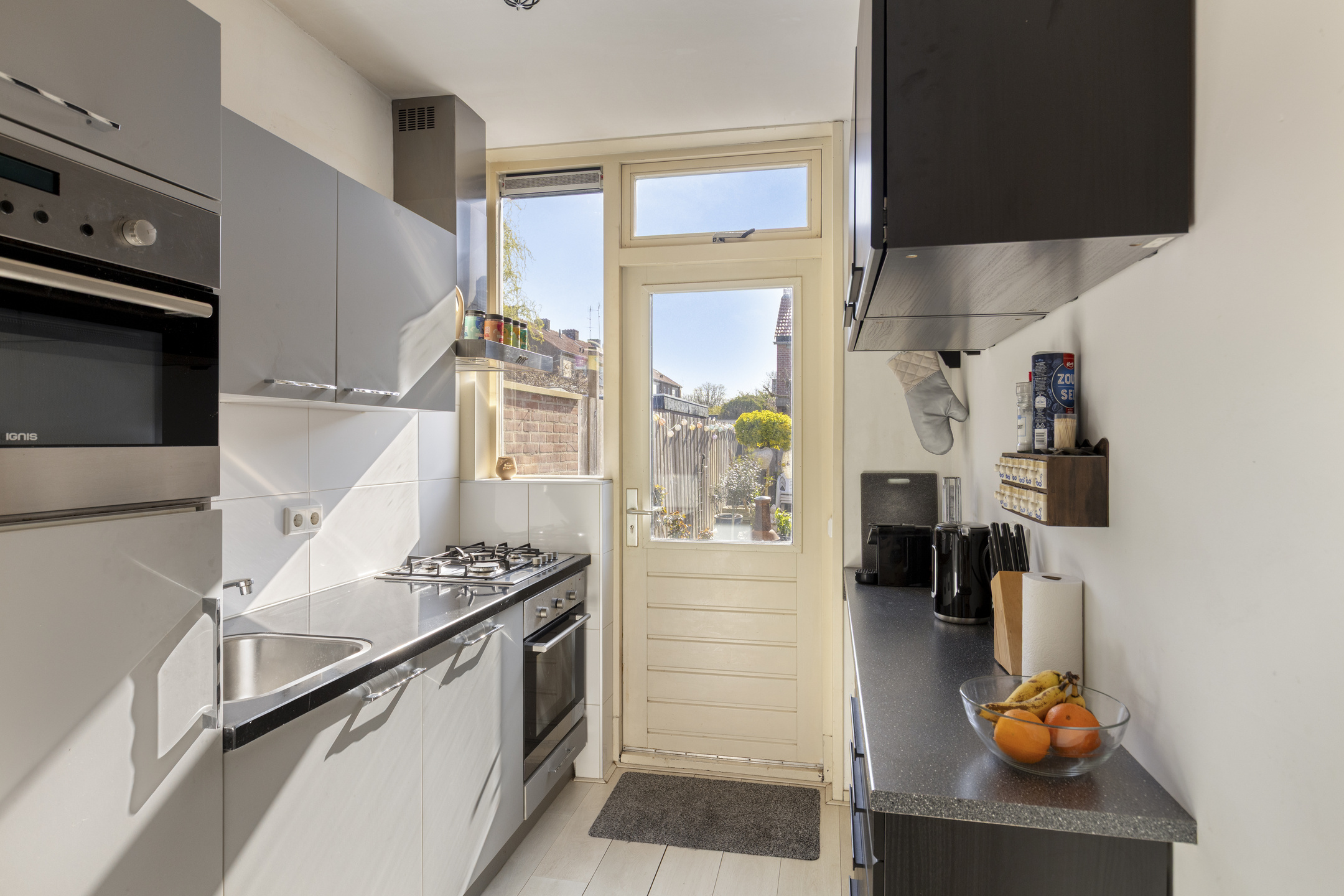 Bij binnenkomst treft u een nette hal met toilet en toegang tot de dichte keuken, die is voorzien van diverse inbouwapparatuur. De lichte en gezellige woonkamer aan de voorzijde biedt een fijne leefruimte met een prettig uitzicht op de straat.