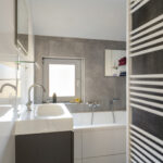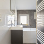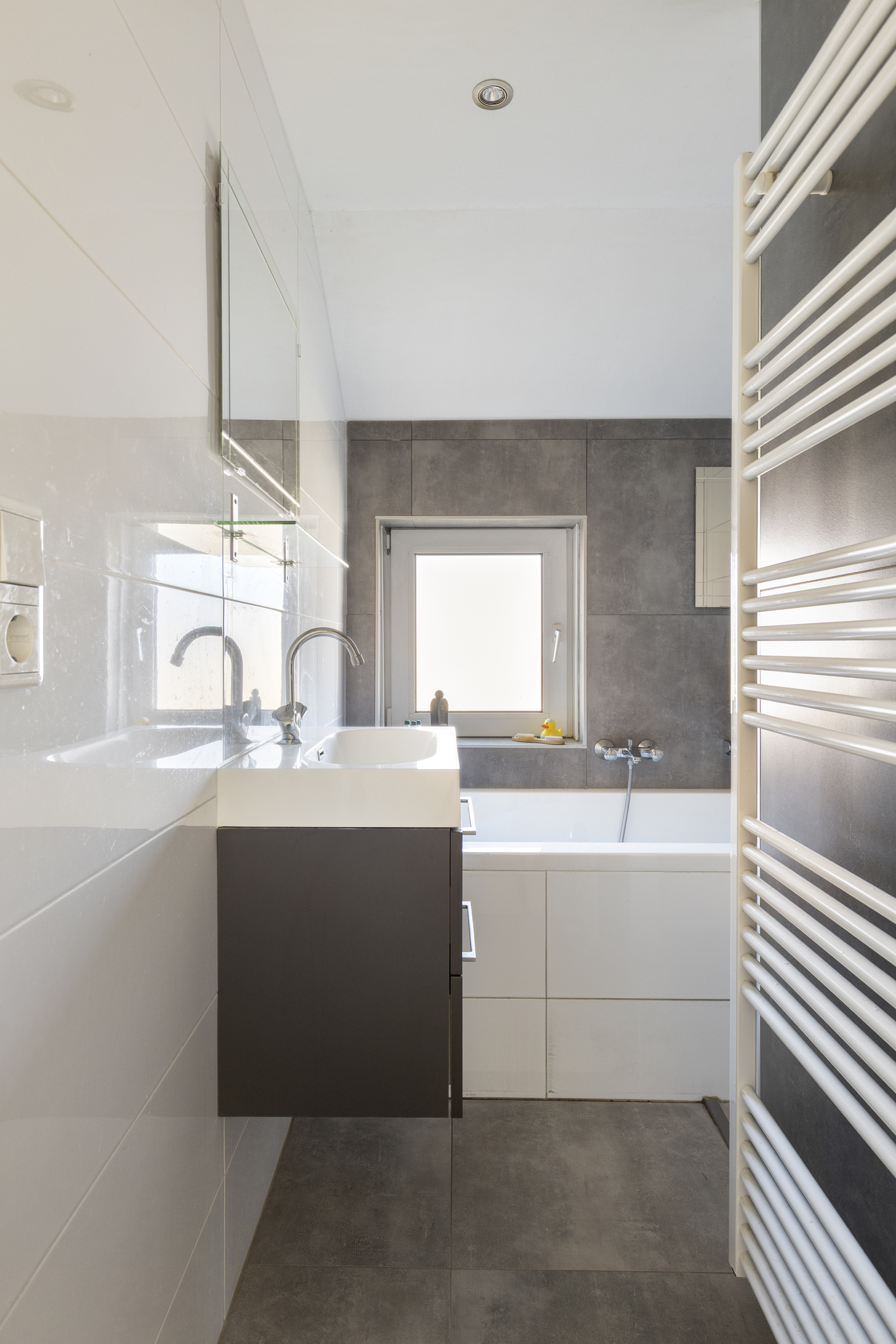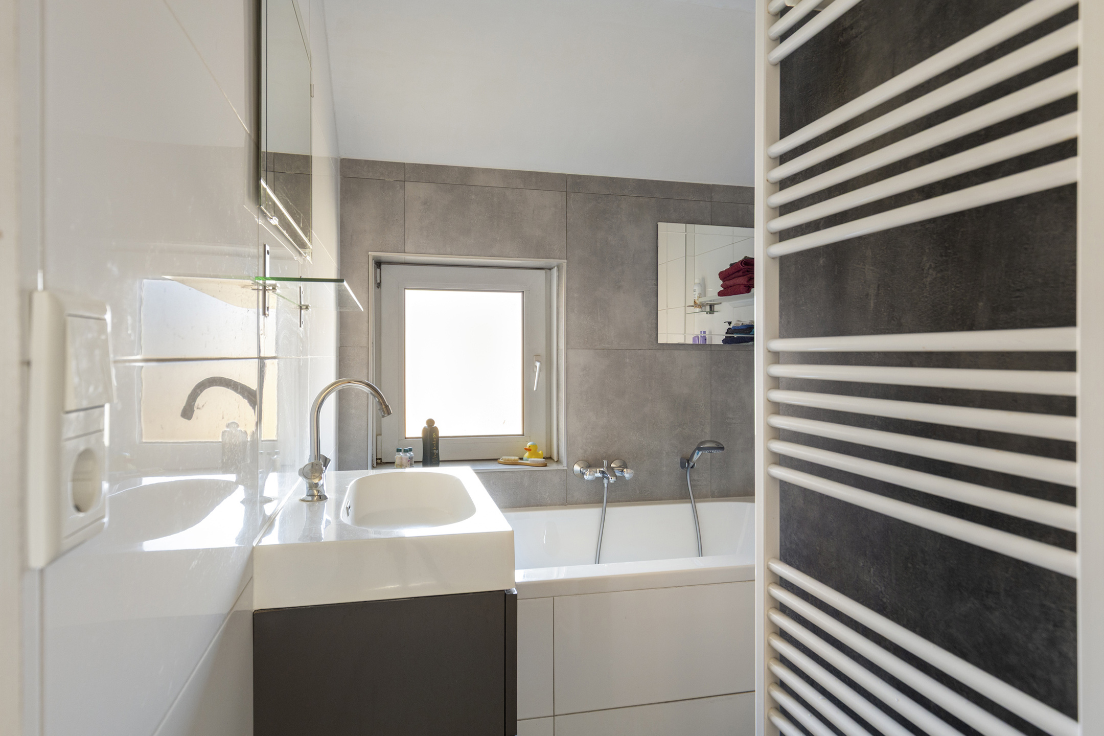 Op de eerste verdieping bevindt zich de overloop met een handig wasmachineplateau. Daarnaast zijn er drie slaapkamers aanwezig. De vergrote en gemoderniseerde badkamer is compleet uitgevoerd met een ligbad, douche en wastafel en biedt daarmee alle comfort voor een gezin. Vanaf de overloop is via een vlizotrap de bergzolder bereikbaar, waar zich tevens de CV-installatie bevindt (Remeha, 2005).