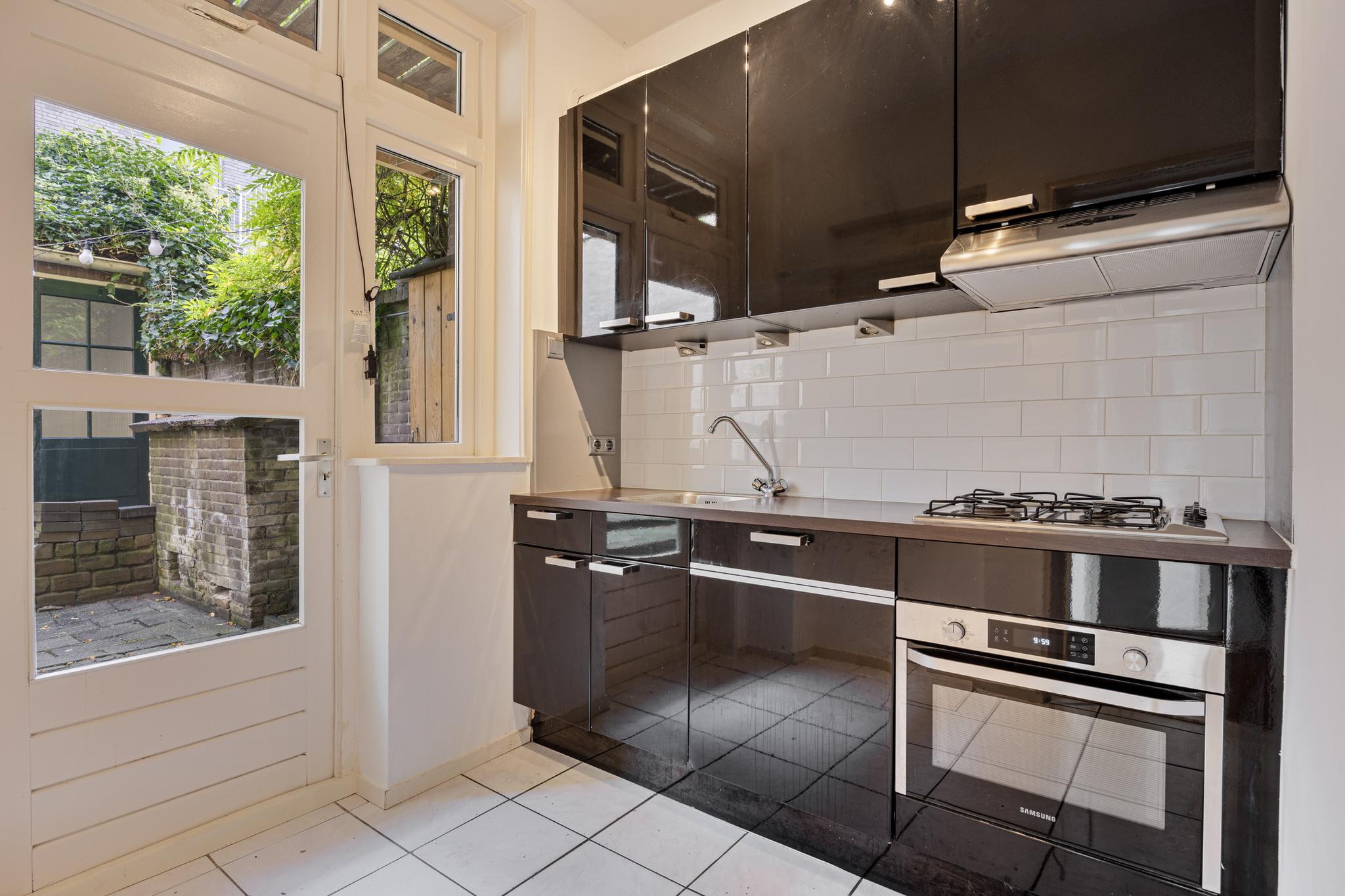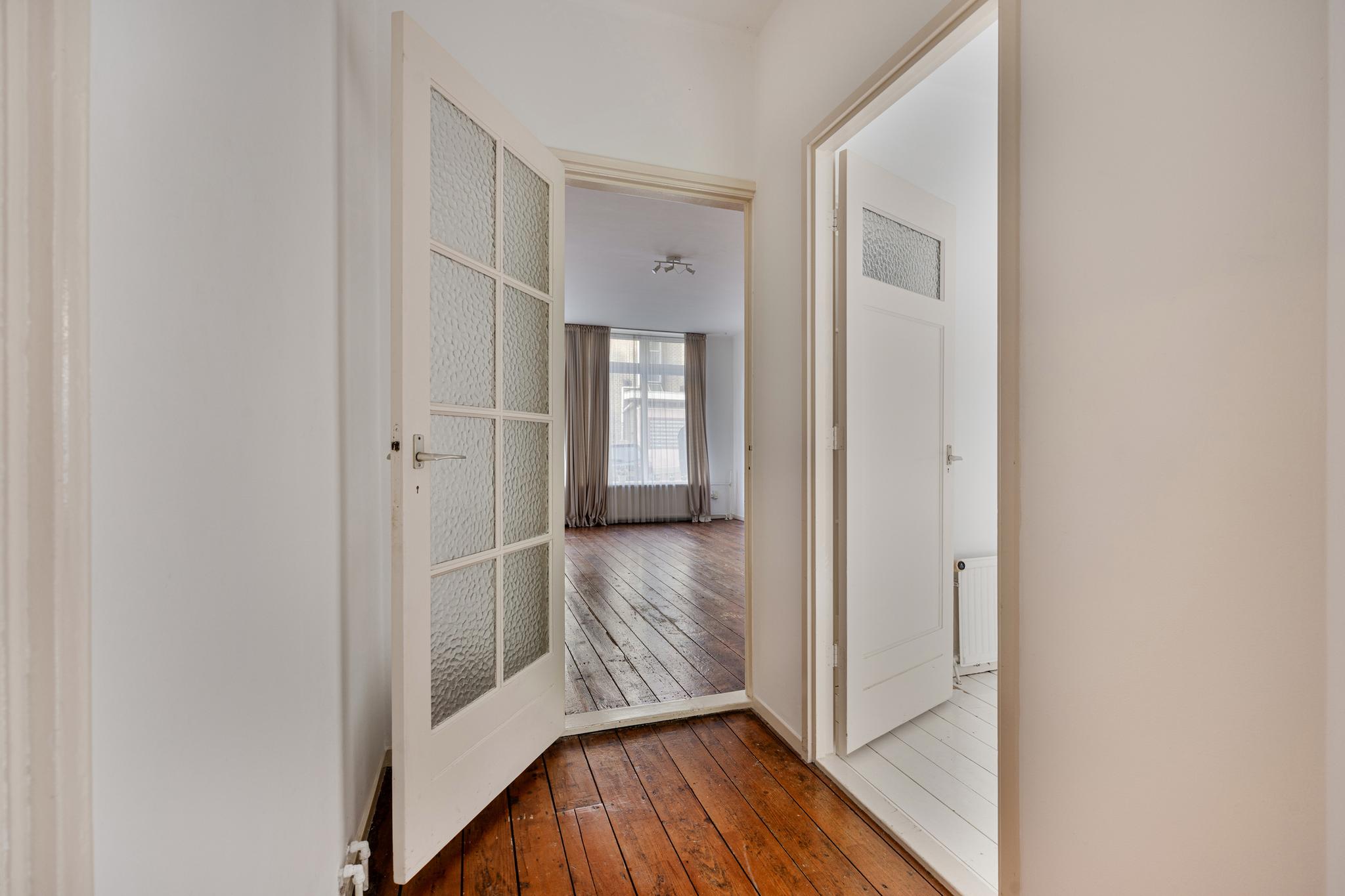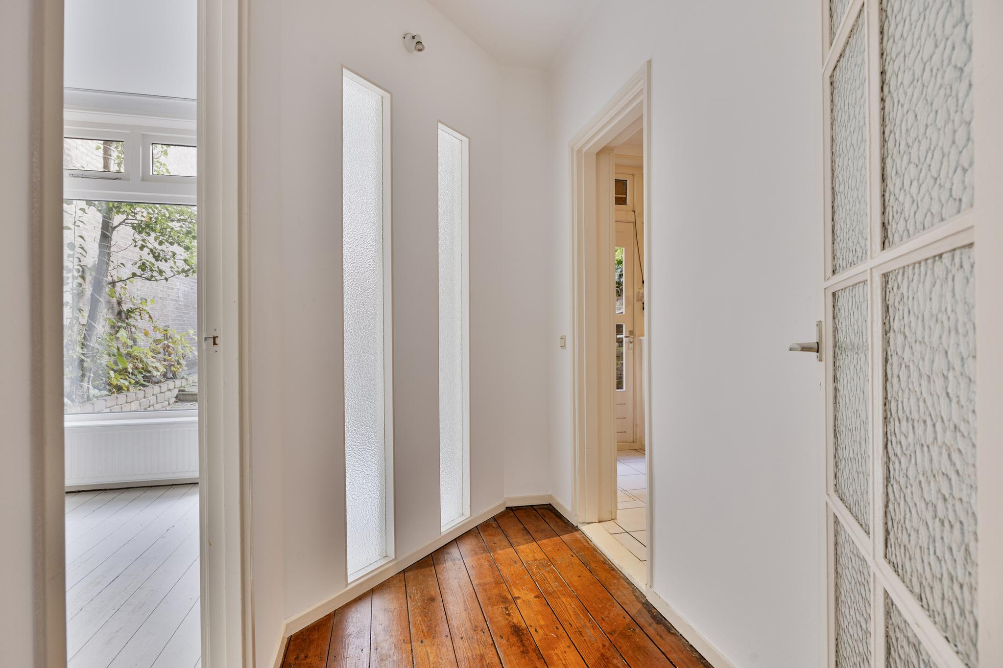 Entree, keurig toilet, deur naar de kelder, sfeervolle en ruime woonkamer (ca. 25m²) met een schouw, en-suite deuren en originele houten vloerdelen, speels ingedeelde slaapkamer voorzien van een schouw, inbouwkast en openslaande deuren naar de tuin, keurige hoogglans keuken voorzien van een gaskookplaat, afzuigkap, vaatwasser en oven, geheel betegelde badkamer met een ligbad-/douchecombinatie, wastafelmeubel, designradiator en inbouwspots.