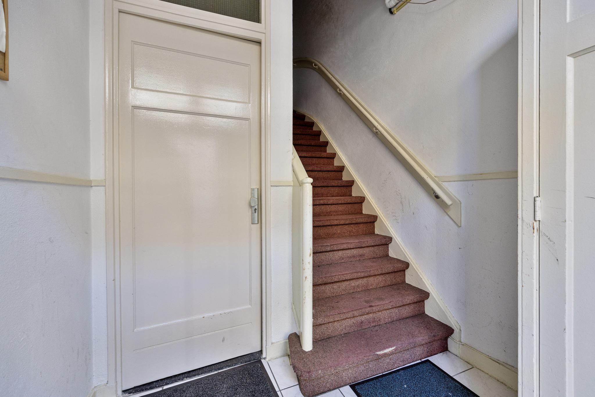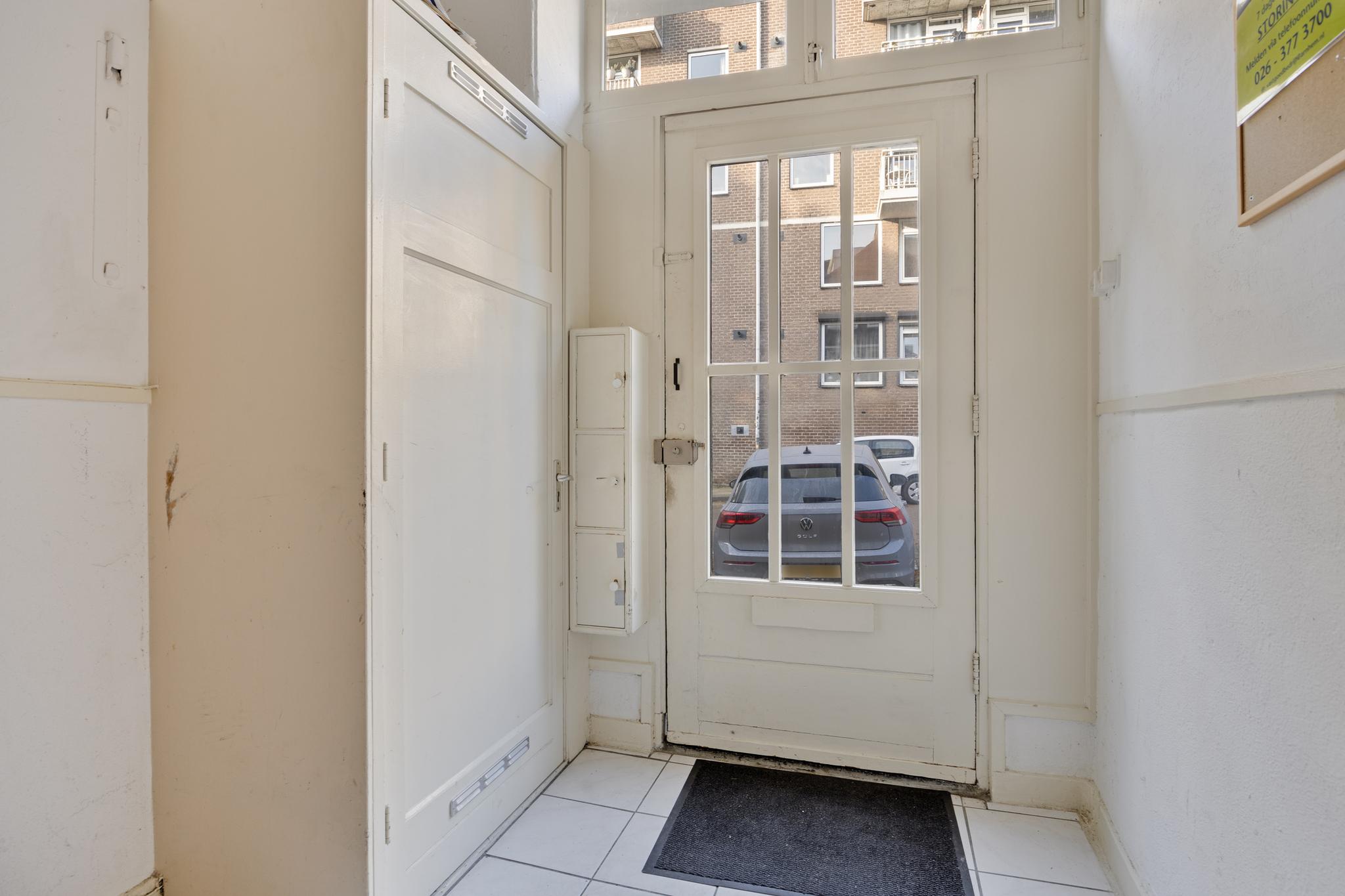 Gezamenlijke hal met de brievenbussen en toegang tot het appartement.
