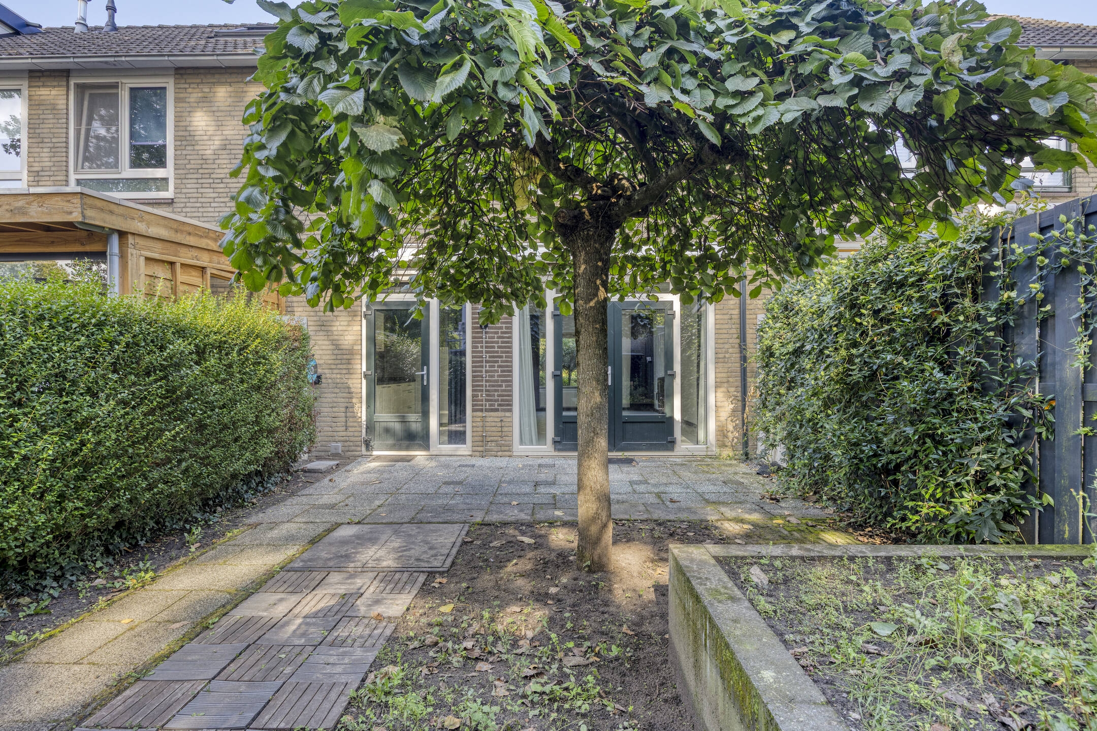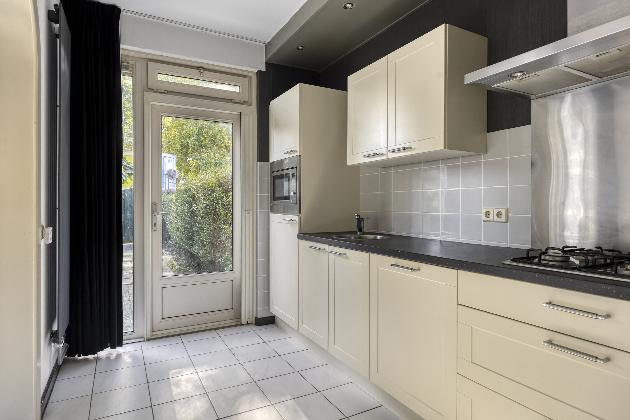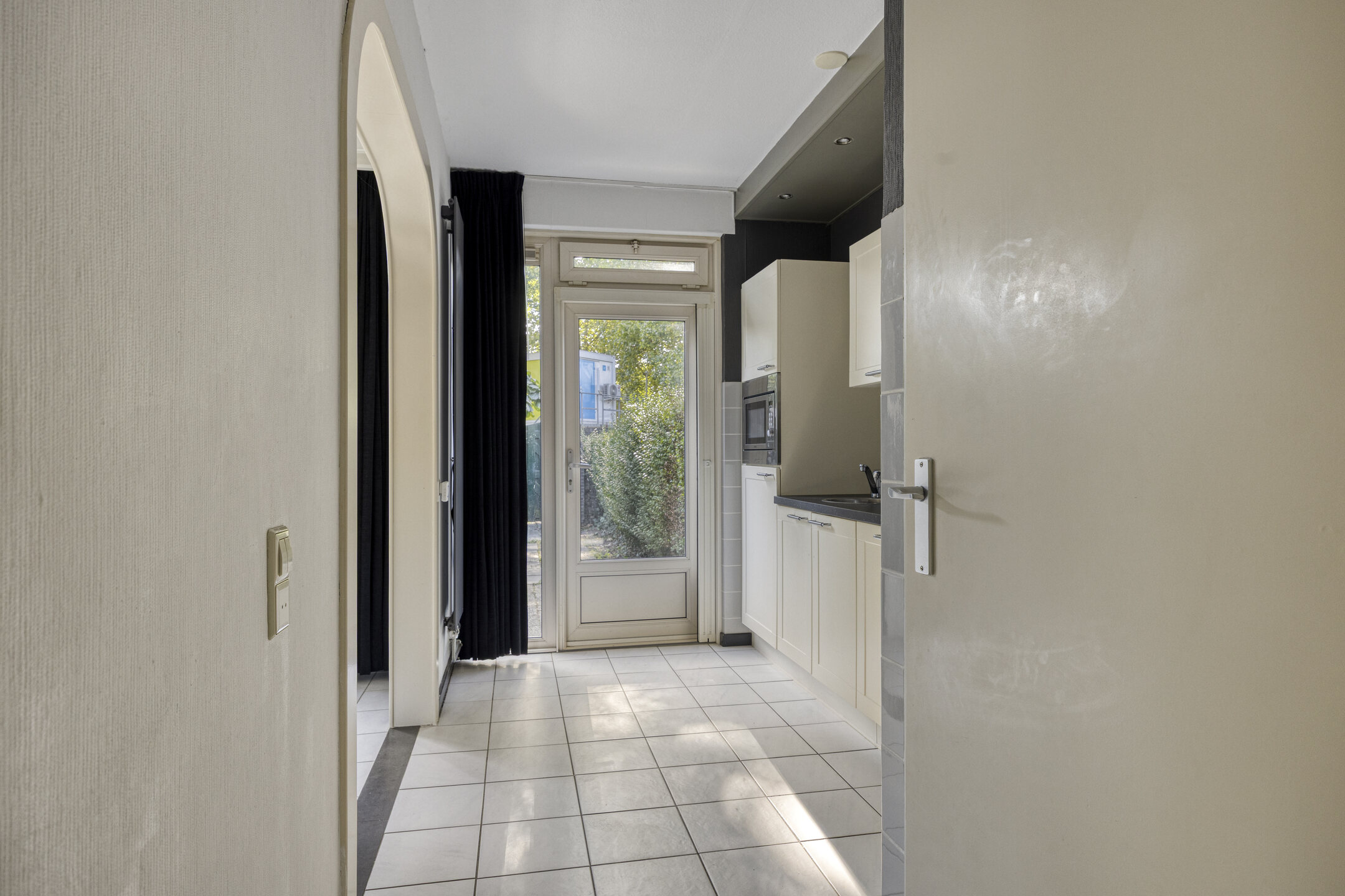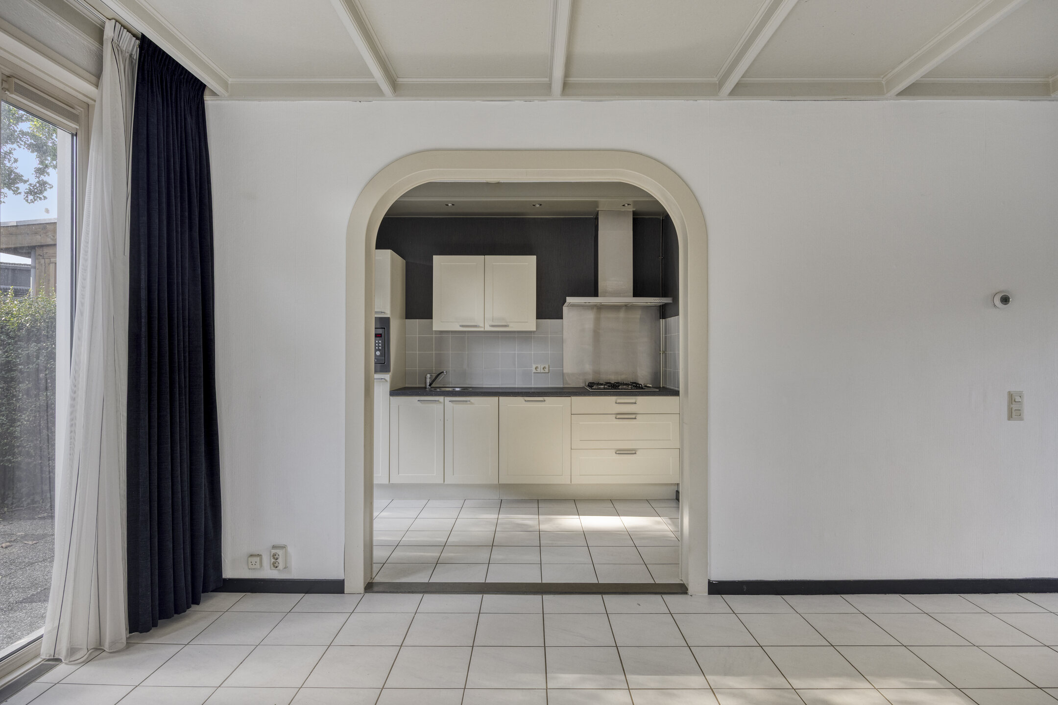 Entree, hal met meterkast en toilet met fontein. Vanuit de hal stap je de lichte doorzonkamer binnen met openslaande deuren naar de tuin. De half open keuken aan de achterzijde is voorzien van diverse inbouwapparatuur. Vanuit de keuken heb je ook toegang tot de zonnige achtertuin met terras, stenen berging en achterom. Onder het zonnescherm zit je hier heerlijk beschut.