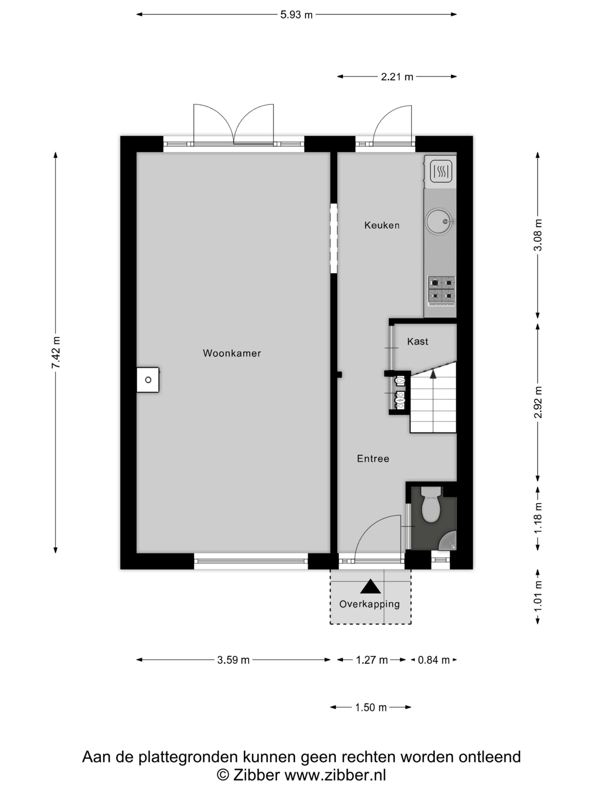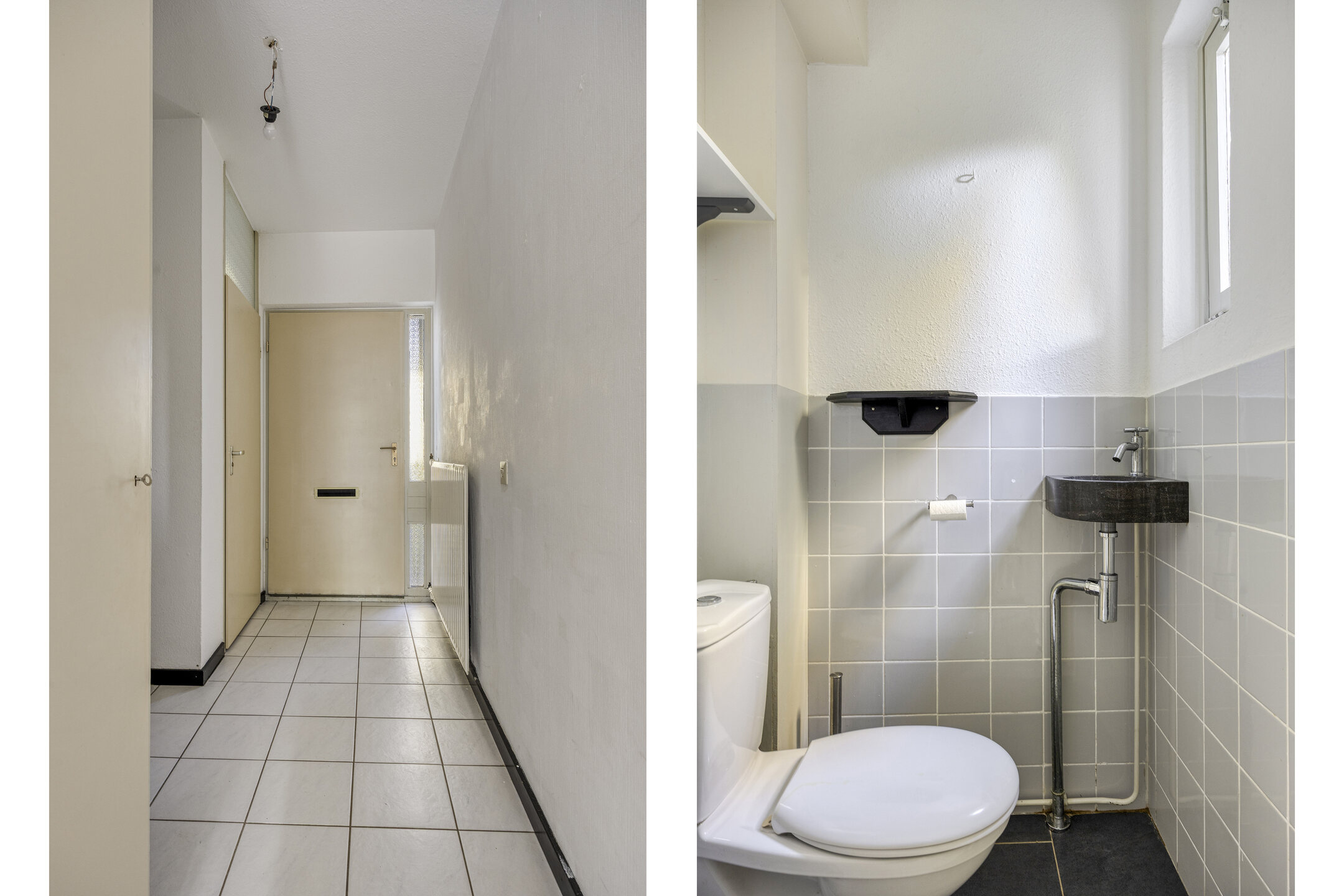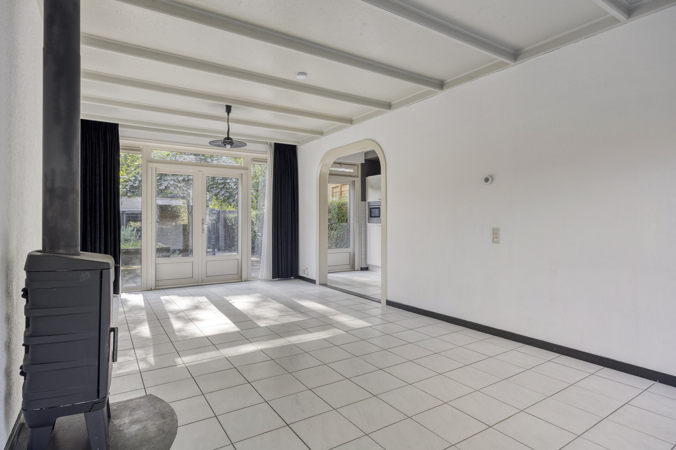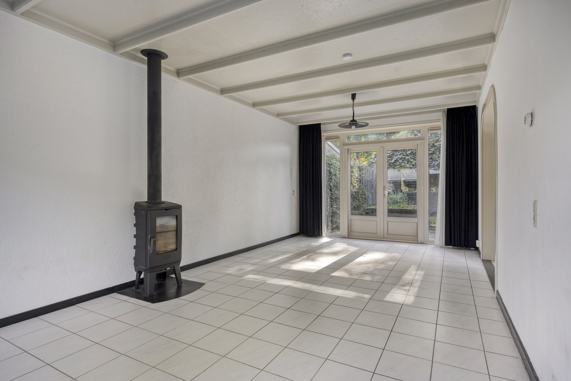 Entree, hal met meterkast en toilet met fontein. Vanuit de hal stap je de lichte doorzonkamer binnen met openslaande deuren naar de tuin. De half open keuken aan de achterzijde is voorzien van diverse inbouwapparatuur. Vanuit de keuken heb je ook toegang tot de zonnige achtertuin met terras, stenen berging en achterom. Onder het zonnescherm zit je hier heerlijk beschut.