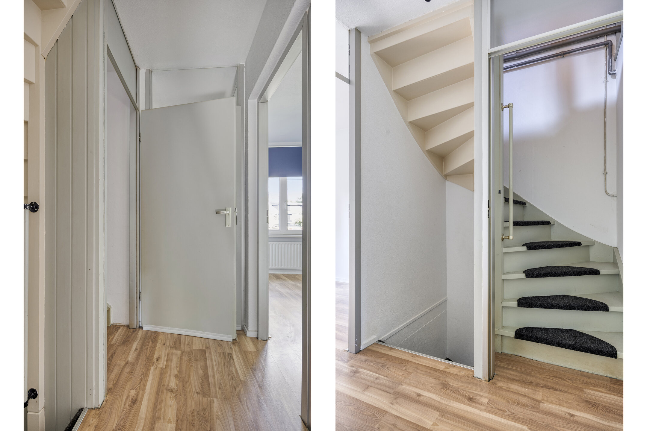 Ruime overloop met wasmachine- en drogeraansluiting en de opstelplaats voor de CV-ketel. Hier zou je prima een vierde slaapkamer kunnen creëren. Uiteraard is dit ook de plaats voor opbergen van je spullen.
