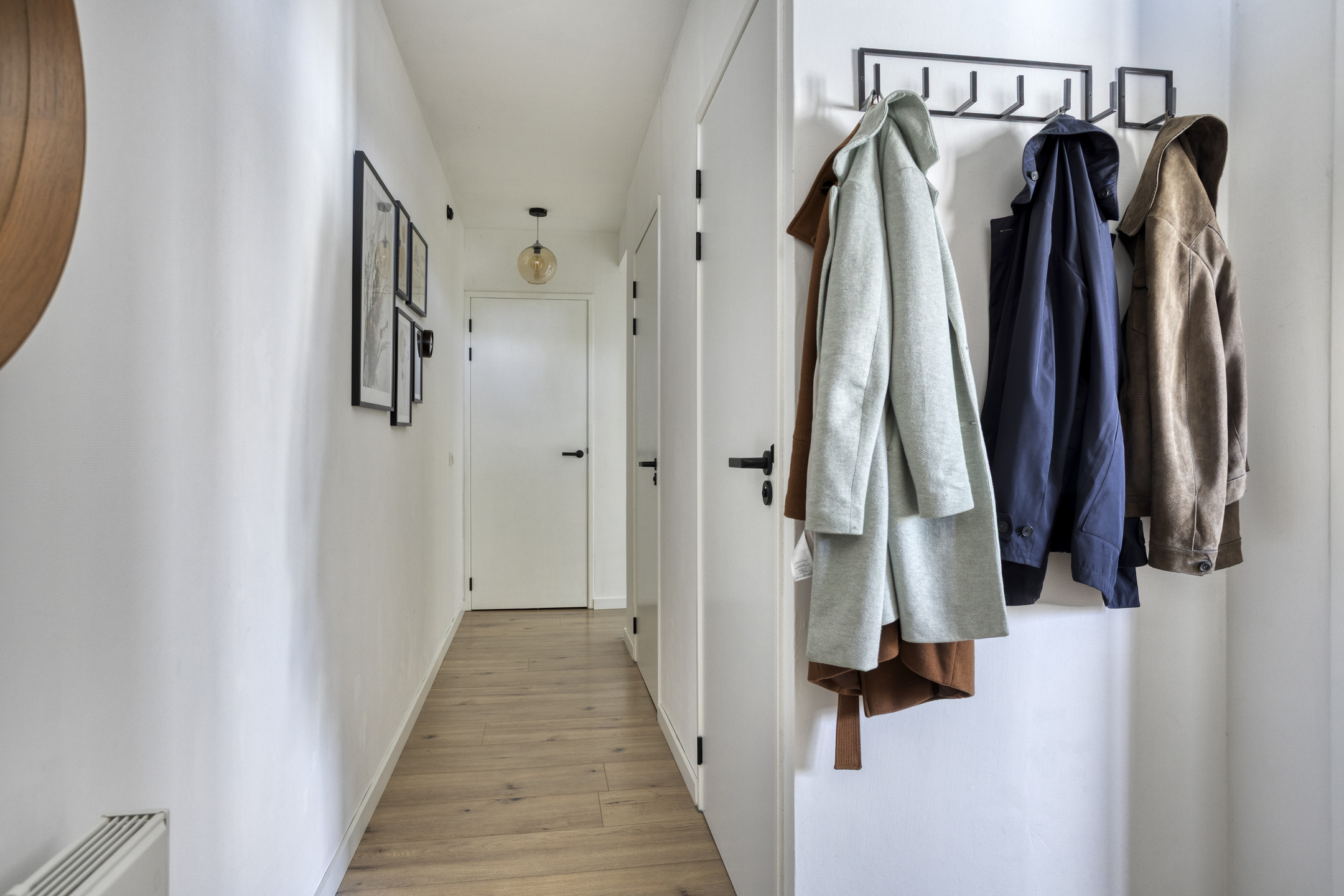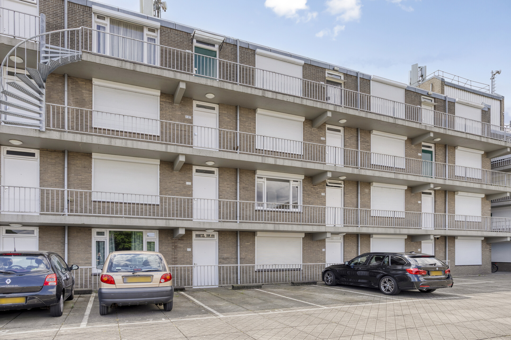 Je betreedt het complex via de nette centrale entree met bellentableau. Vanuit hier zijn zowel de fietsenberging als de eigen parkeerplaats op het afgesloten binnenterrein bereikbaar. Via het trappenhuis of de lift bereik je het appartement.