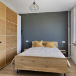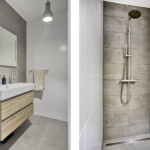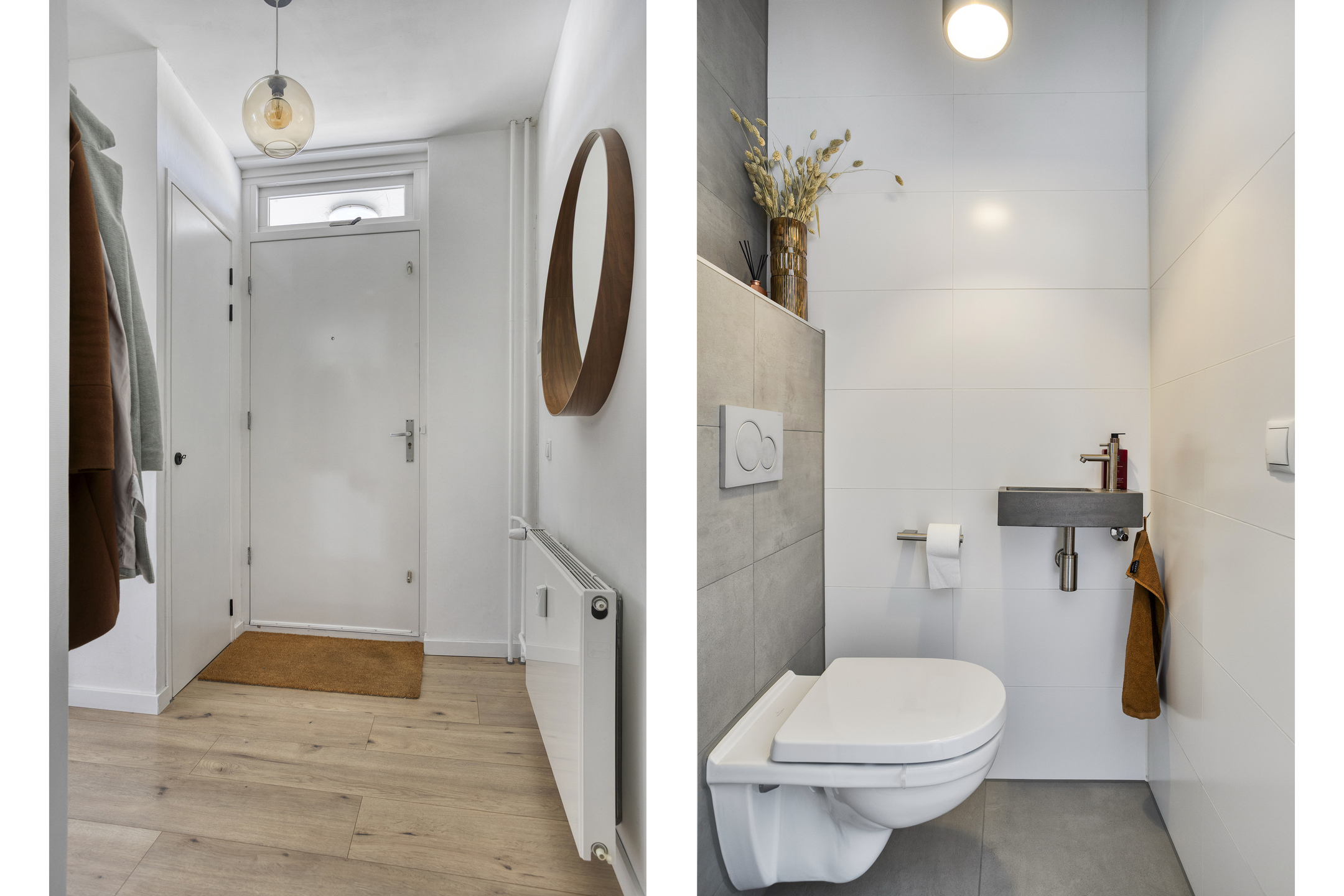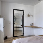 Bij binnenkomst stap je in een ruime hal die direct toegang geeft tot alle belangrijke vertrekken. De slaapkamer, het separate toilet en de verzorgde badkamer met inloopdouche en brede wastafel met twee kranen zijn allemaal keurig afgewerkt. In de handige bergruimte vind je de opstelling voor de wasmachine en de boiler.