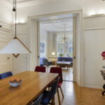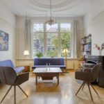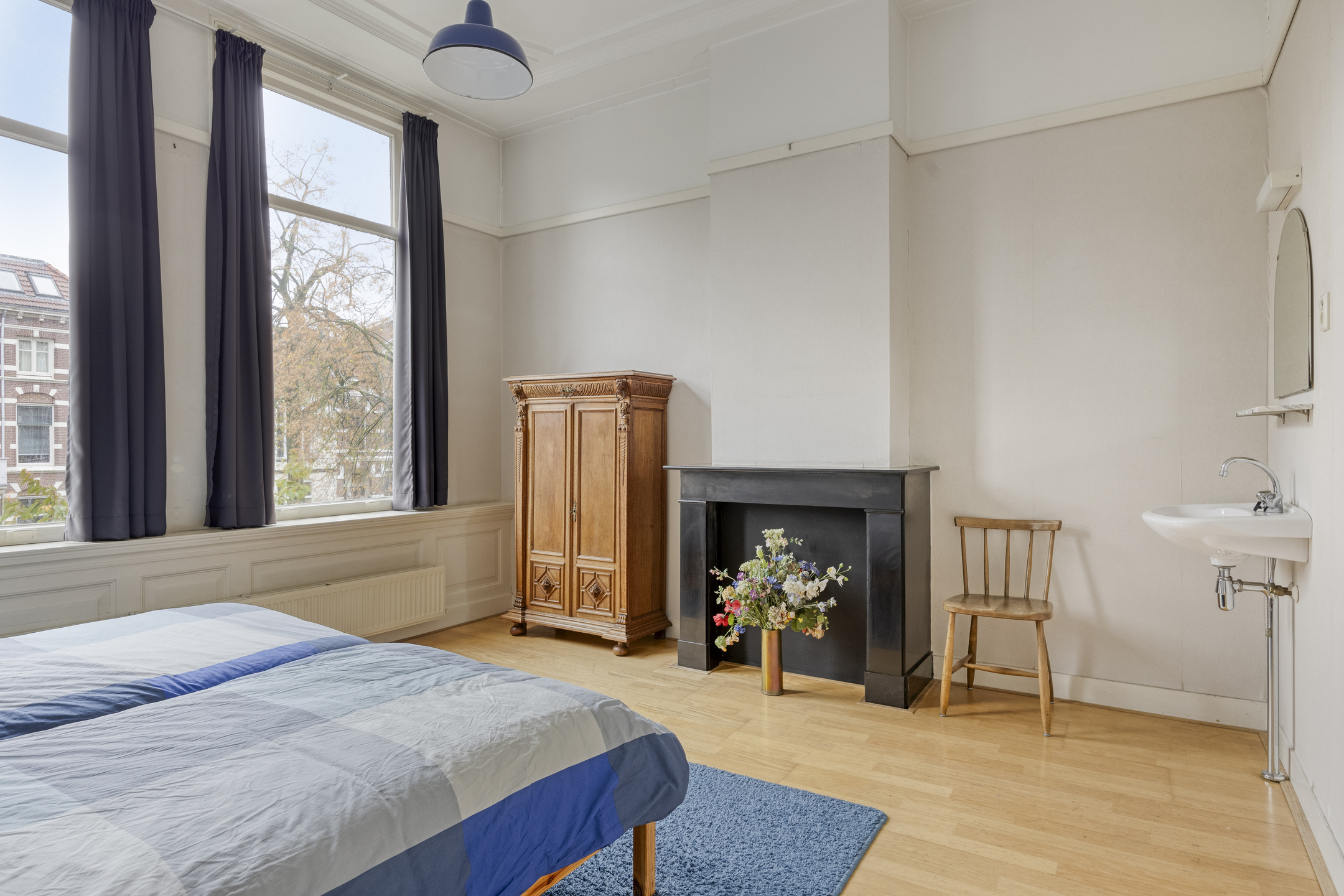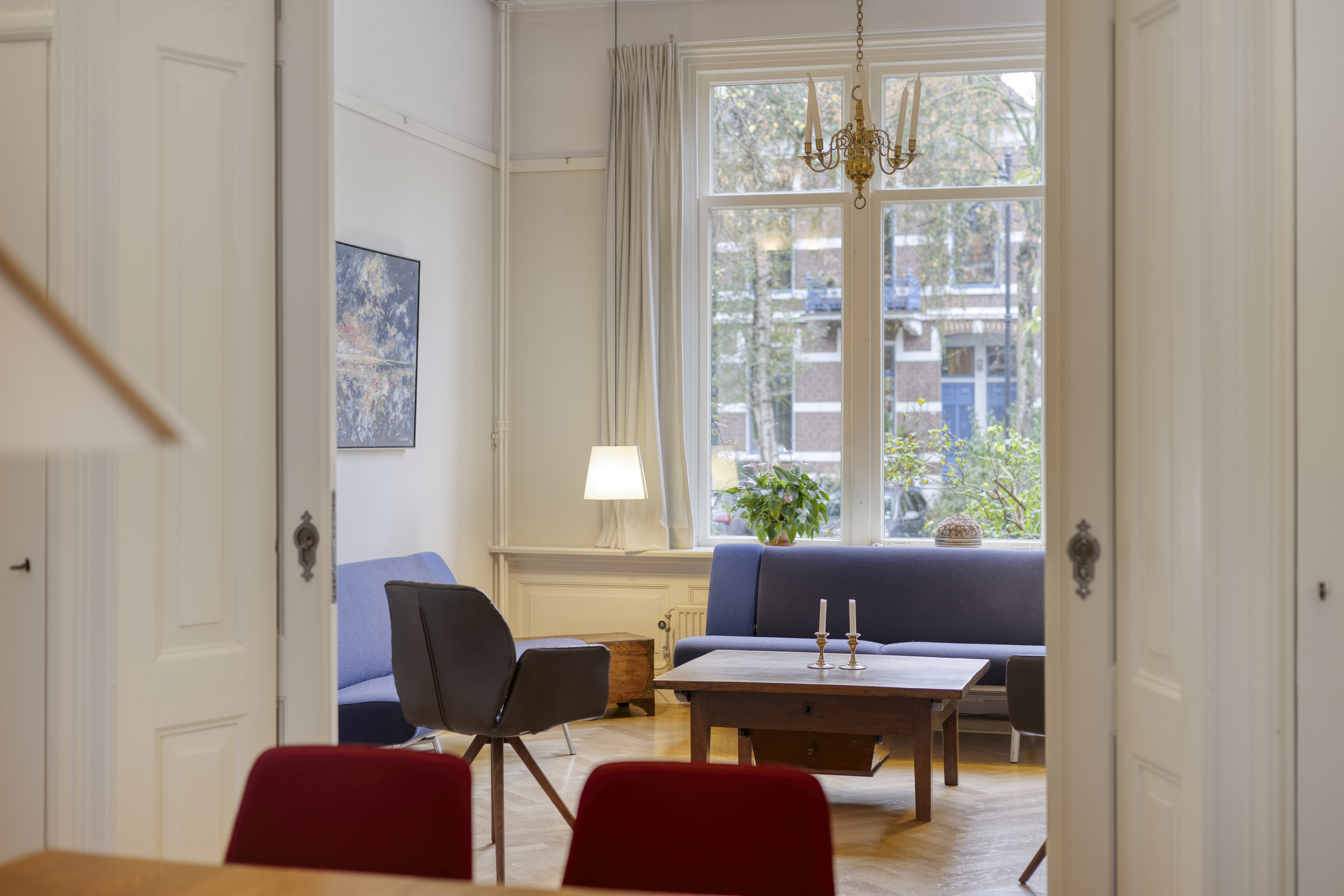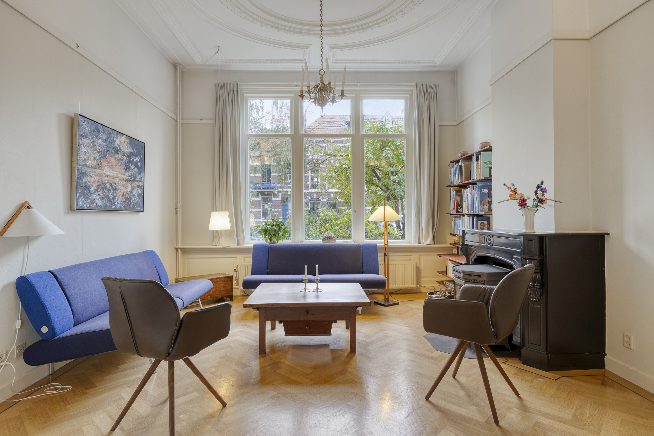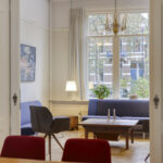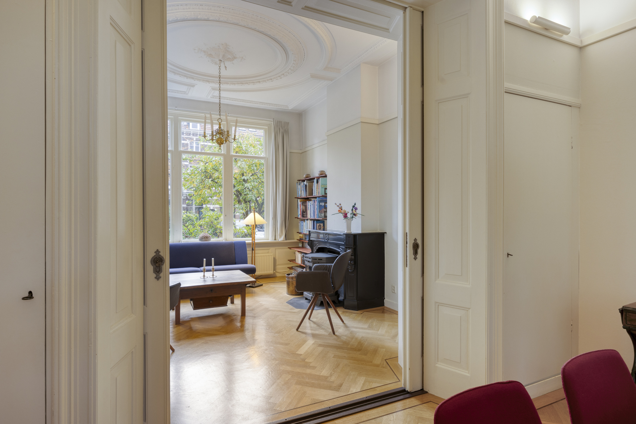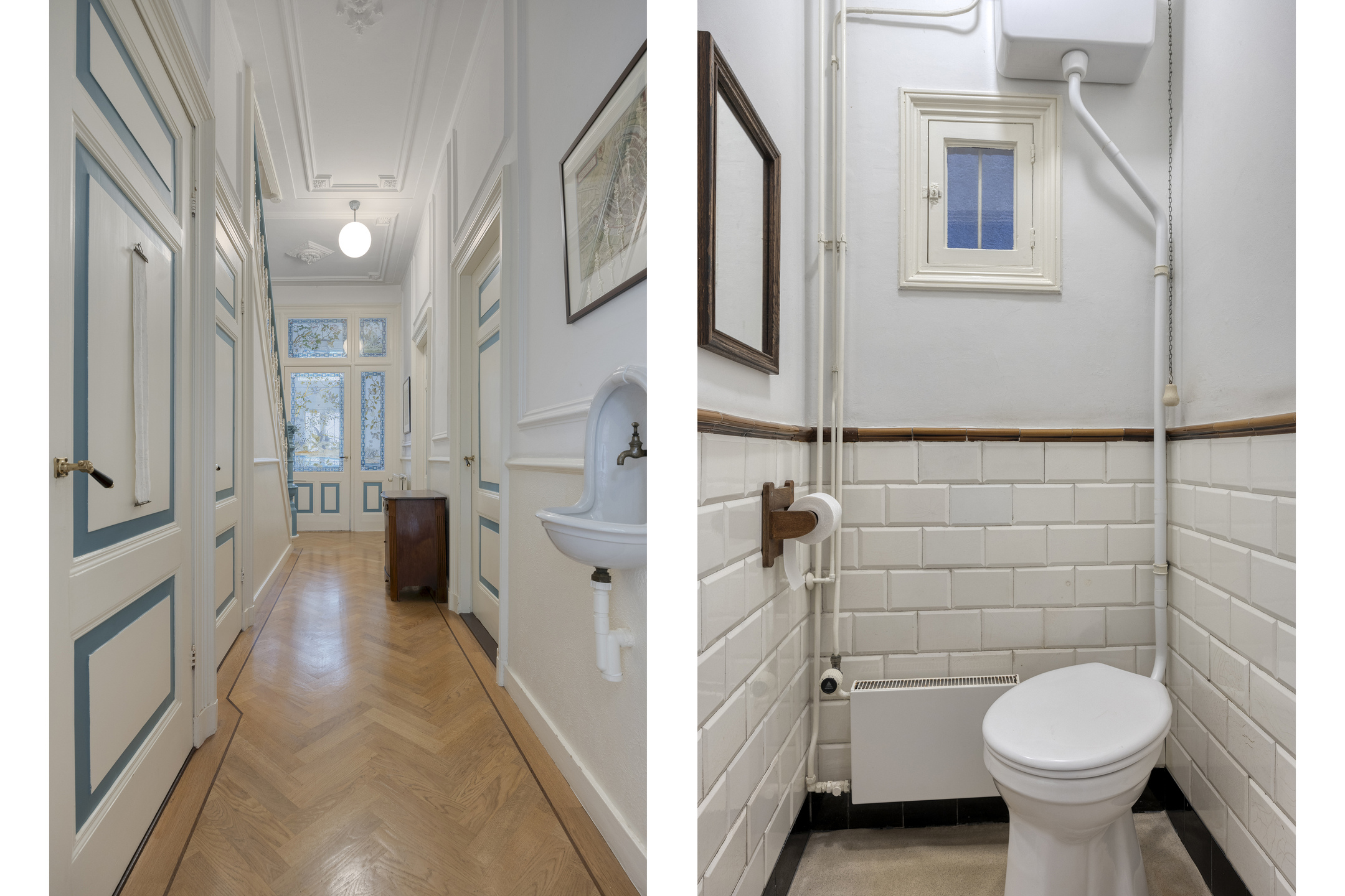 De entree maakt direct indruk: een vestibule met beschilderde ramen van kunstenaar W. Reijenga, originele marmeren lambrisering en sierlijk stucwerk. Binnen vind je nog talloze oorspronkelijke details zoals hoge plafonds met…