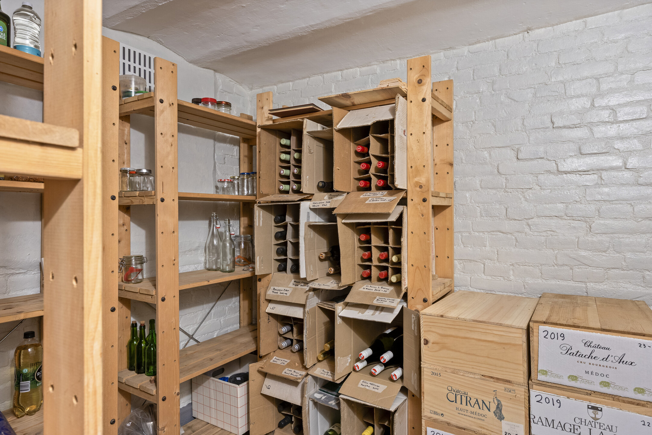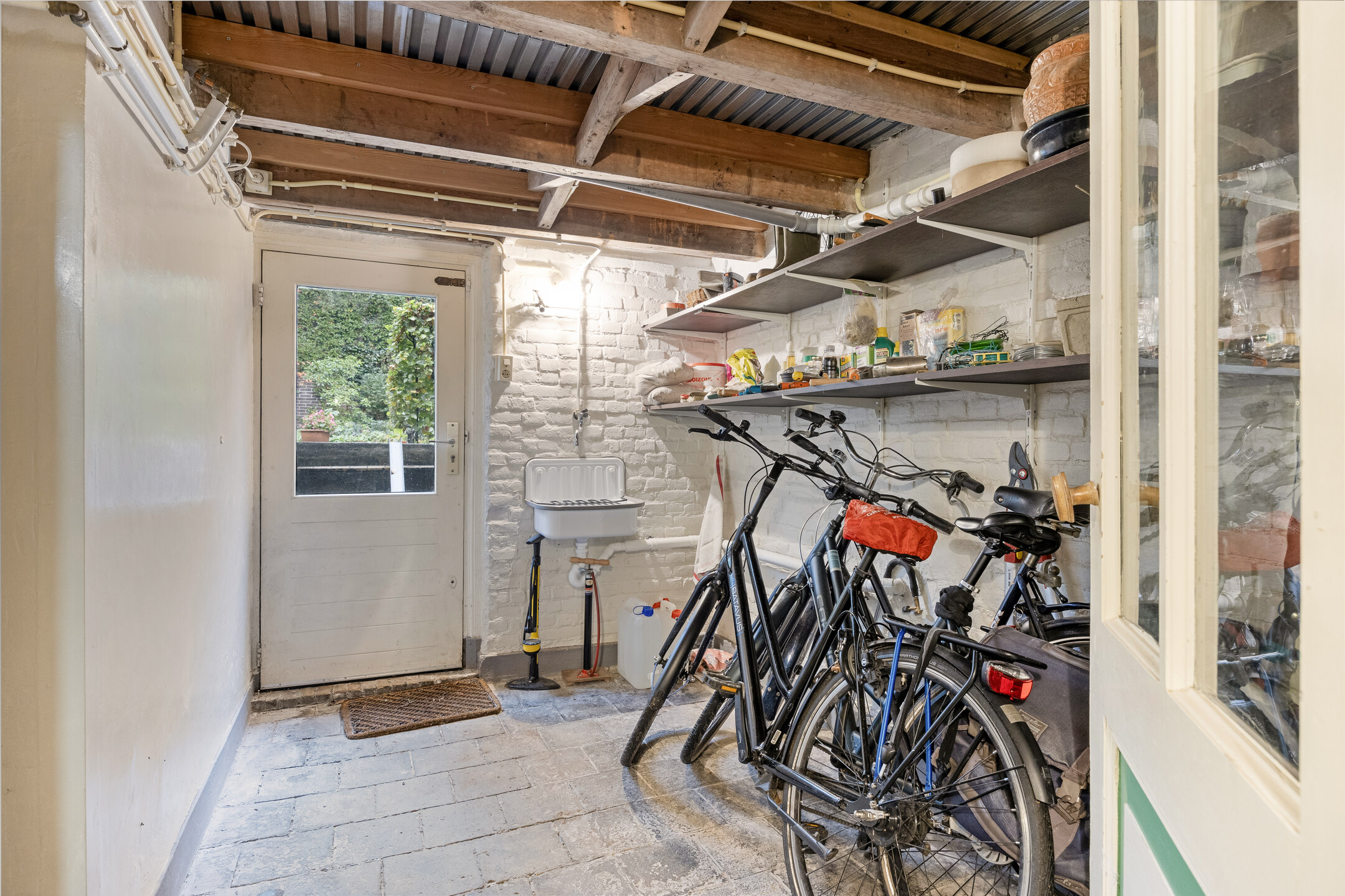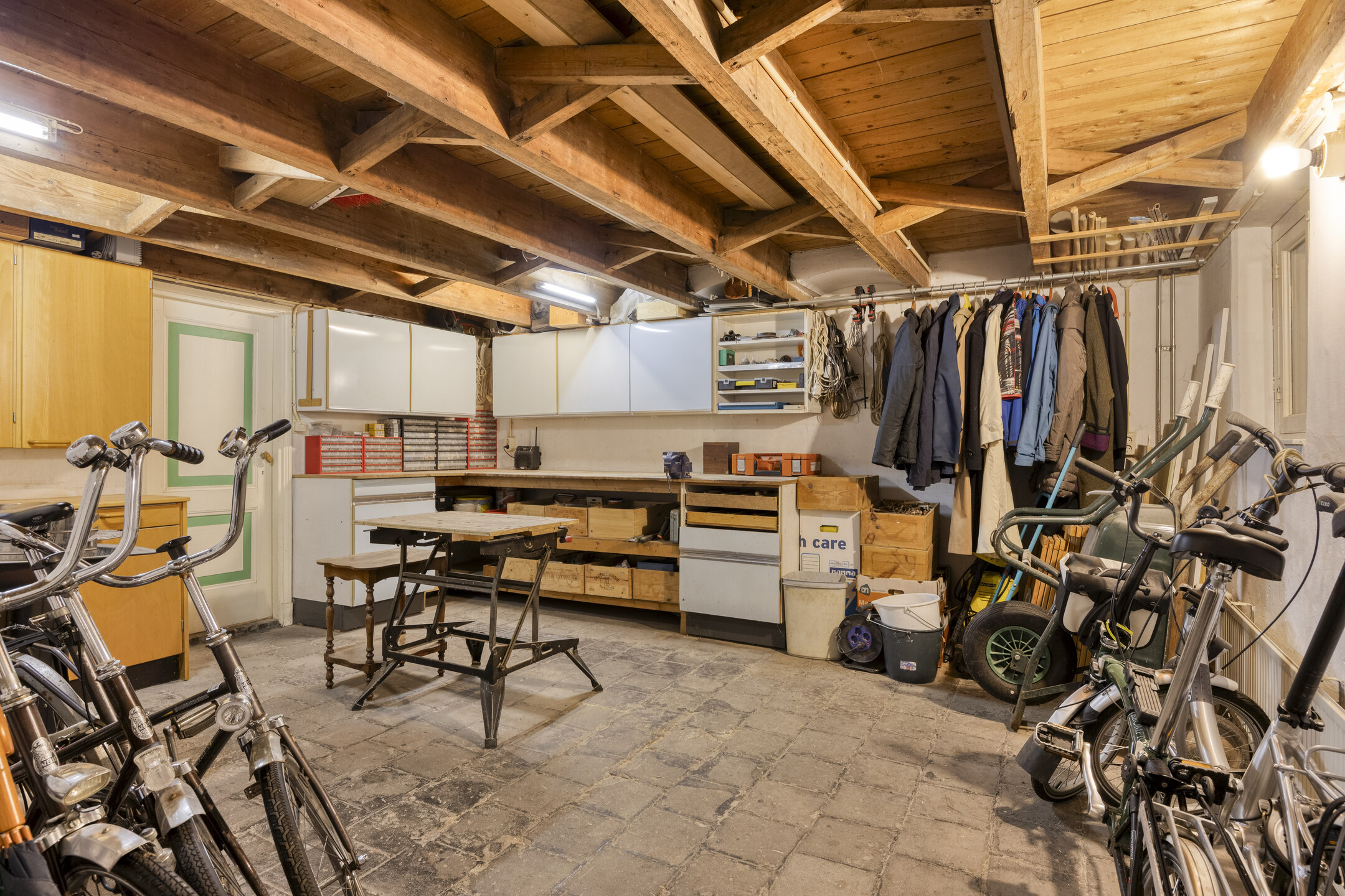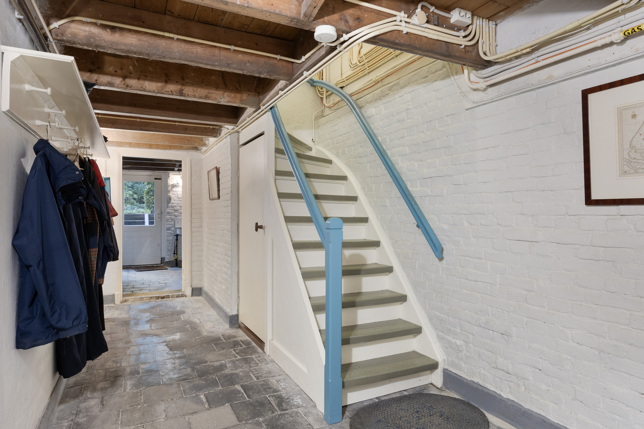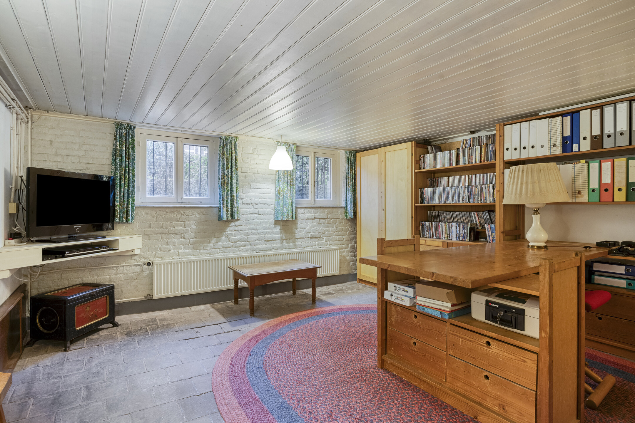 Ruim souterrain met hal, provisiekelder, kantoor, hobbyruimte en bergruimte. Dankzij de droge constructie en originele estrikenvloer is dit een volwaardige extra woonlaag. Het achterom is uitsluitend toegankelijk voor deze woning, wat optimale privacy waarborgt.