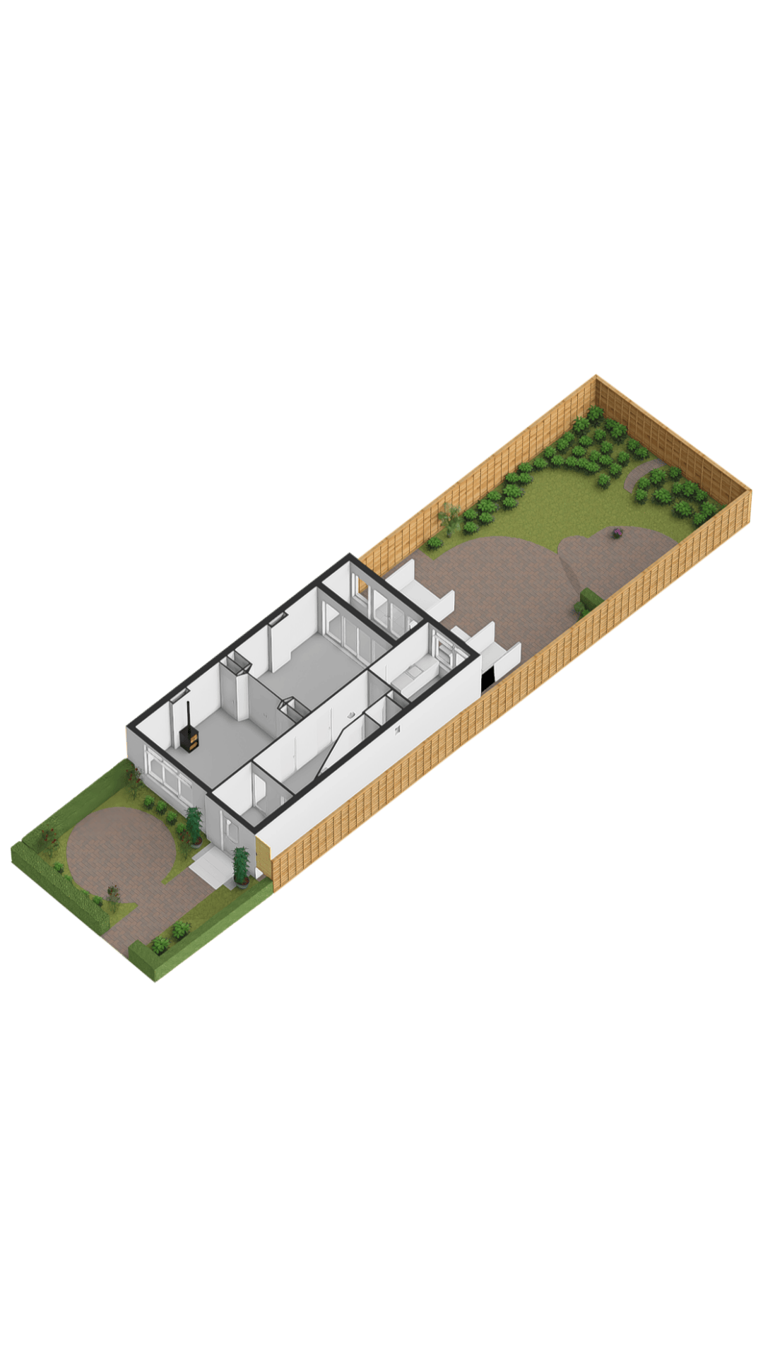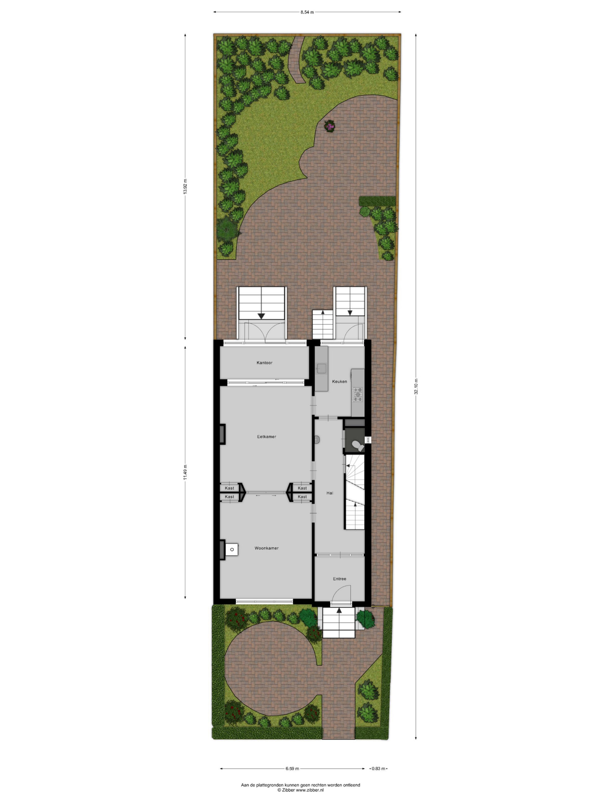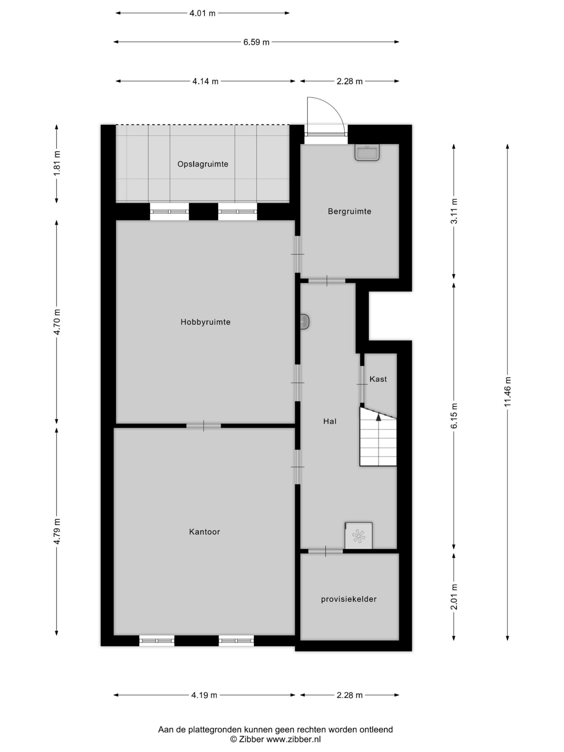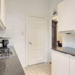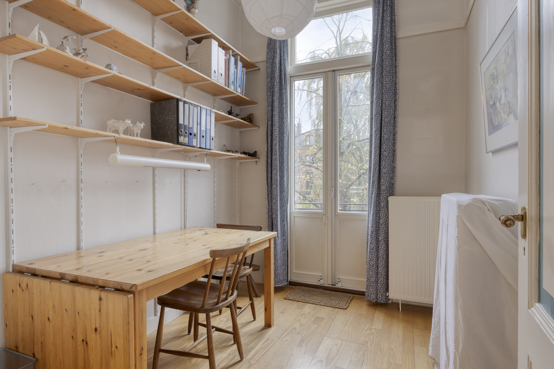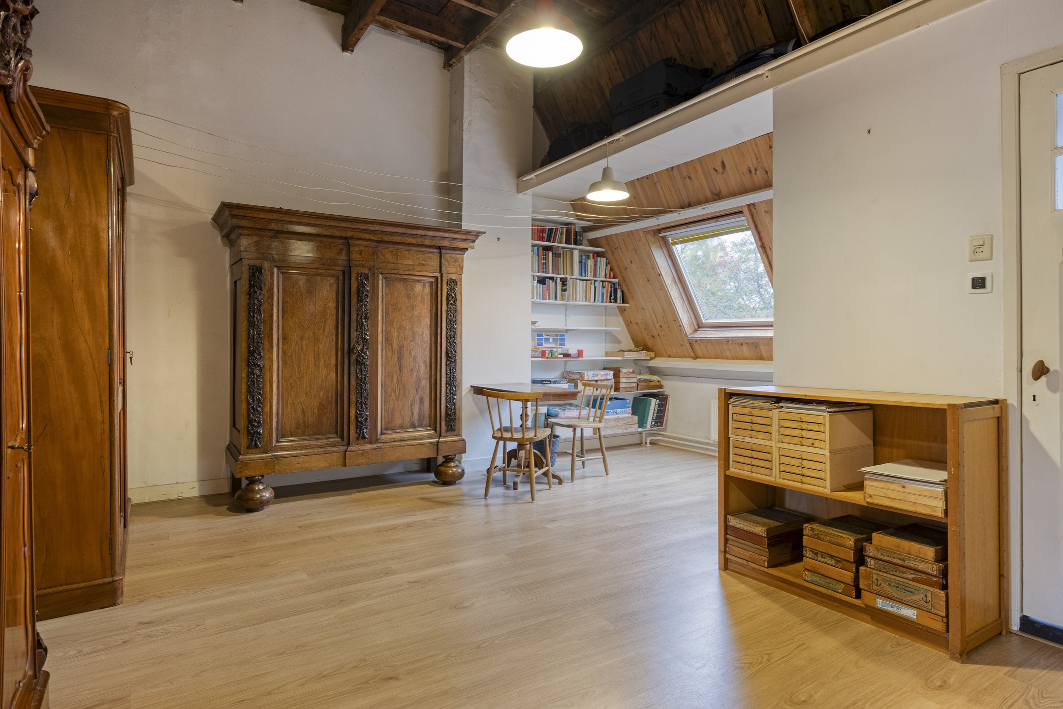 Ruim souterrain met hal, provisiekelder, kantoor, hobbyruimte en bergruimte. Dankzij de droge constructie en originele estrikenvloer is dit een volwaardige extra woonlaag. Het achterom is uitsluitend toegankelijk voor deze woning, wat optimale privacy waarborgt.