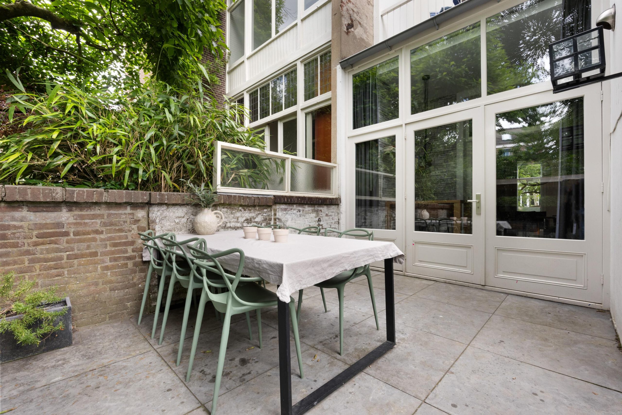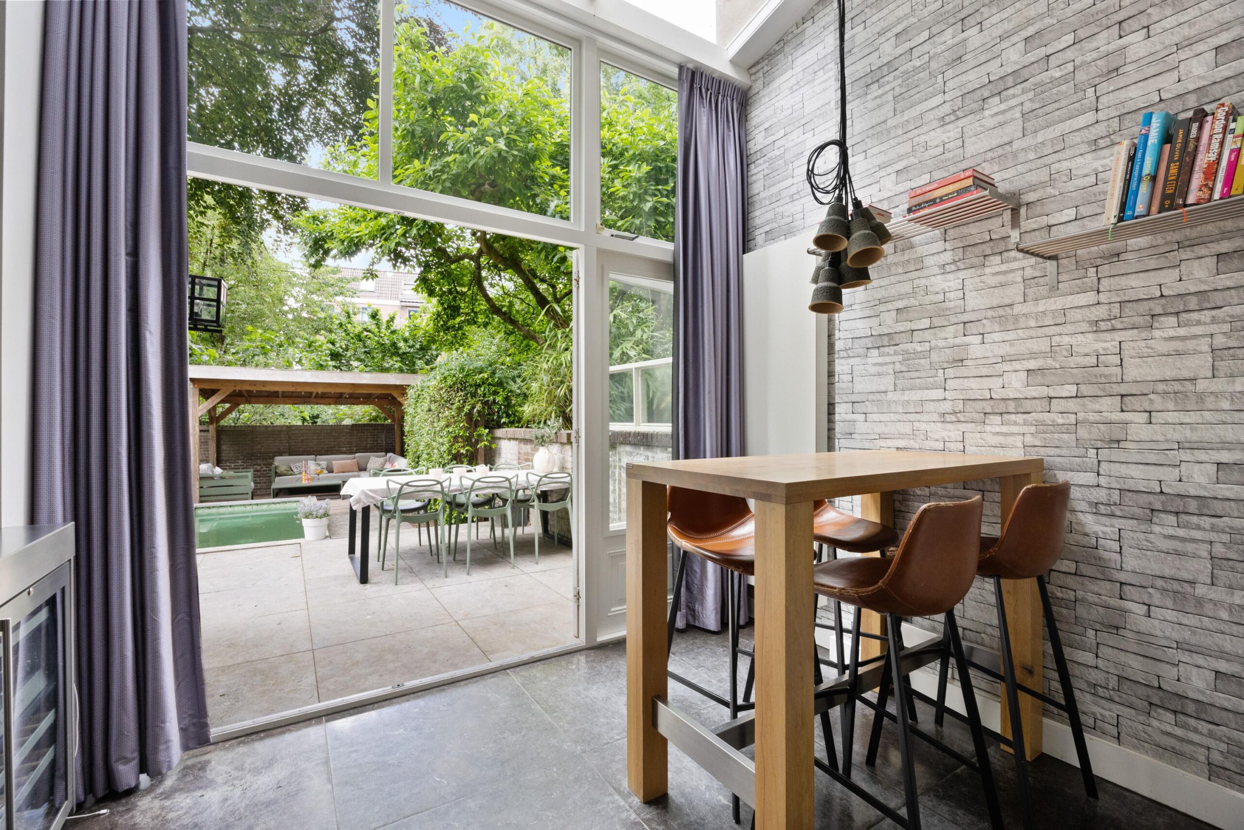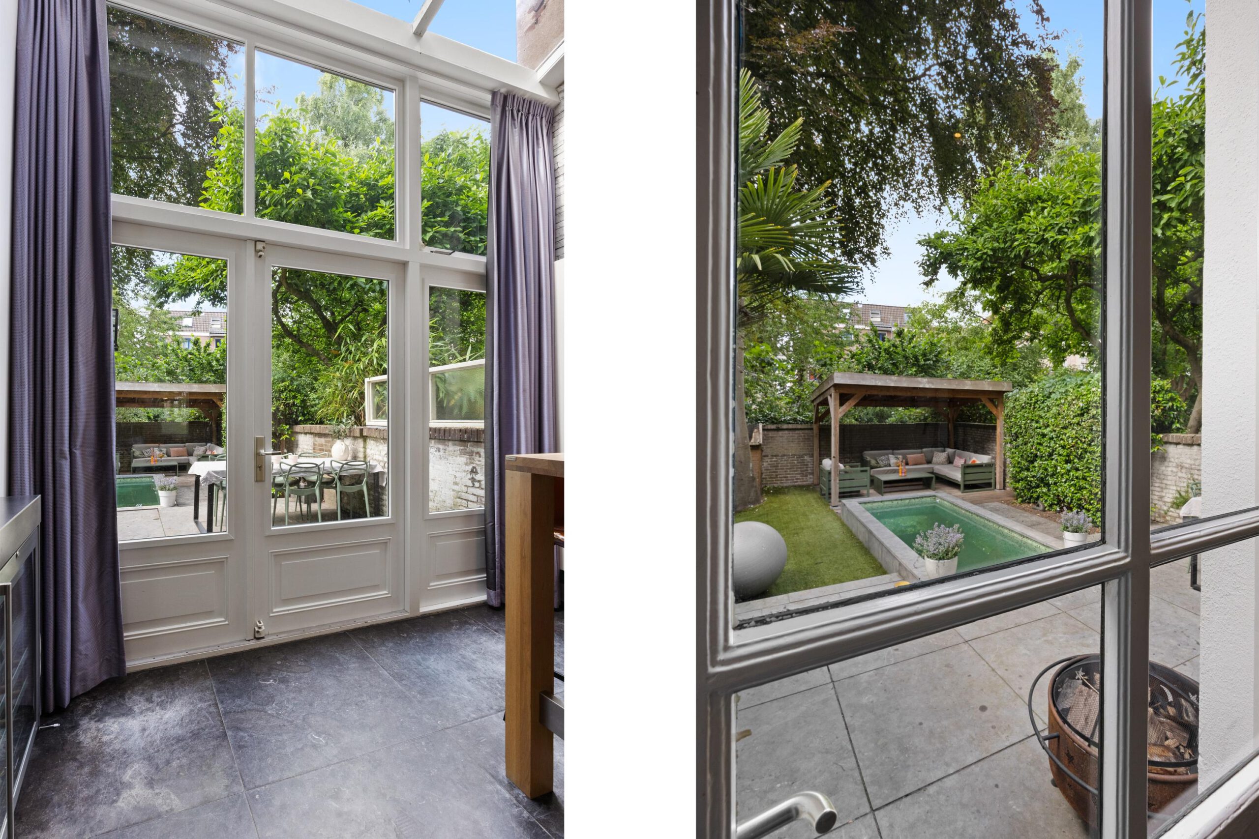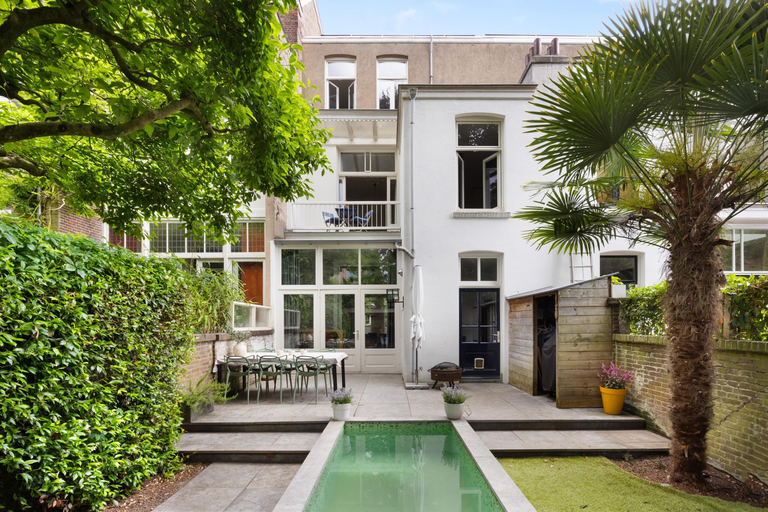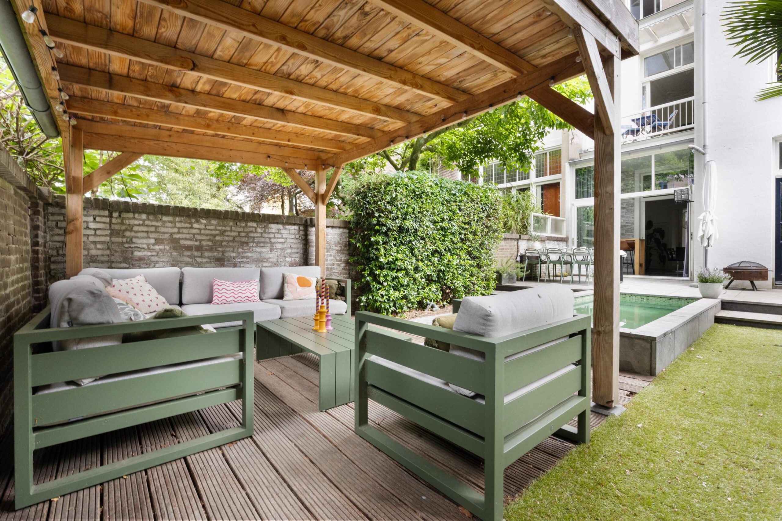 De achtertuin is werkelijk een verborgen parel in de stad – een privé-oase die je niet verwacht in een levendige wijk als deze. De achterliggende "watertuin" (een gemeenschappelijke tuin tussen de woningen in) maakt dat de afstand tot de achterburen riant is. De royale tuin is weelderig groen, met twee uitnodigende terrassen waar je in alle privacy kunt genieten. Het zwembad maakt het plaatje compleet. Ontspannen met een boek, barbecueën met vrienden of spetteren met het gezin – deze tuin biedt het allemaal.