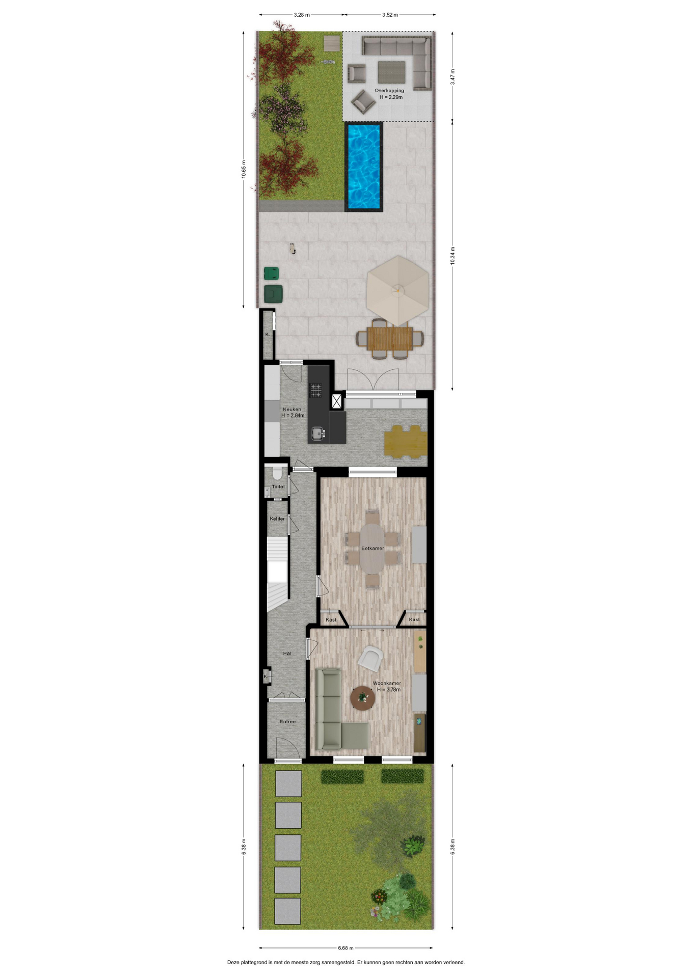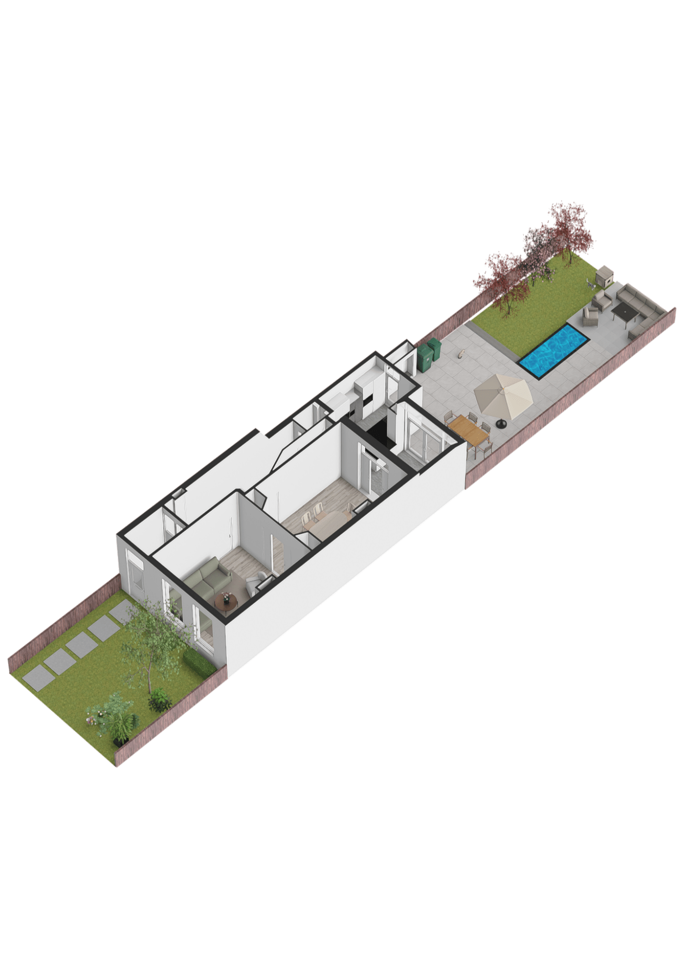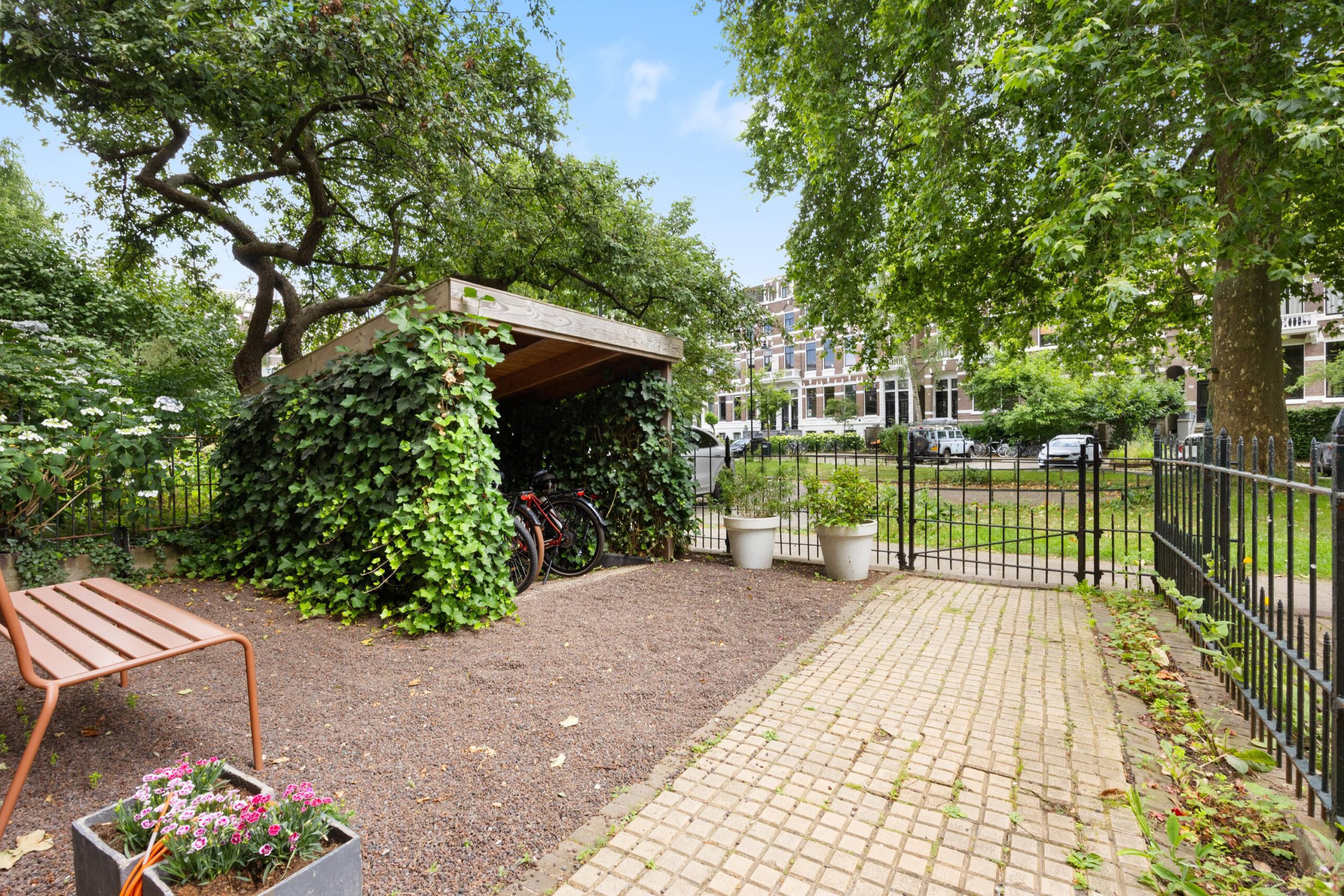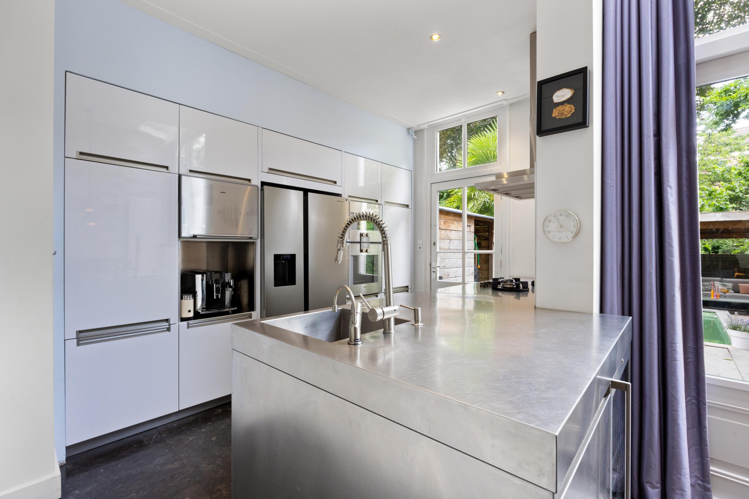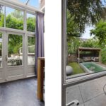 De achtertuin is werkelijk een verborgen parel in de stad – een privé-oase die je niet verwacht in een levendige wijk als deze. De achterliggende "watertuin" (een gemeenschappelijke tuin tussen de woningen in) maakt dat de afstand tot de achterburen riant is. De royale tuin is weelderig groen, met twee uitnodigende terrassen waar je in alle privacy kunt genieten. Het zwembad maakt het plaatje compleet. Ontspannen met een boek, barbecueën met vrienden of spetteren met het gezin – deze tuin biedt het allemaal.