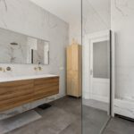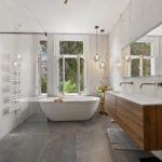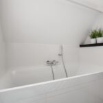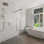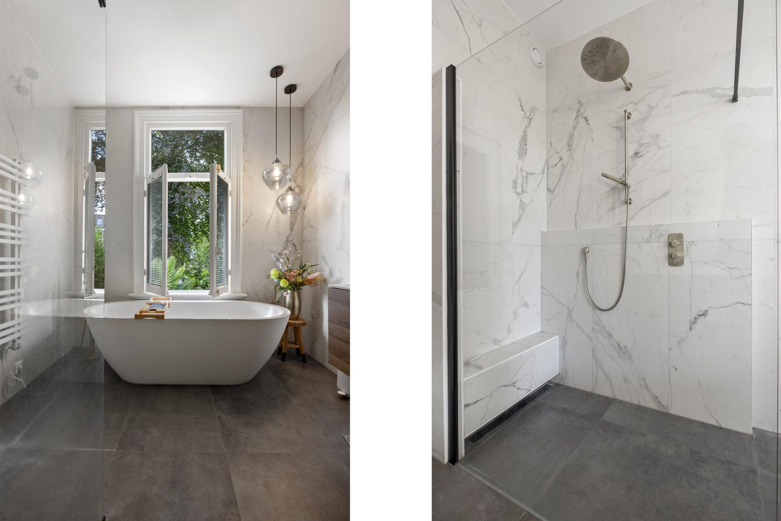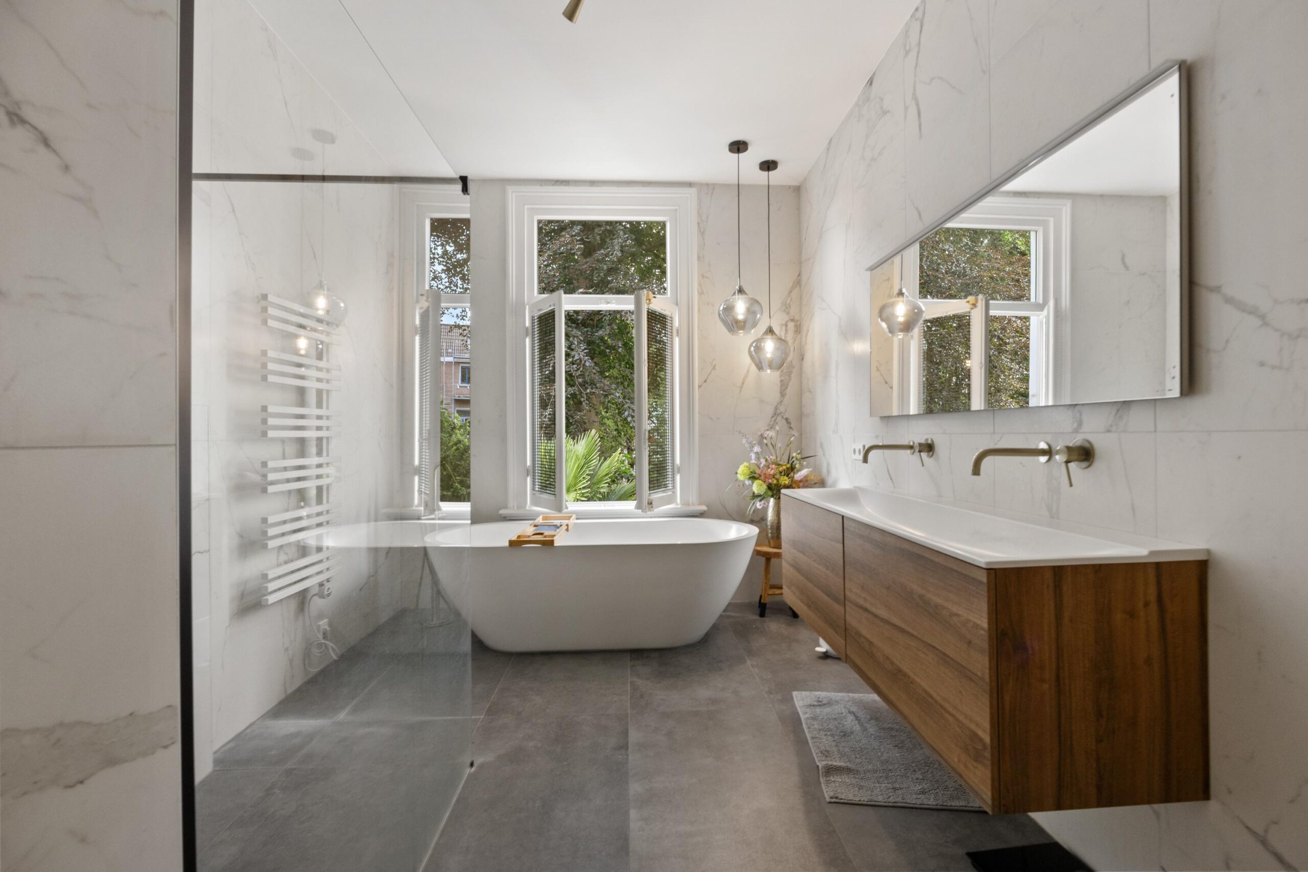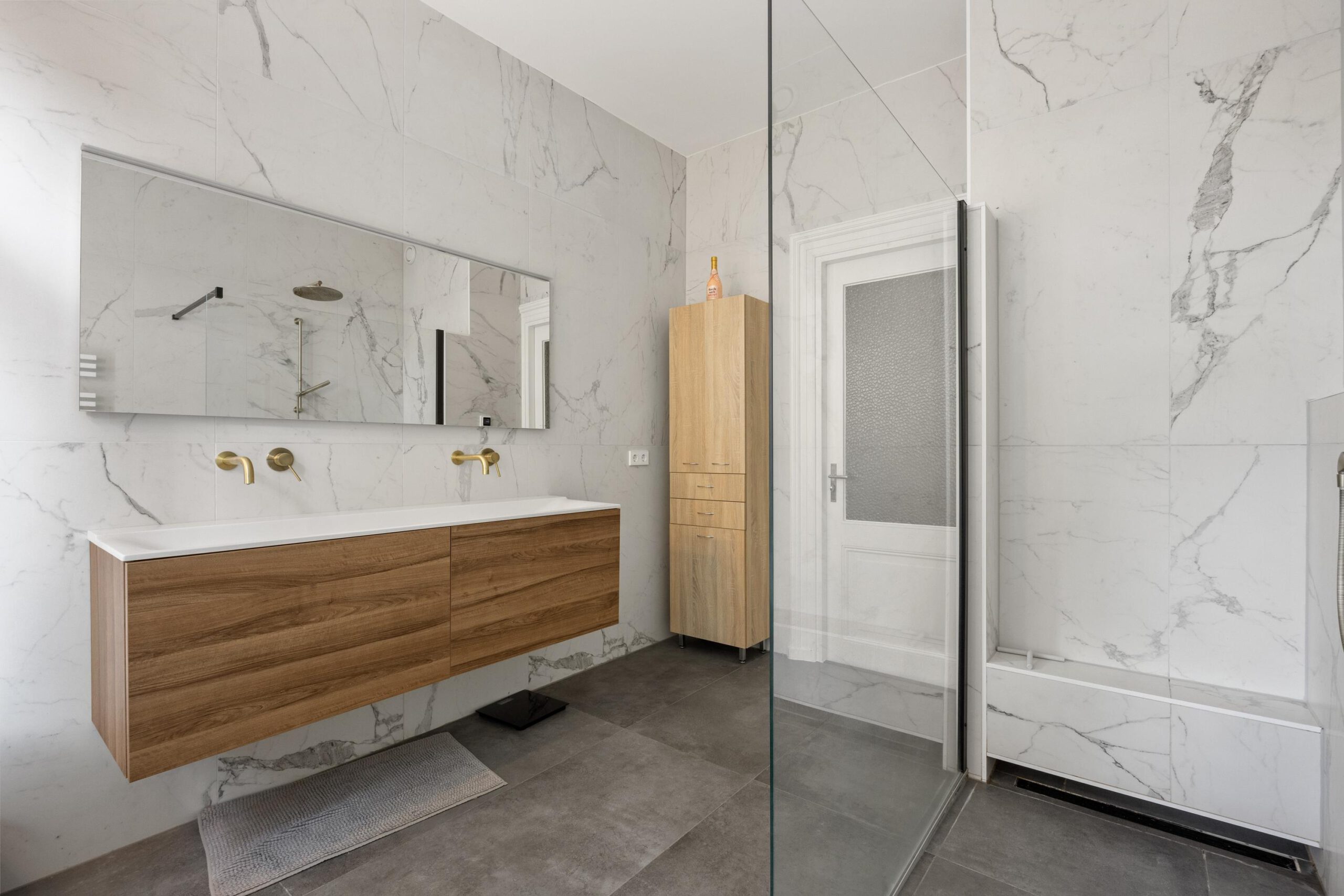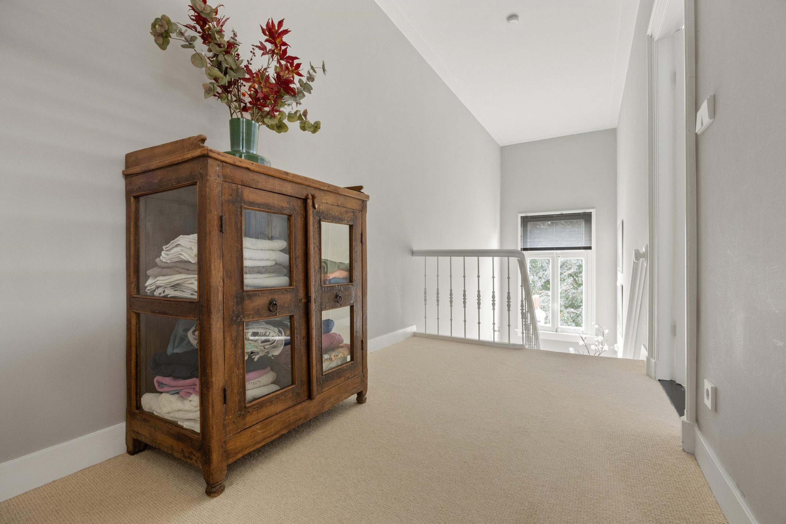 Op de eerste verdieping bevindt zich een luxe, recent gerenoveerde badkamer met een vrijstaand bad, dubbele wastafel en een royale inloopdouche. In deze badkamer kom je na een lange dag helemaal tot rust. Op deze verdieping vind je tevens twee ruime slaapkamers, waarvan één toegang biedt tot een balkon met uitzicht op de groene achtertuin. Deze verdieping beschikt ook over een inloopkast. Deze ruimte kan ook eenvoudig aangepast worden om als extra slaapkamer te gebruiken.