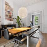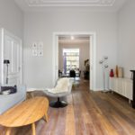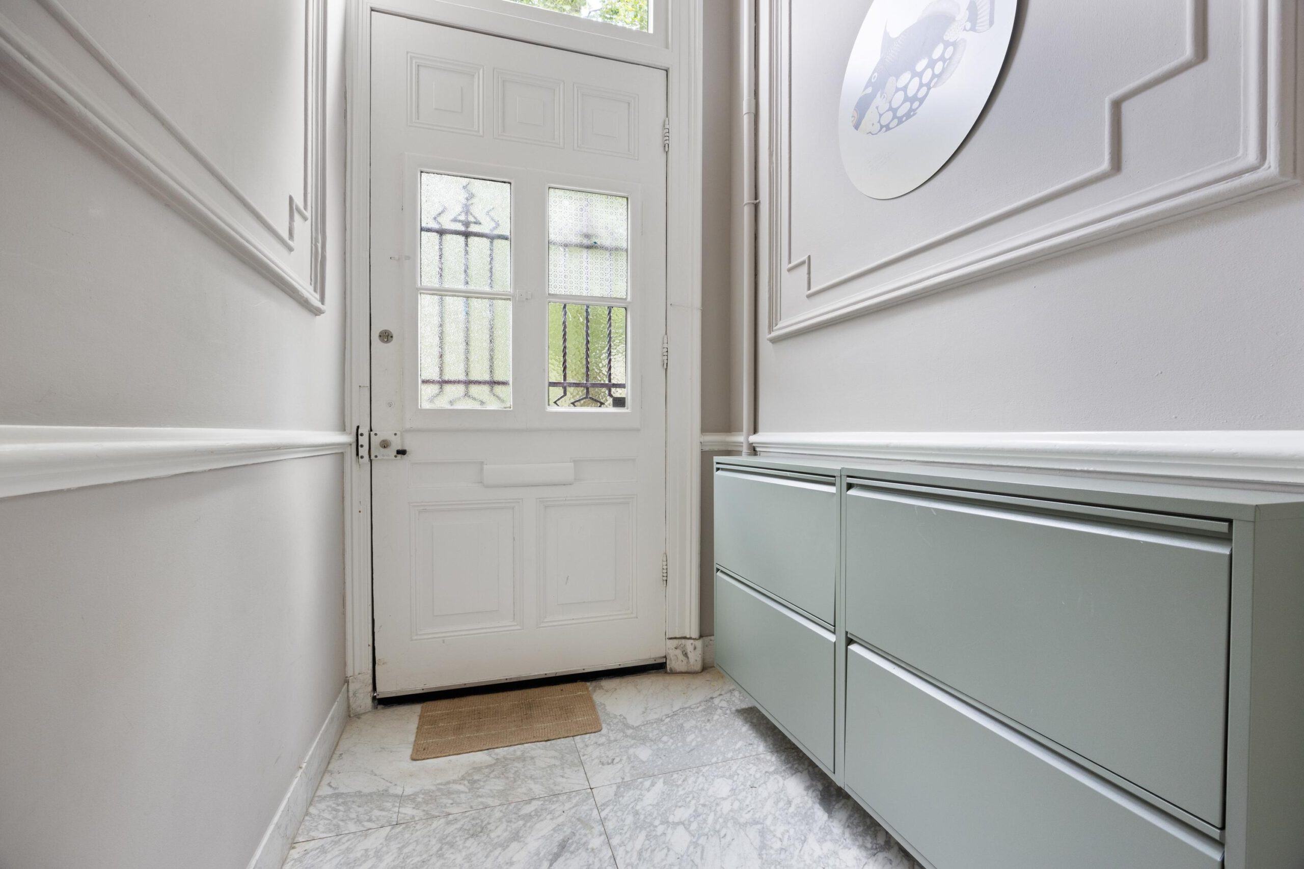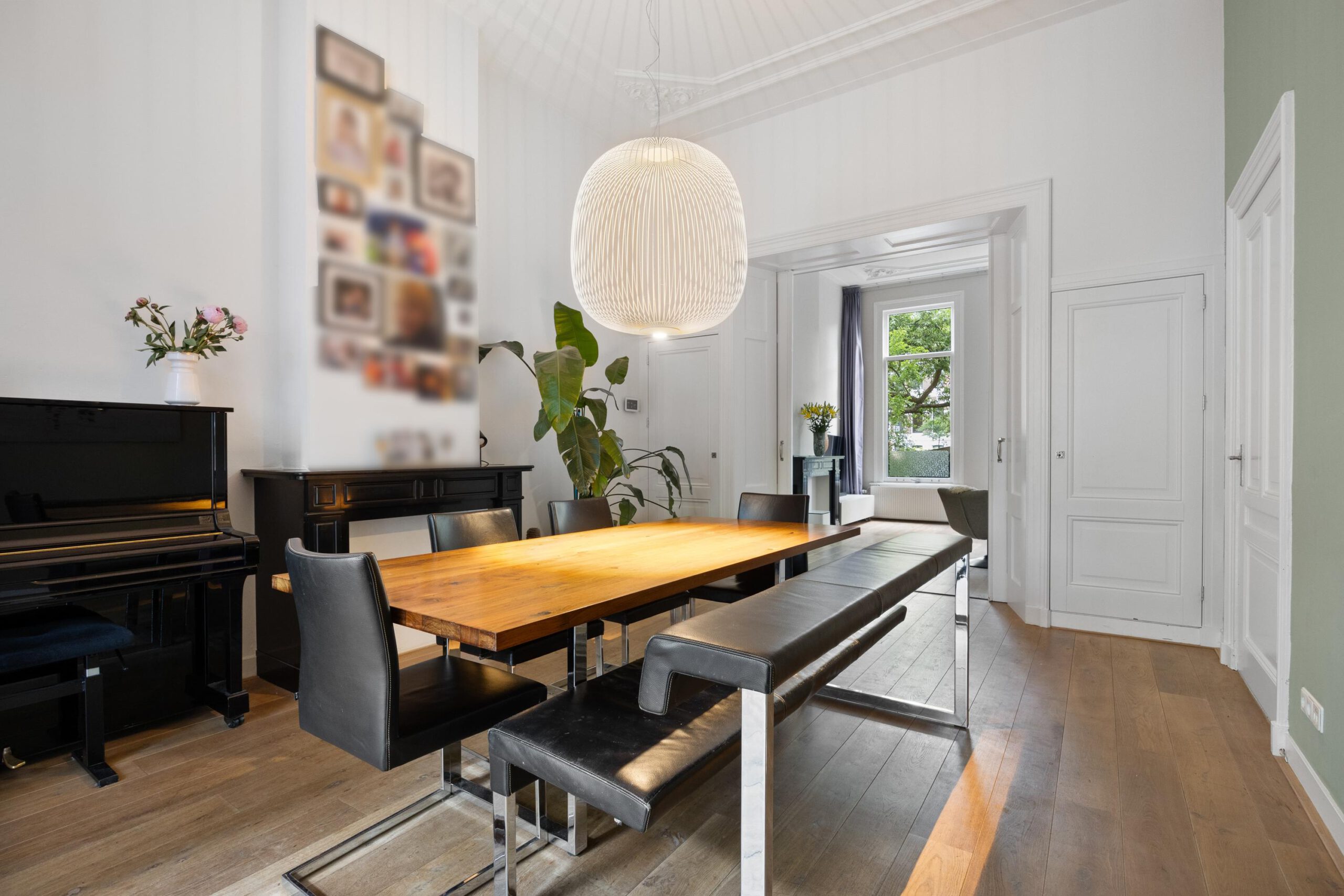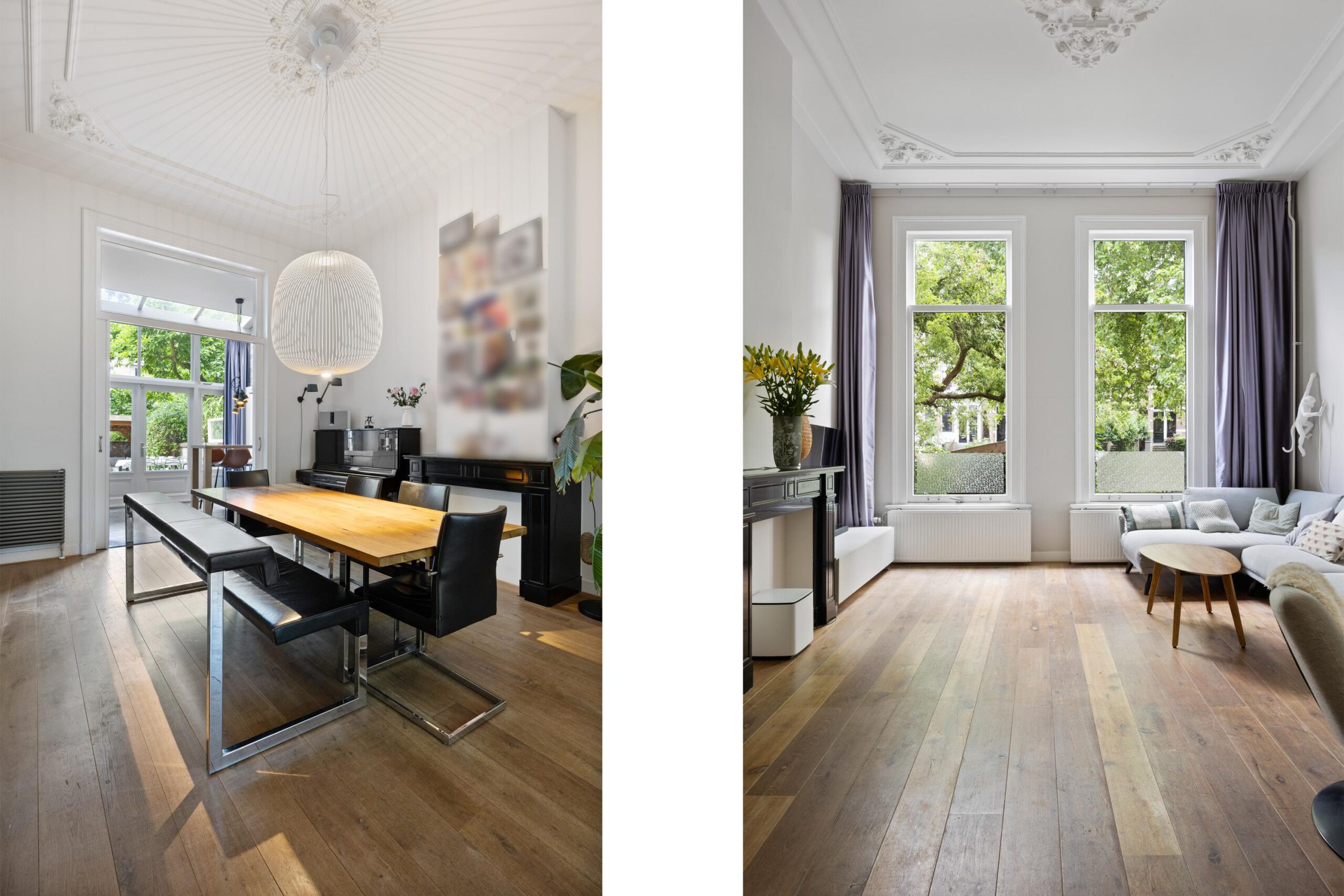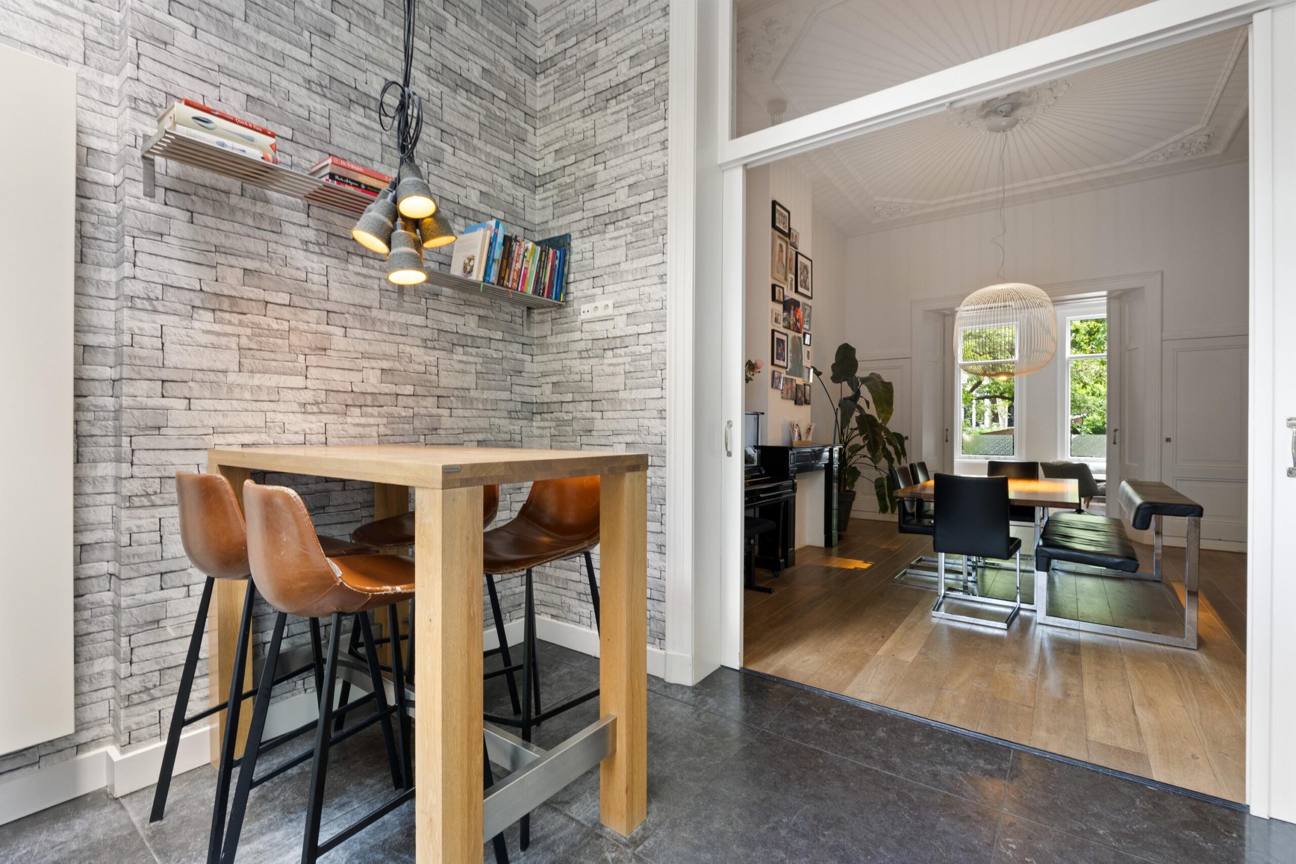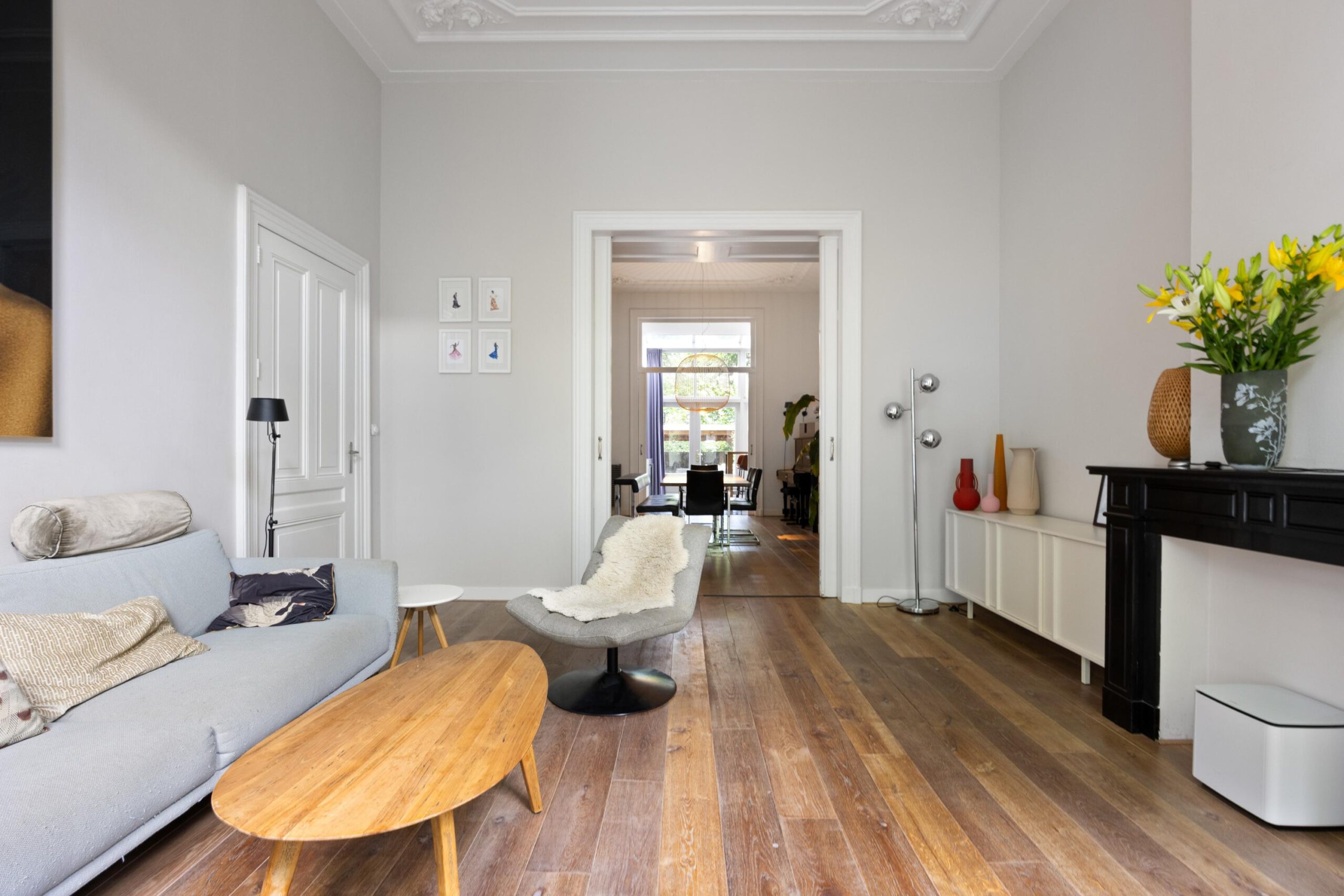 Bij binnenkomst voel je het direct: dit huis ademt geschiedenis. De hal leidt naar de lichte, ruime woonkamer, waar klassieke elementen zoals originele schouwen, paneeldeuren en ornamenten moeiteloos samengaan met eigentijds comfort. Via de originele en suite deuren kom je in de eetkamer, ideaal voor gezellige avonden. De keuken en aangrenzende serre is voorzien voorzien van moderne inbouwapparatuur, heeft openslaande deuren naar de tuin en vormt het hart van het huis. De keuken en serre beschikken over vloerverwarming.