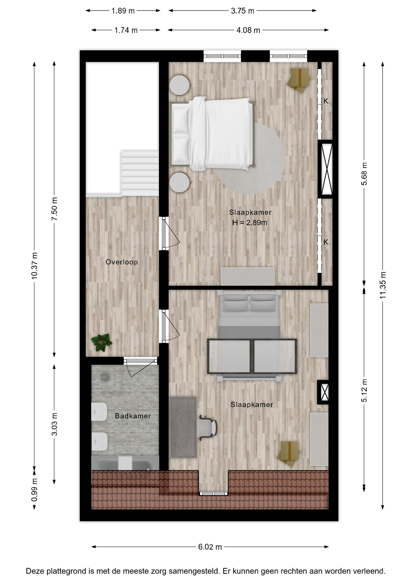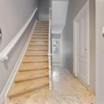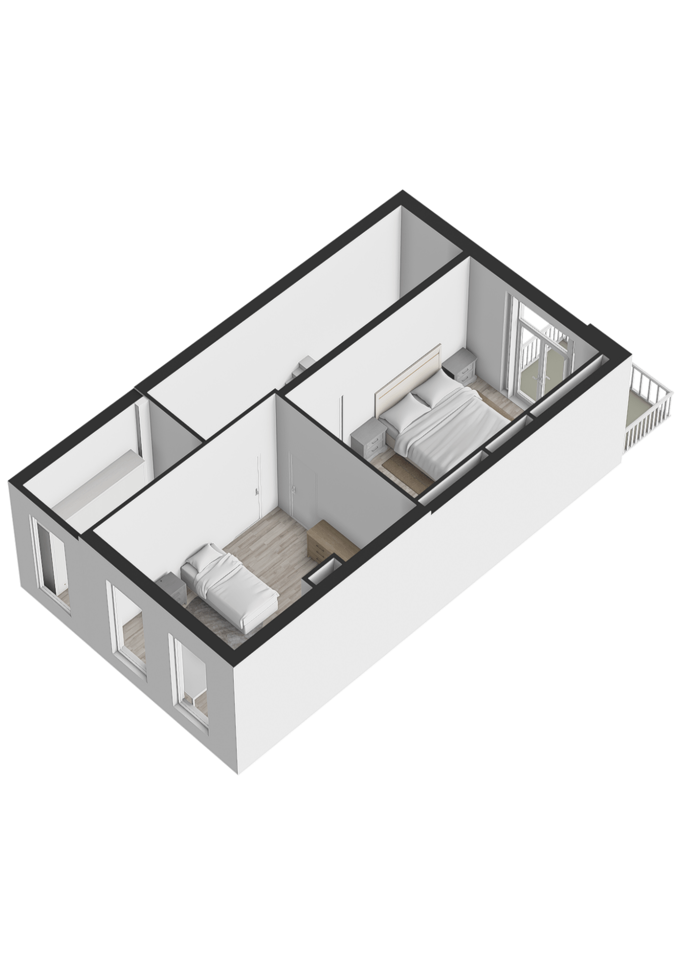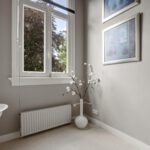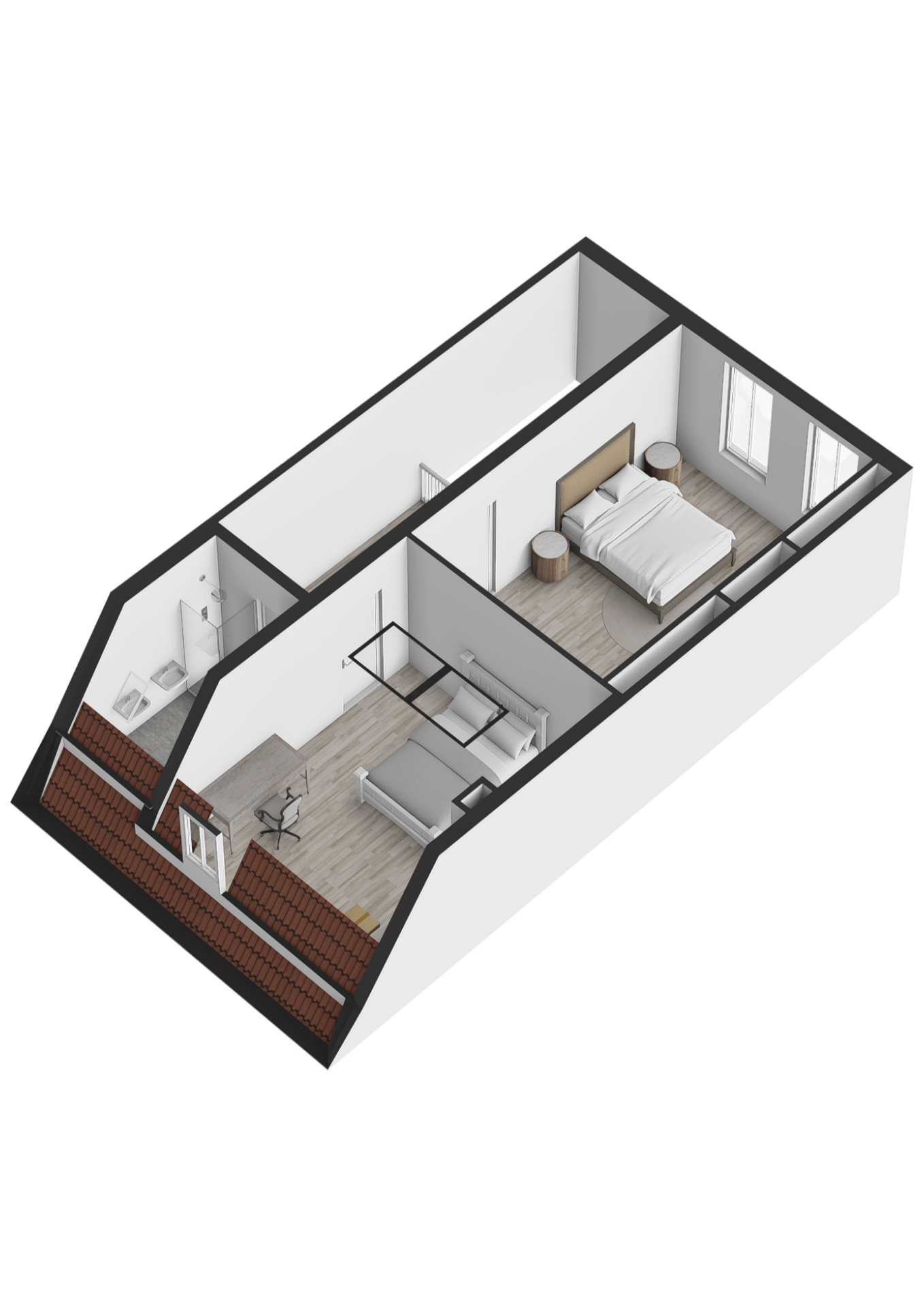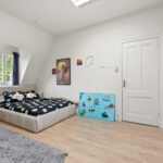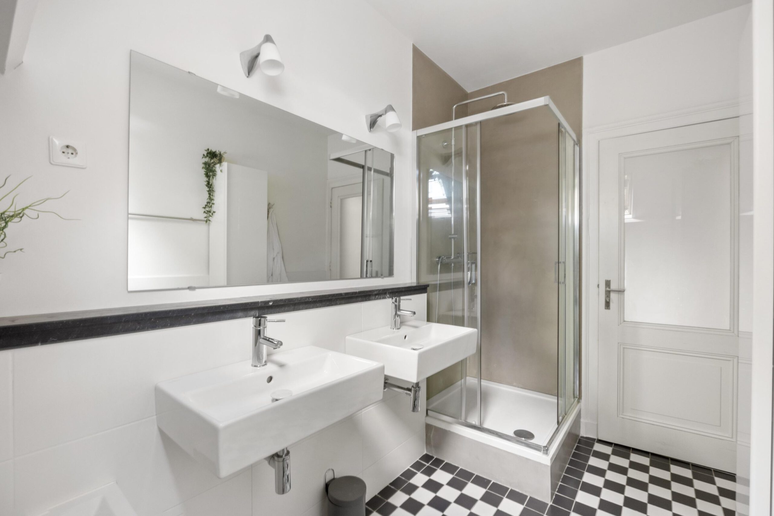 De tweede verdieping dient als overloop en geeft toegang tot de derde verdieping, waar zich nog twee goed bemeten slaapkamers bevinden, evenals een tweede badkamer met douche, bad en dubbele wastafel.