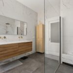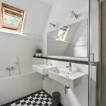 Op de eerste verdieping bevindt zich een luxe, recent gerenoveerde badkamer met een vrijstaand bad, dubbele wastafel en een royale inloopdouche. In deze badkamer kom je na een lange dag helemaal tot rust. Op deze verdieping vind je tevens twee ruime slaapkamers, waarvan één toegang biedt tot een balkon met uitzicht op de groene achtertuin. Deze verdieping beschikt ook over een inloopkast. Deze ruimte kan ook eenvoudig aangepast worden om als extra slaapkamer te gebruiken.