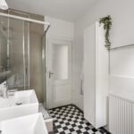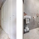 De tweede verdieping dient als overloop en geeft toegang tot de derde verdieping, waar zich nog twee goed bemeten slaapkamers bevinden, evenals een tweede badkamer met douche, bad en dubbele wastafel.