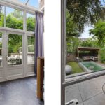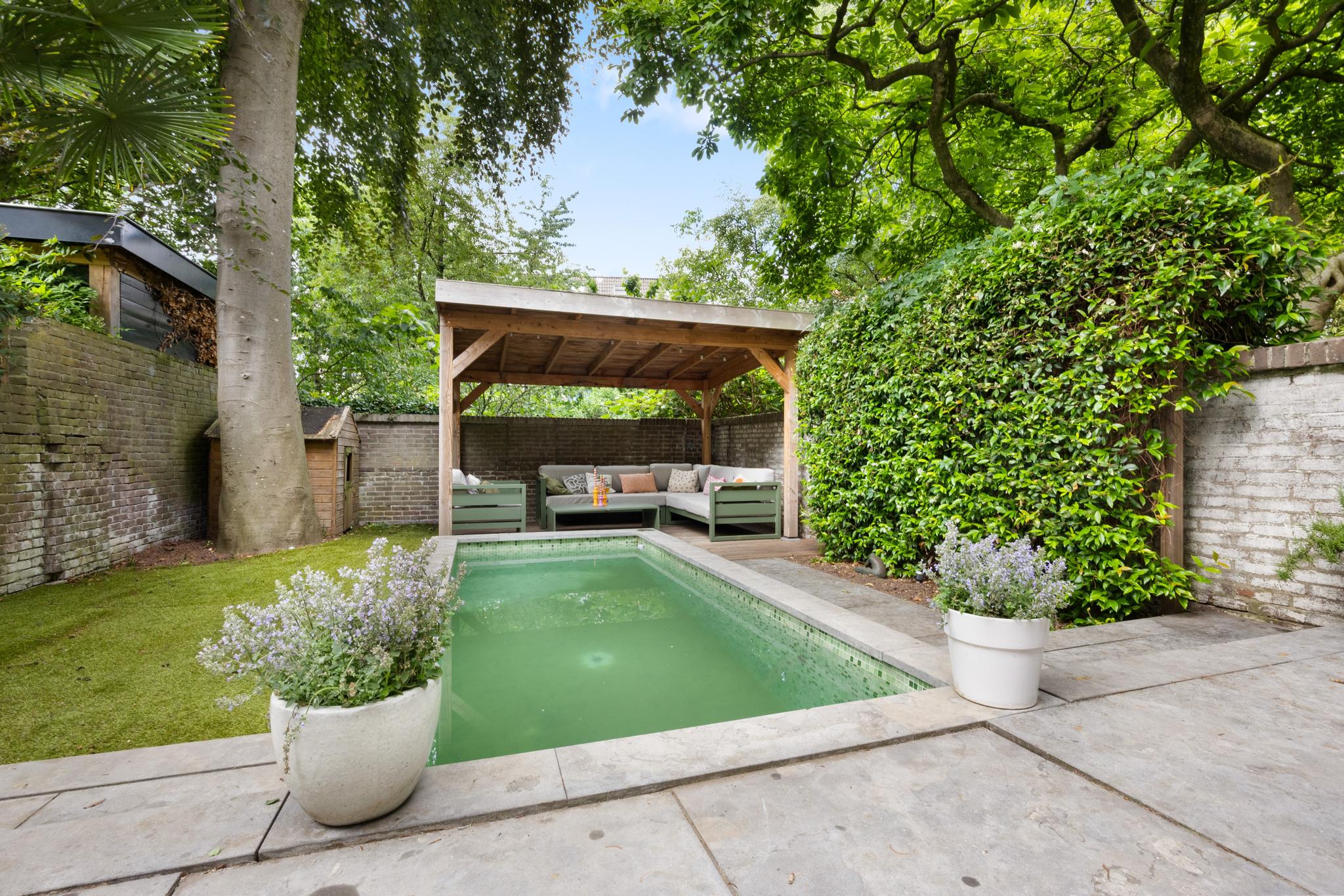 De achtertuin is werkelijk een verborgen parel in de stad – een privé-oase die je niet verwacht in een levendige wijk als deze. De achterliggende "watertuin" (een gemeenschappelijke tuin tussen de woningen in) maakt dat de afstand tot de achterburen riant is. De royale tuin is weelderig groen, met twee uitnodigende terrassen waar je in alle privacy kunt genieten. Het zwembad maakt het plaatje compleet. Ontspannen met een boek, barbecueën met vrienden of spetteren met het gezin – deze tuin biedt het allemaal.