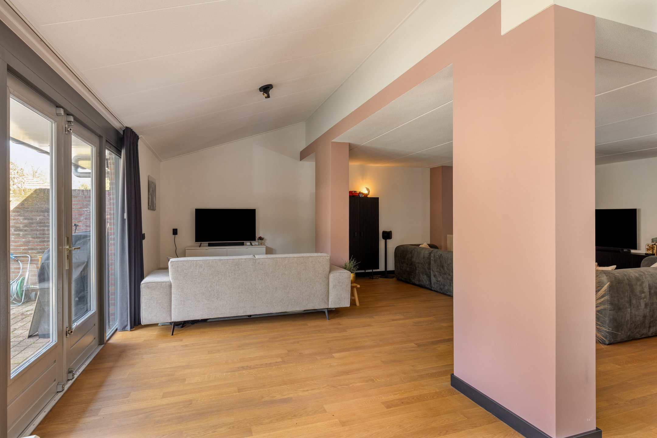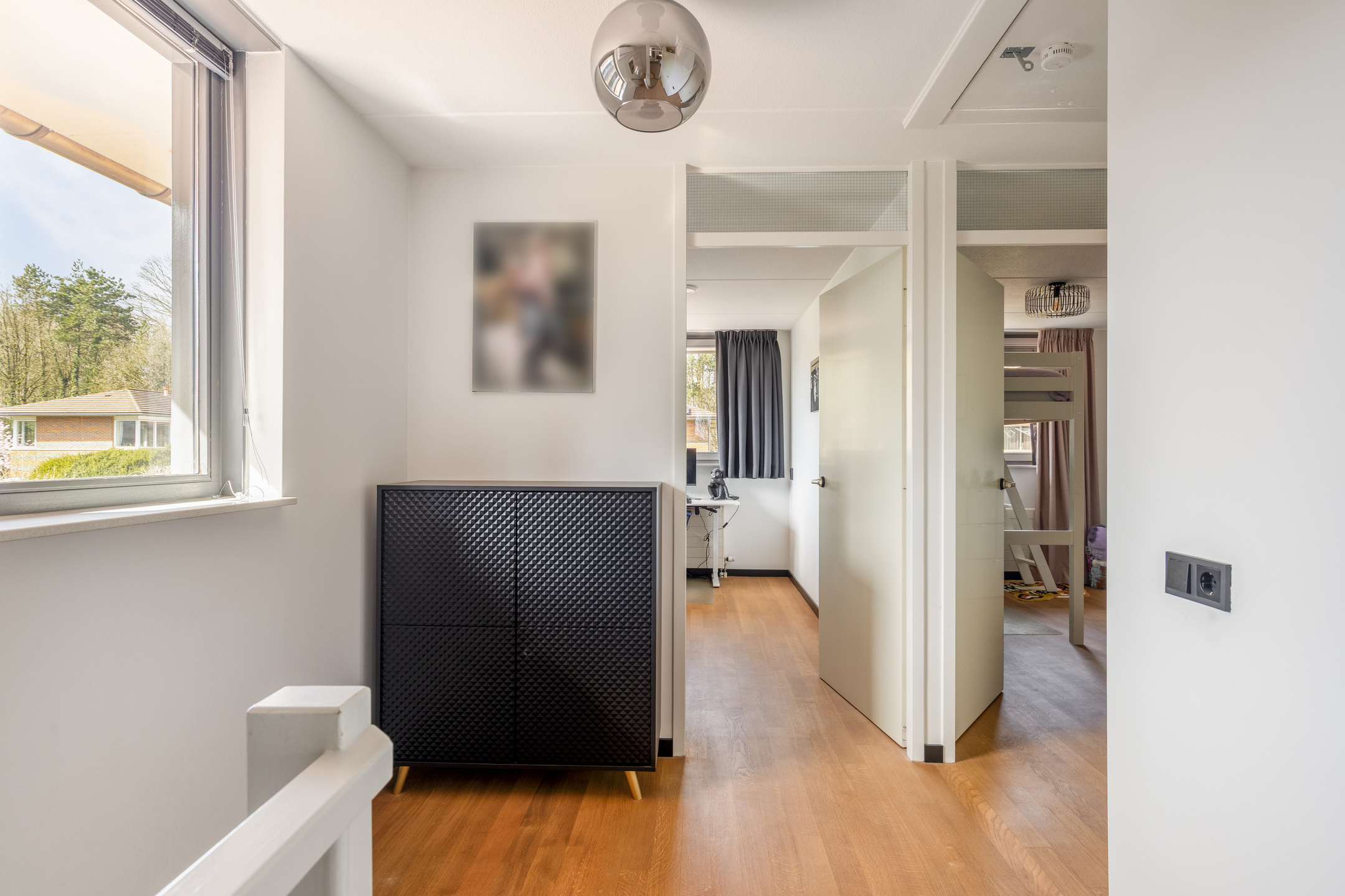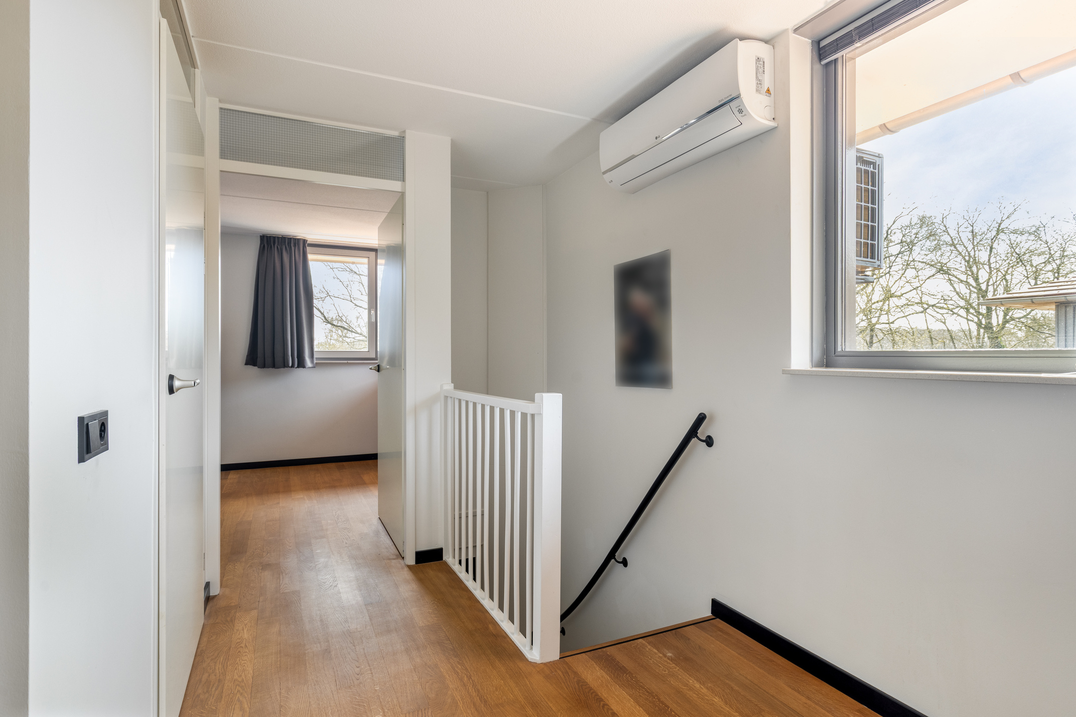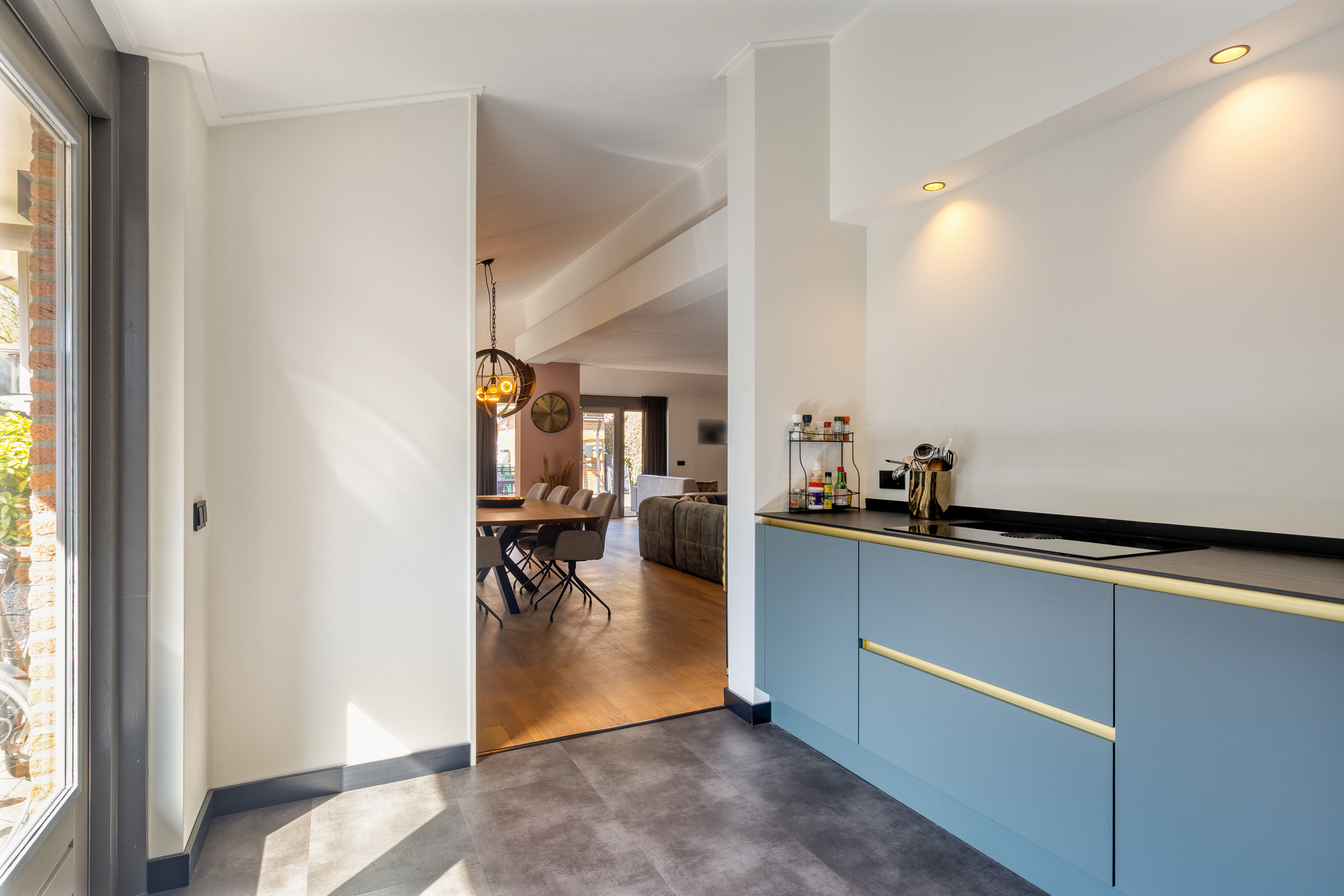 Bij binnenkomst in de representatieve hal met vernieuwde meterkast valt direct het hoogwaardige afwerkingsniveau op. Het schilderwerk is in 2024 volledig uitgevoerd en de bestaande eikenhouten vloer van topkwaliteit is professioneel behandeld en opnieuw gelakt, dit zorgt voor een natuurlijke, warme uitstraling.