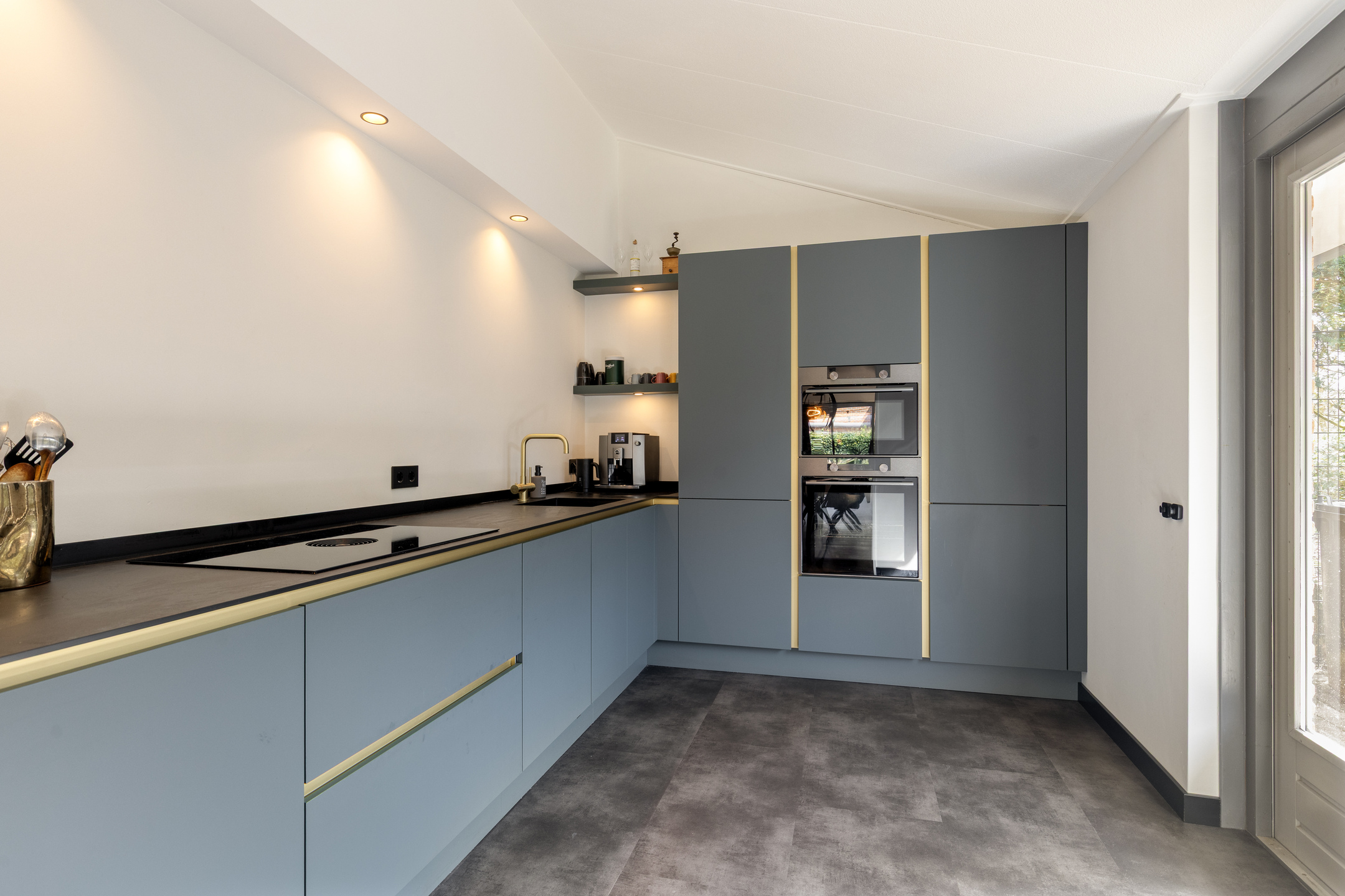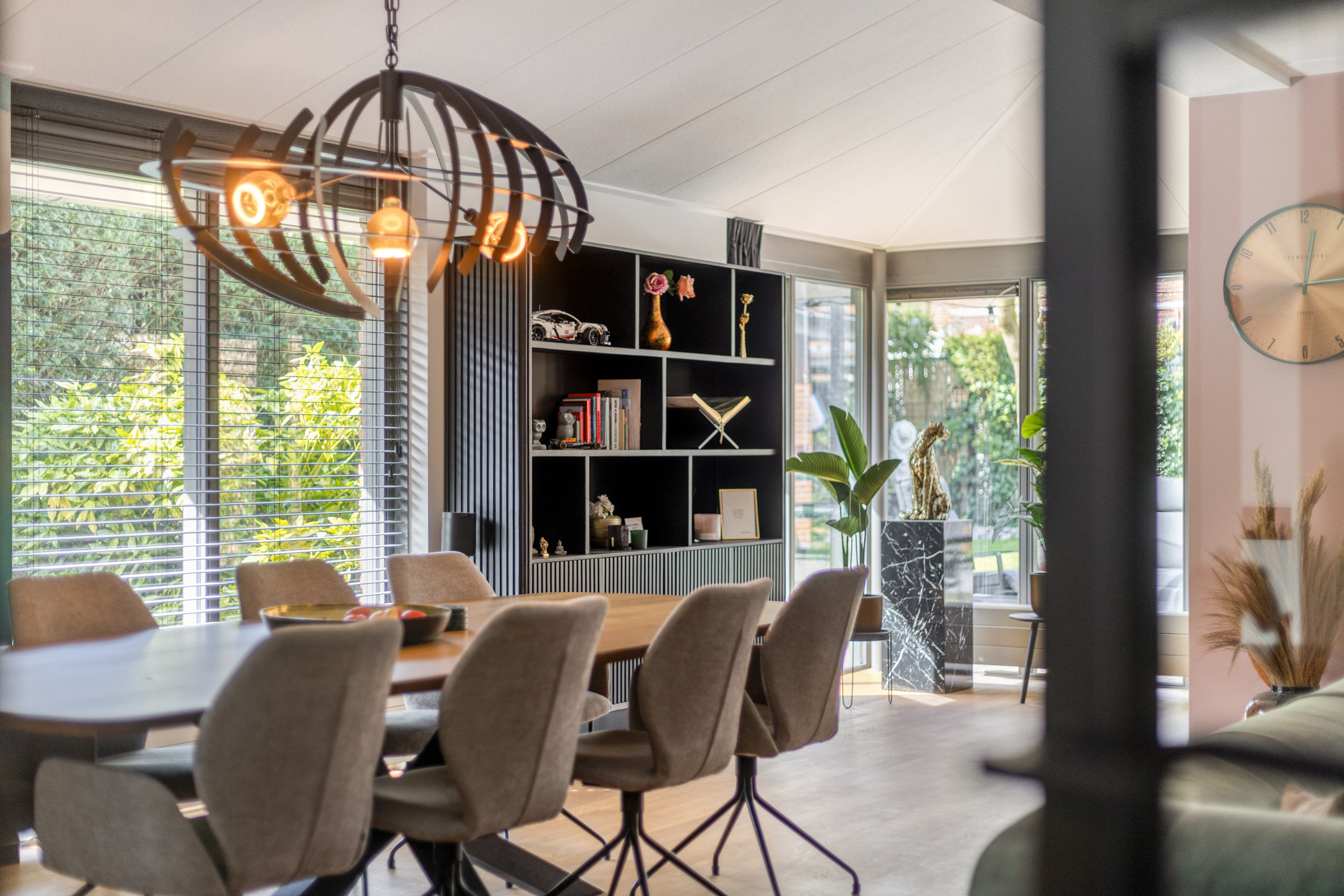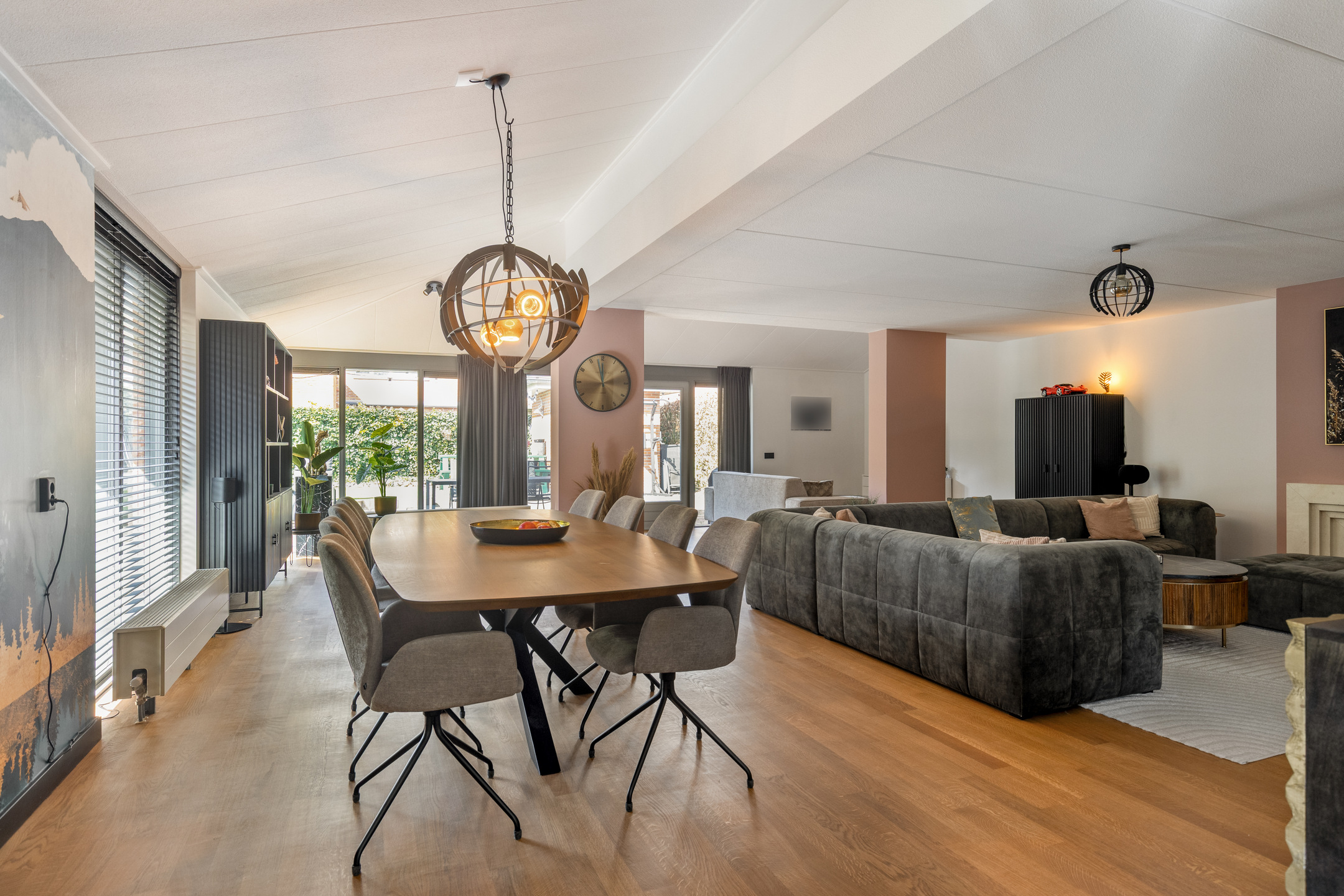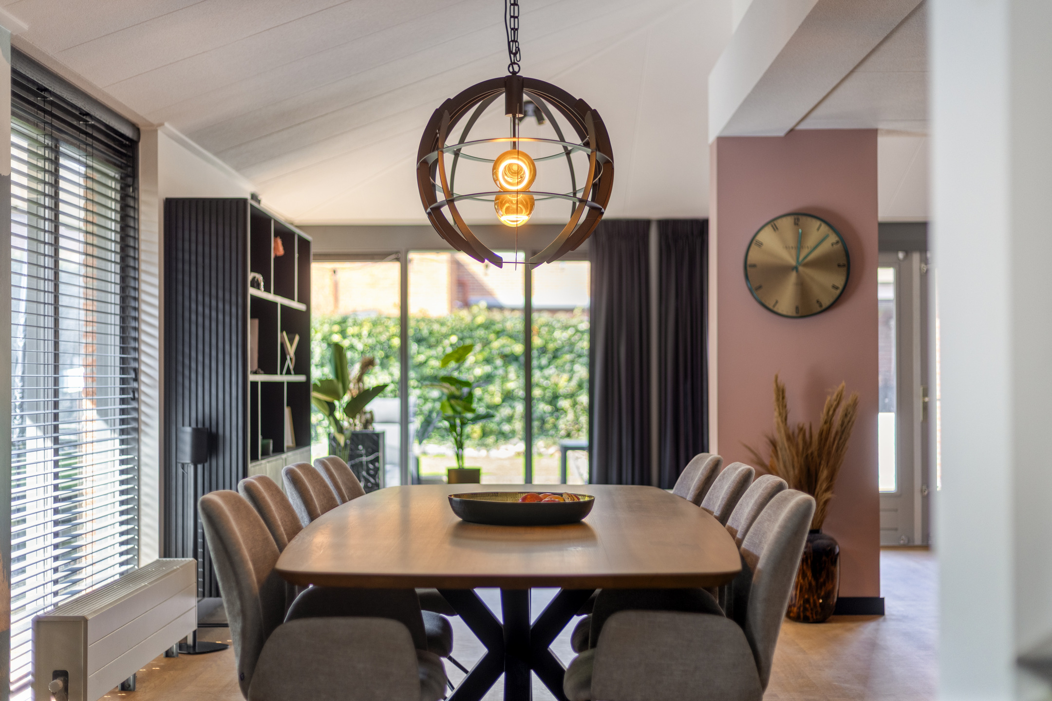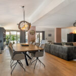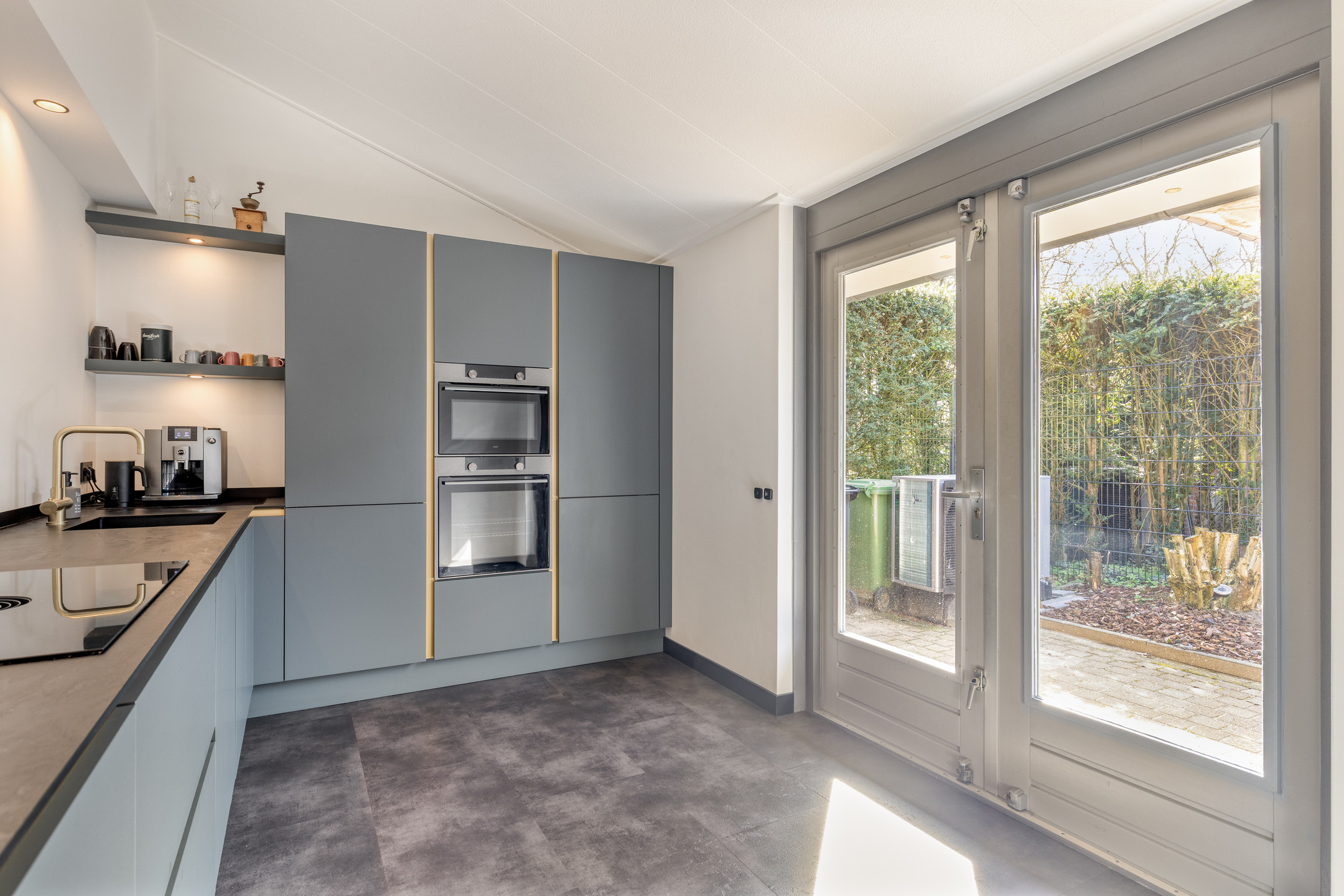 Het eetgedeelte vormt het hart van de woning en staat in open verbinding met zowel de living als de tuin. De in 2024 geplaatste keuken is een droom voor elke thuiskok. Deze zeer modern uitgevoerde ruimte beschikt over een inductiekookplaat en geïntegreerde afzuiging, een Quooker, een combi-magnetron/oven én een extra oven. Via de openslaande deuren vloeit binnen naadloos over in buiten.
