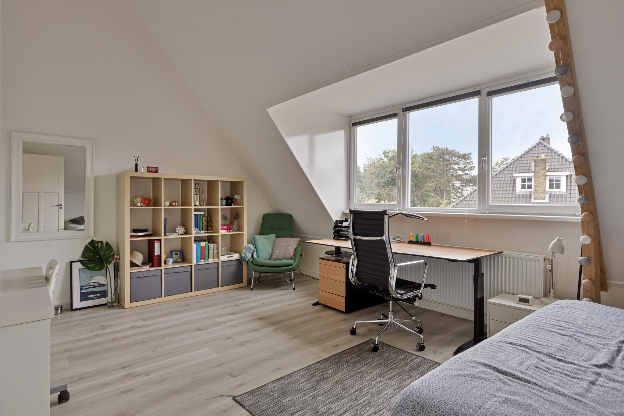 Gebouwd in de jaren dertig, verbouwd om extra ruimte te creëren in het souterrain. Prachtige, ruime woonkamer met open haard en kamer ensuite deuren, 5 slaapkamers en 3 badkamers. Kortom, een ideale gezinswoning. De woning ligt op loopafstand van Park Sonsbeek, Zijpendaal en landgoed Groot Warnsborn, een perfecte omgeving voor liefhebbers van wandelen, hardlopen, mountainbiken en andere buitenactiviteiten. Diverse winkels, waaronder supermarkten, speciaalzaken en een postkantoor zijn dichtbij. In de wijk zijn diverse sportverenigingen - voetbal, tennis, hockey - gevestigd. De Arnhemse topattracties Openluchtmuseum en de Burgers Zoo liggen op fiets- en loopafstand. De snelwegen in de regio (A12 en A50) zijn zeer snel en filevrij te bereiken en binnen 5 minuten fietsen bent u bij het Centraal Station en in het centrum van Arnhem.