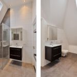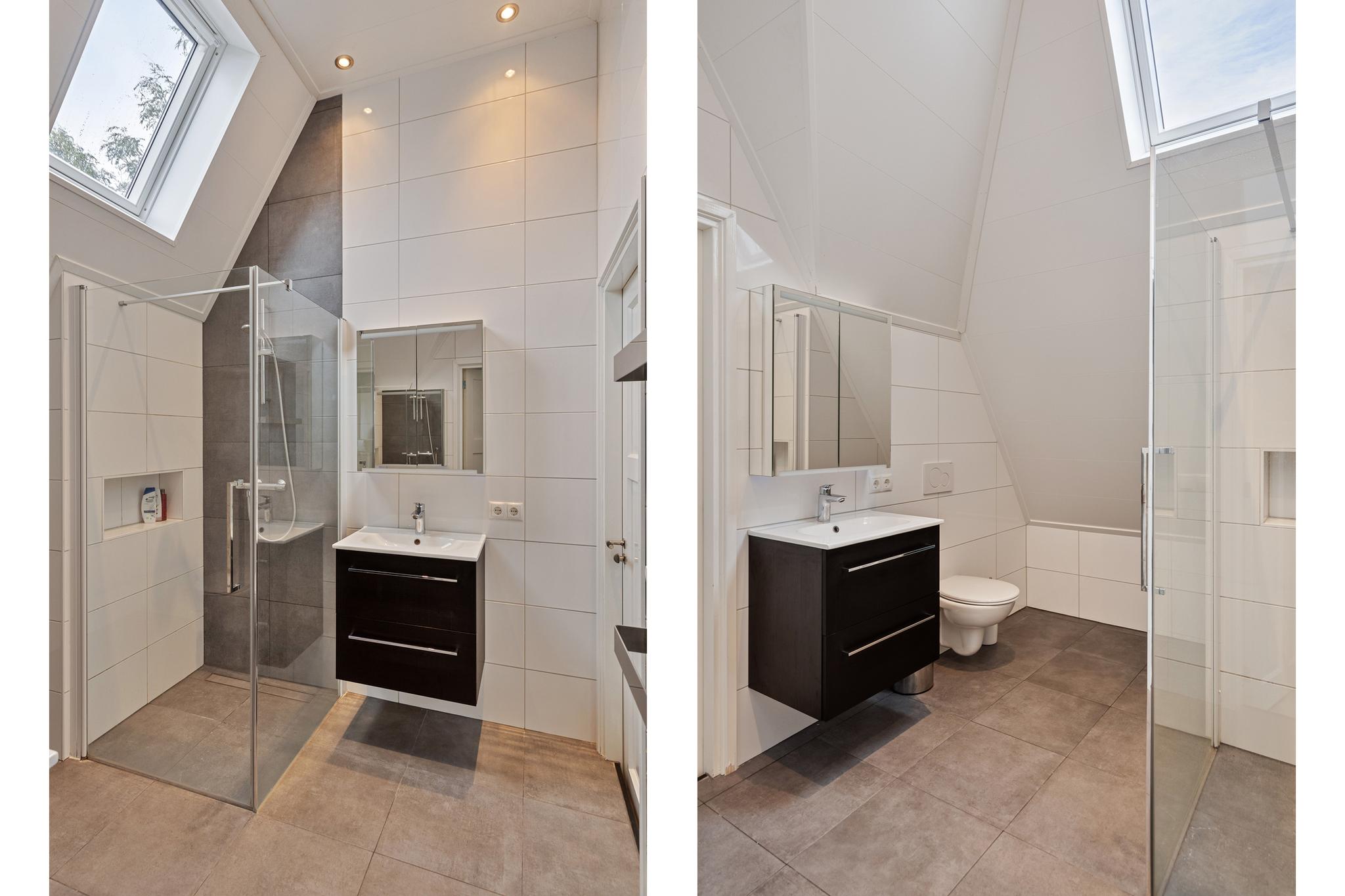 Overloop, 2 ruime slaapkamers die direct toegang hebben tot de 2e badkamer met douche, 2 wastafels en toilet, 1 slaapkamer heeft ook nog een ruime bergkast.