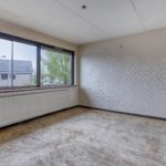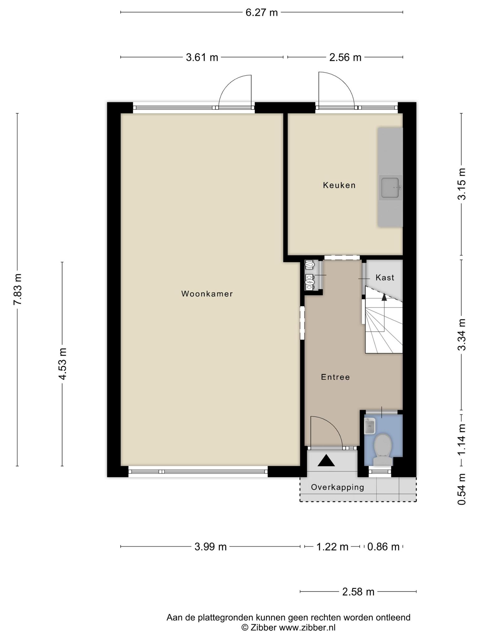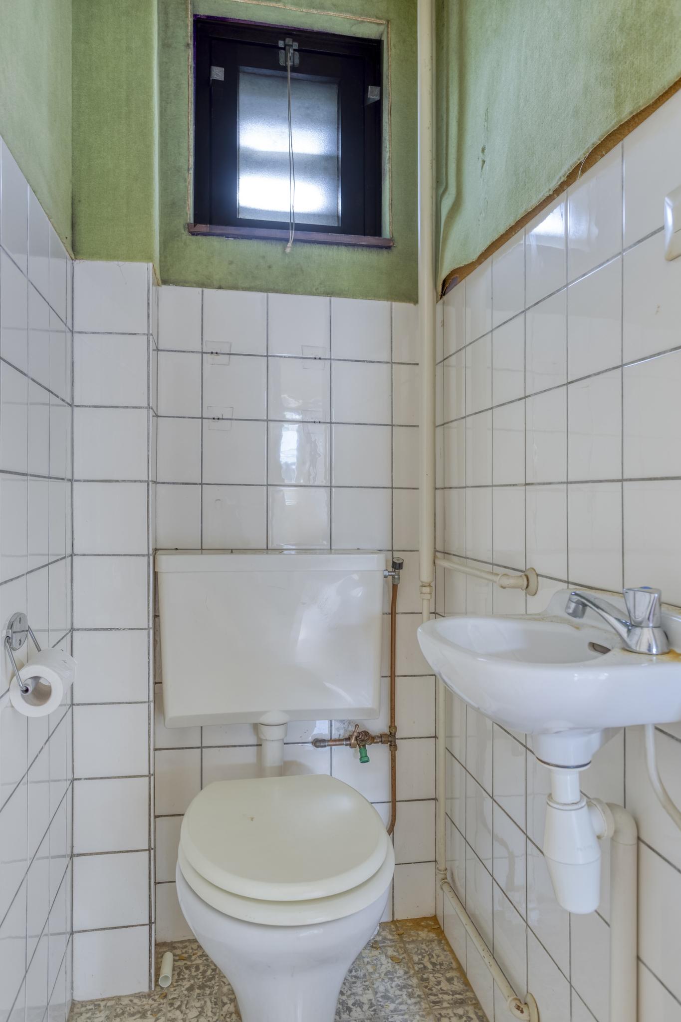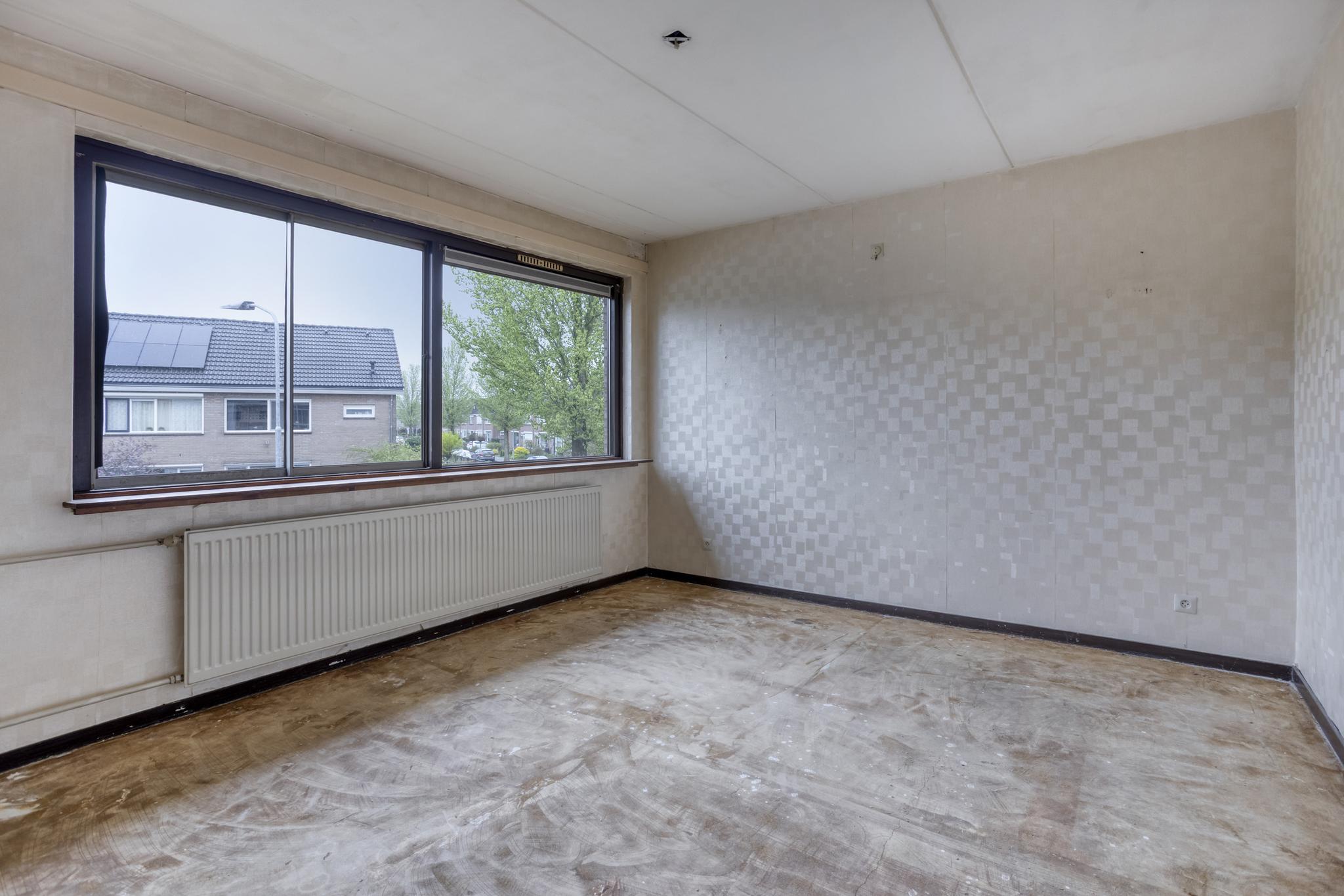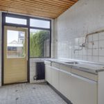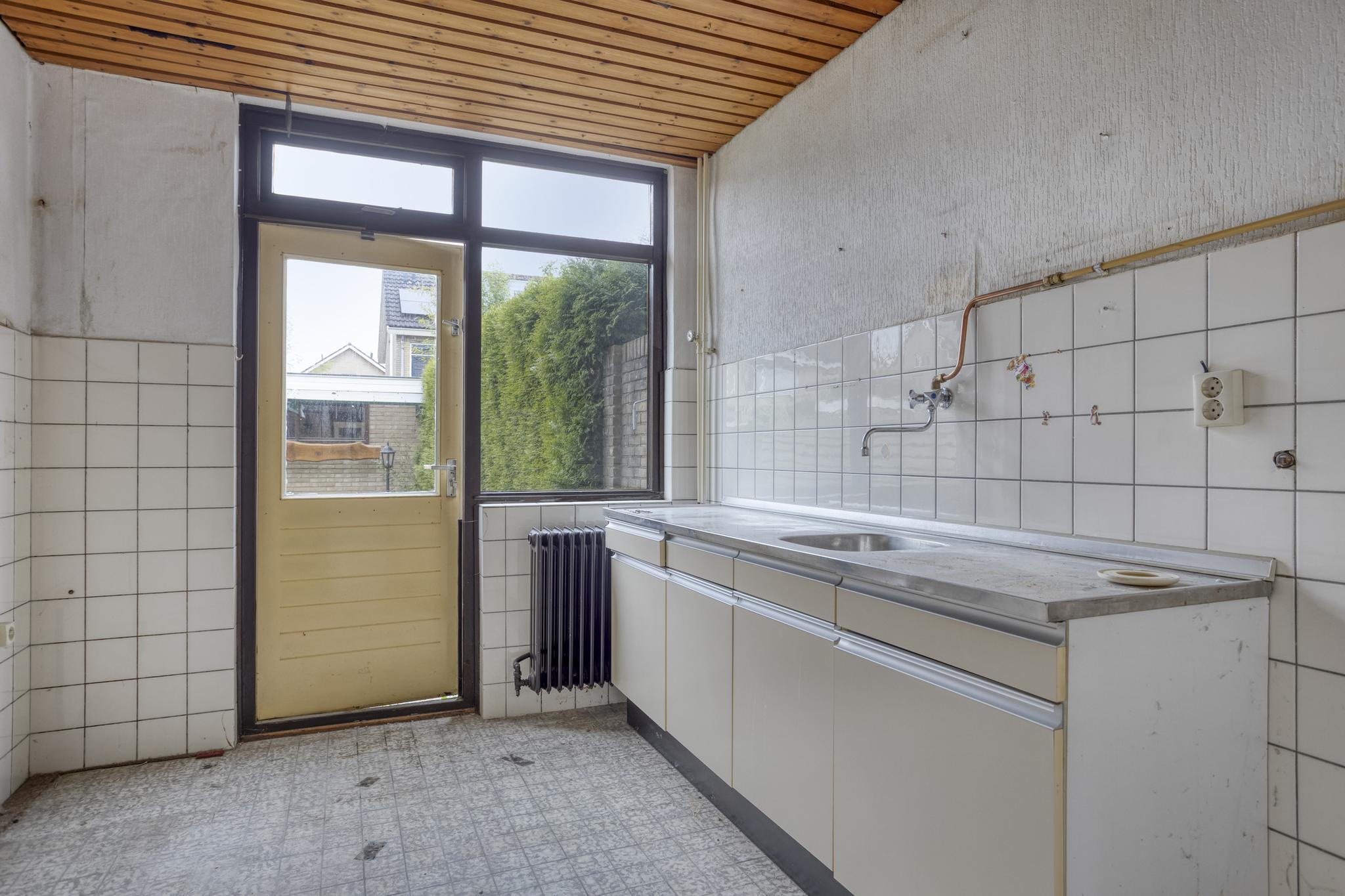 Entree, hal, toilet, trapkast, dichte keuken en royale woonkamer. Vanuit de woonkamer is er toegang tot de achtertuin.