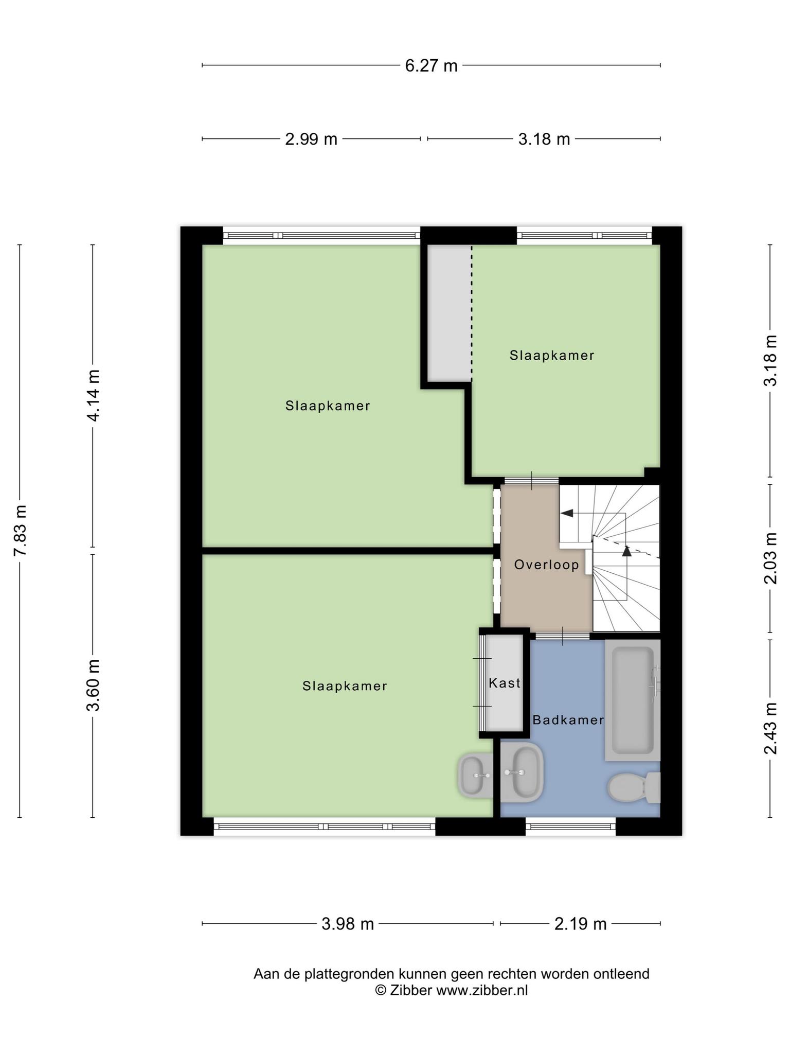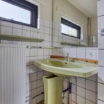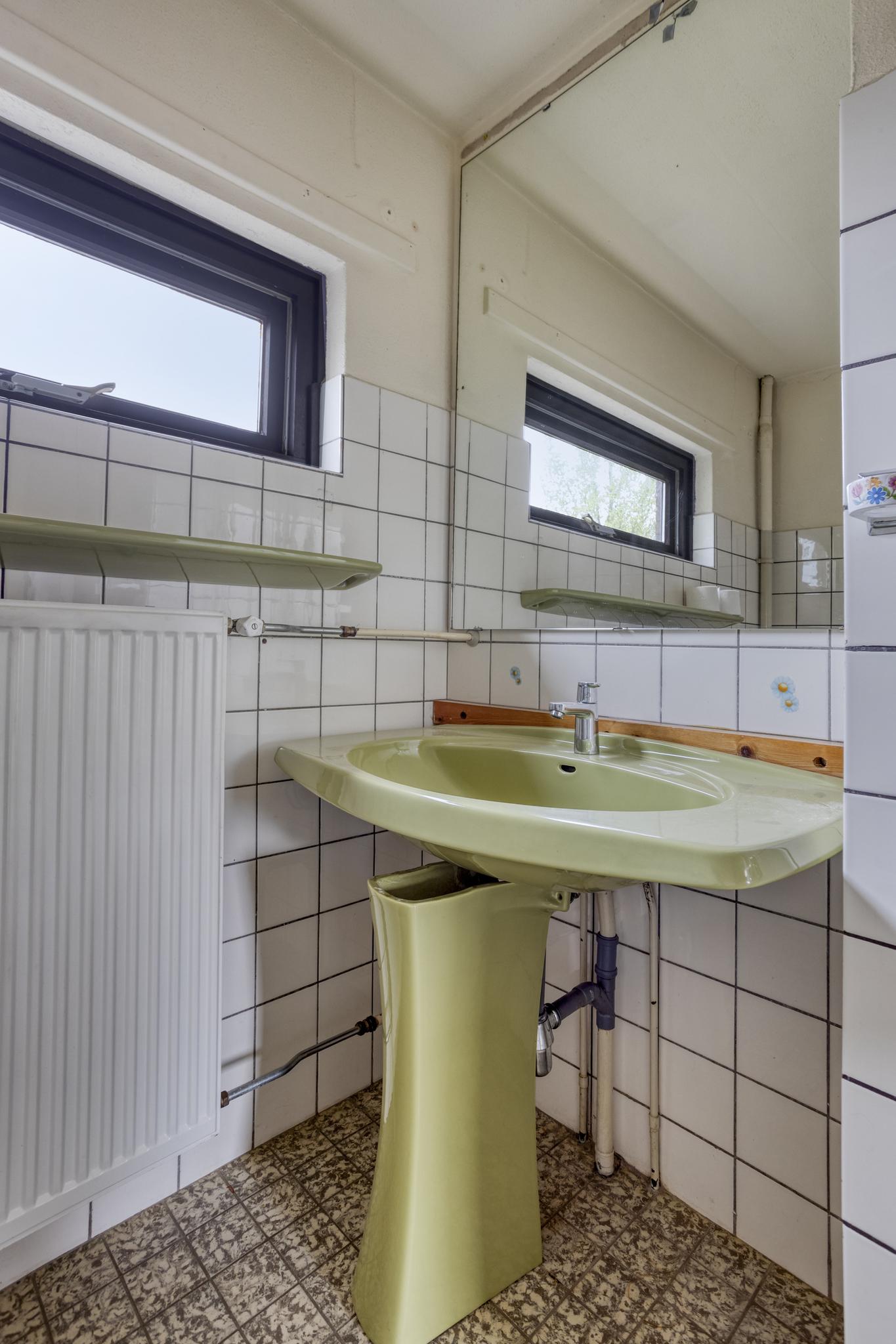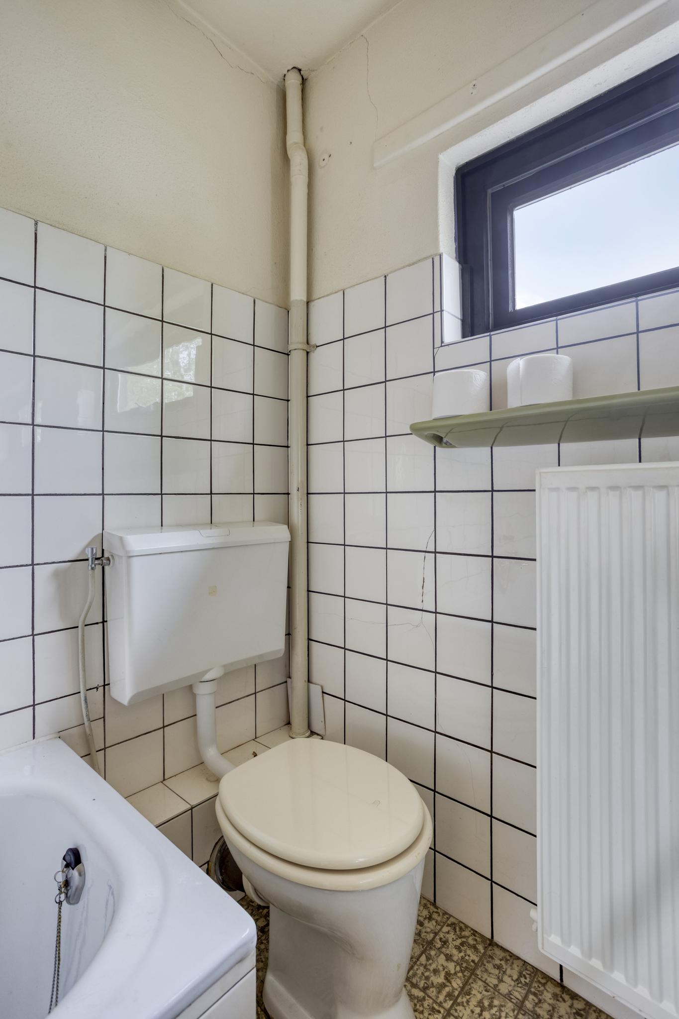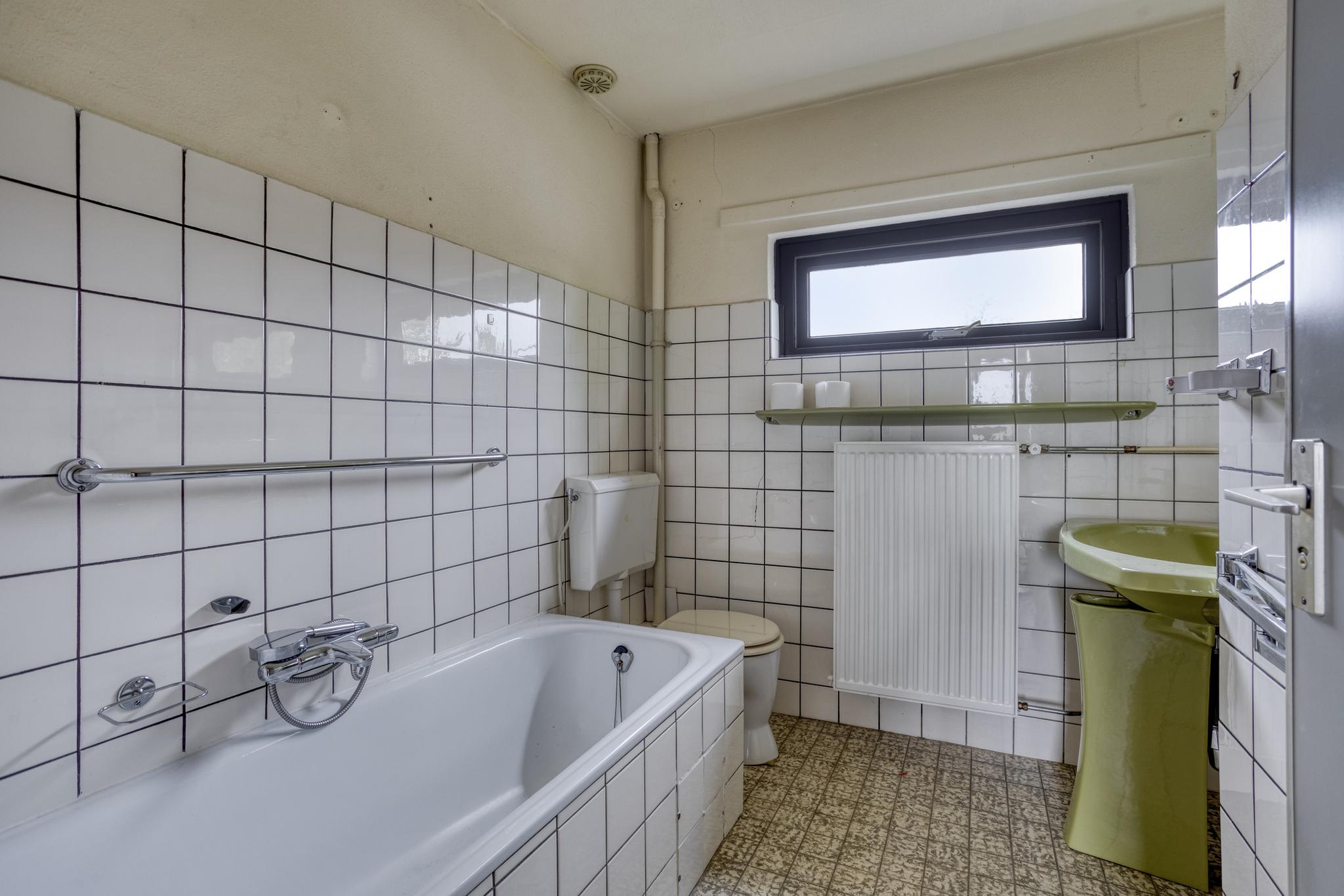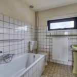 Overloop, 3 slaapkamers en badkamer voorzien van ligbad/douche, toilet en wastafel.