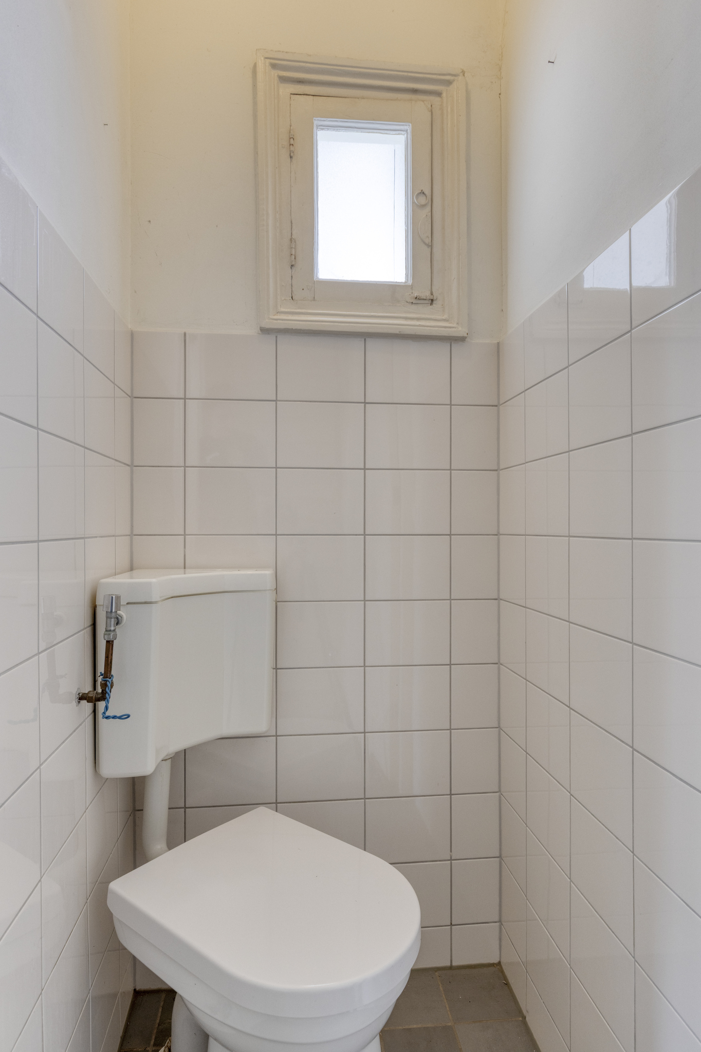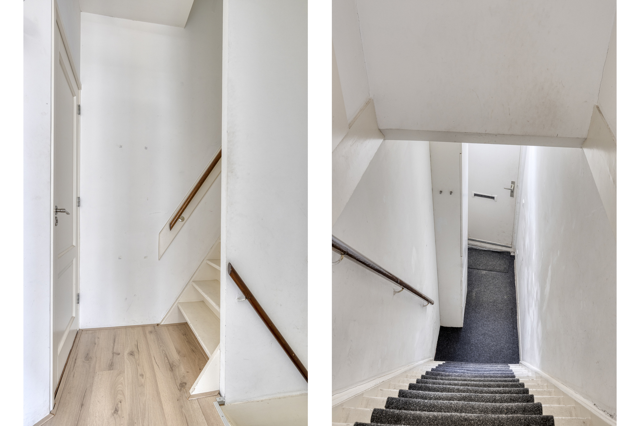 Via de eigen entree op de begane grond bereik je via de trap het centrale halletje op de eerste verdieping. Hier vind je het toilet en de toegang tot het woongedeelte.