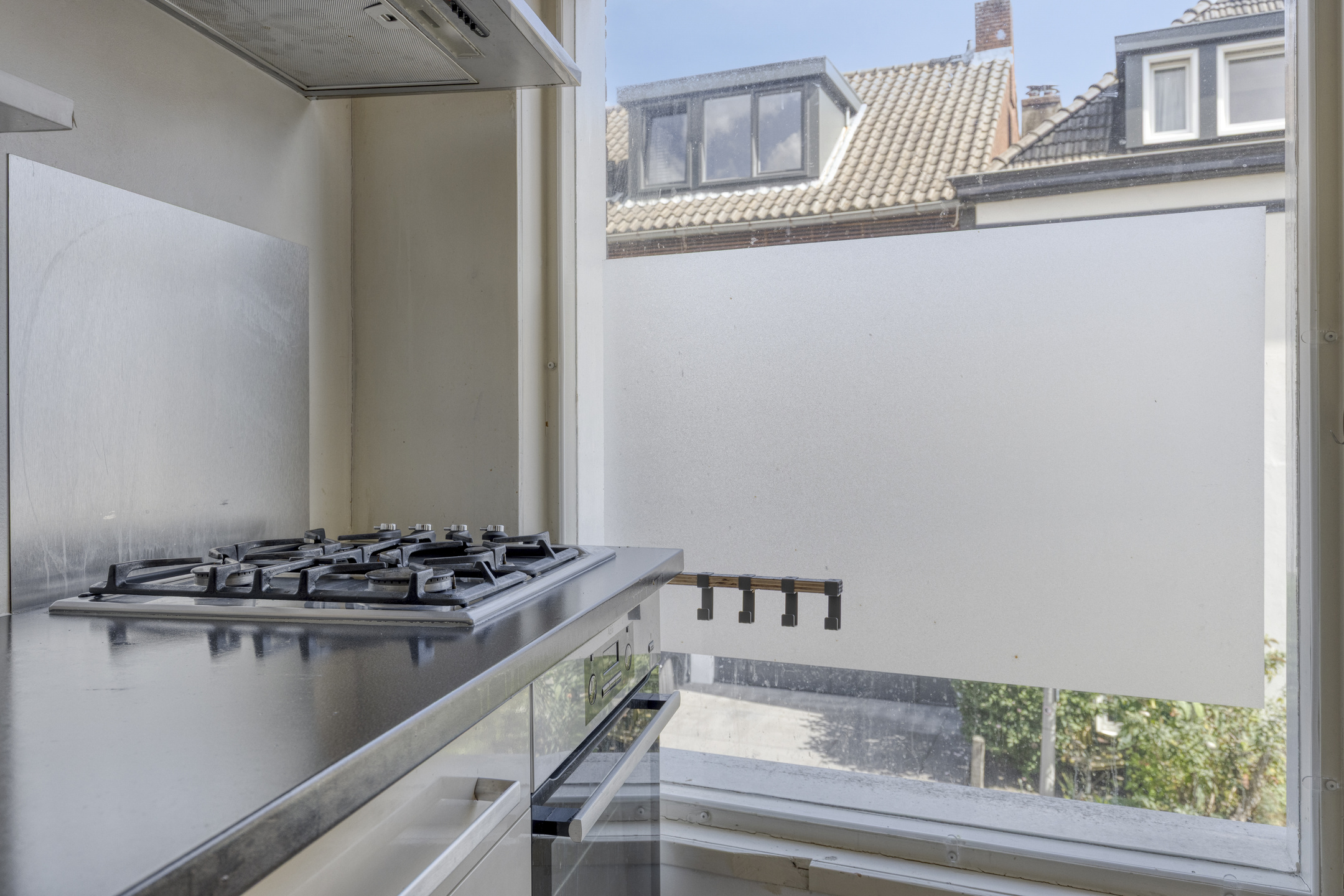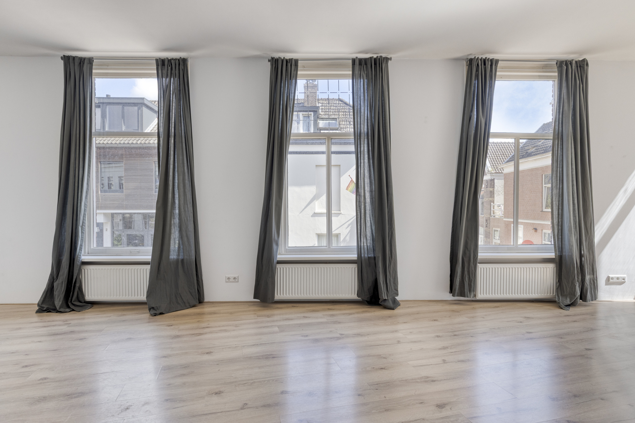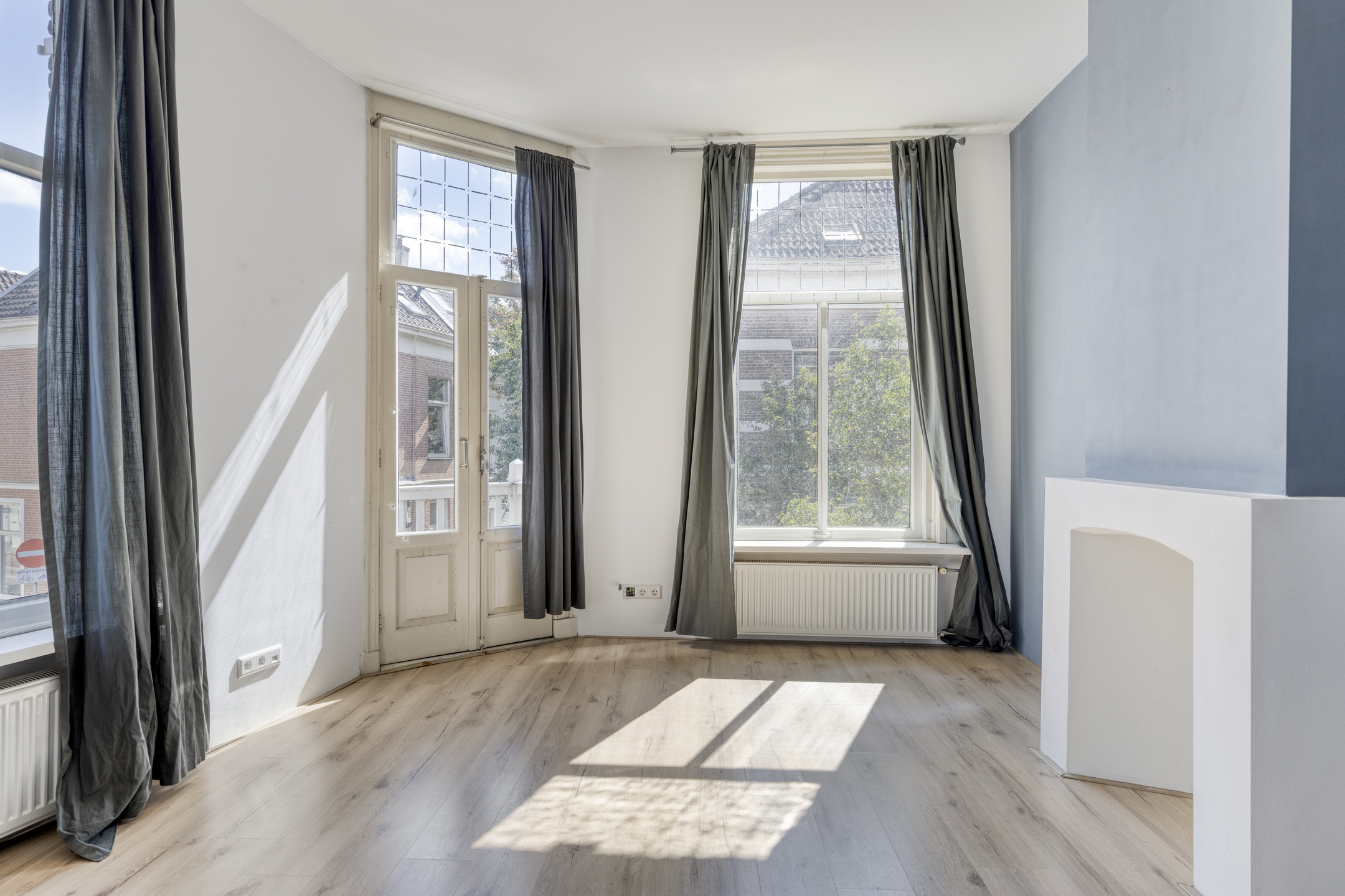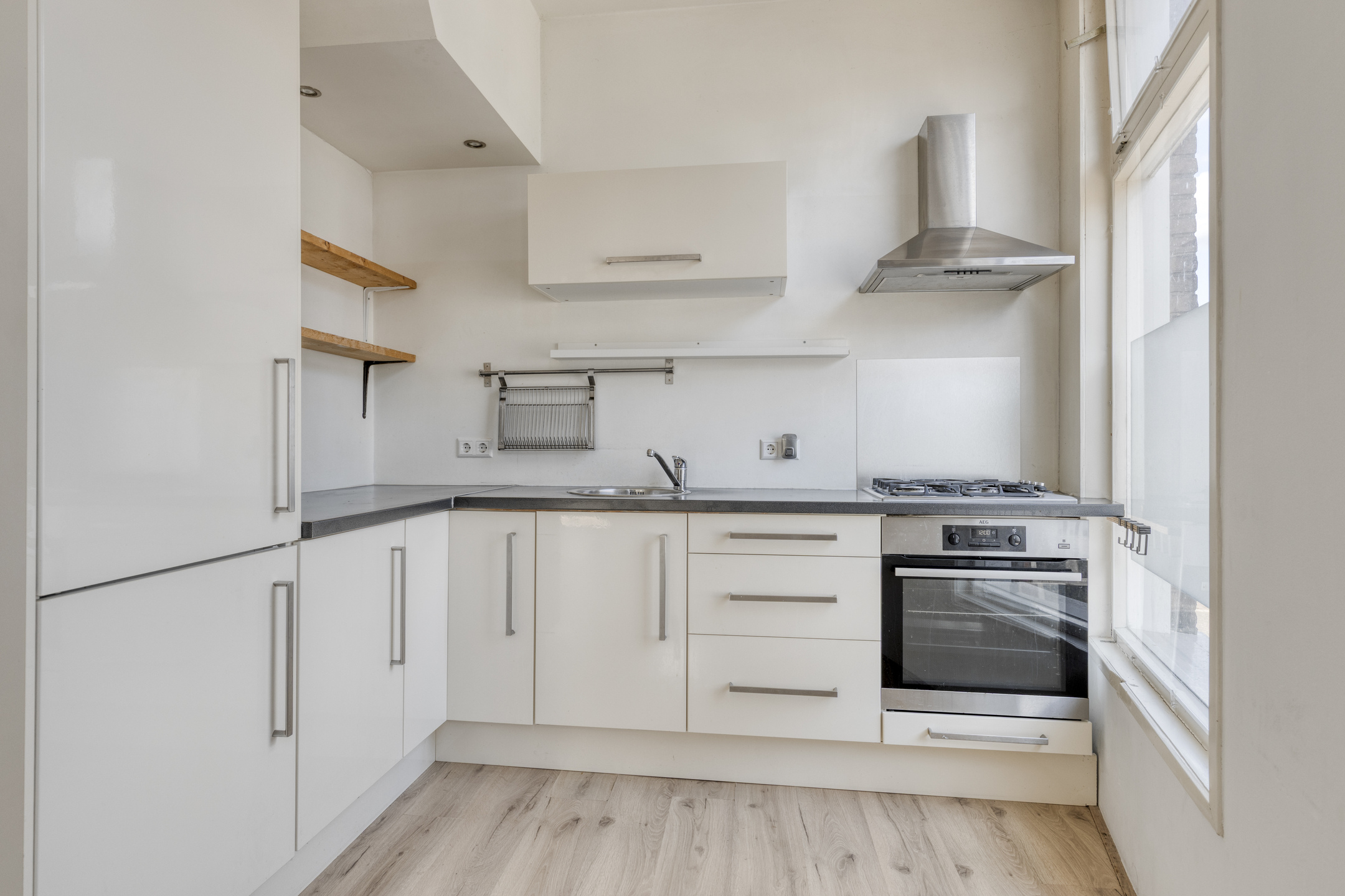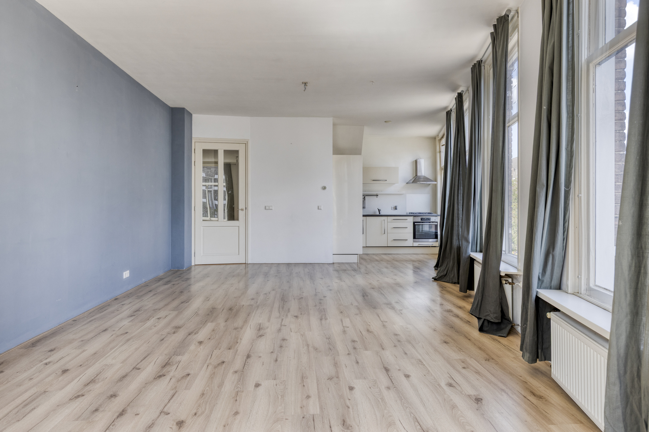 De royale woonkamer is een echte eyecatcher: groot, licht en met mooie raampartijen waardoor het daglicht rijkelijk binnenvalt. Vanuit hier loop je zo het balkon op, waar je heerlijk kunt genieten van de karakteristieke straatjes in de omgeving. De L-vormige keuken sluit direct aan op de woonkamer en biedt voldoende werk- en opbergruimte.