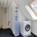De bovenste verdieping biedt een ruime opbergzolder, ideaal voor al je seizoensspullen, koffers of als extra bergruimte.