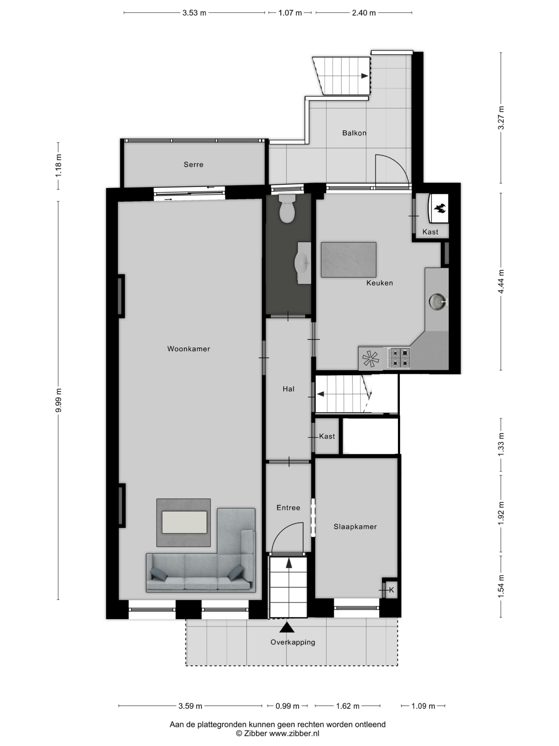 De begane grond biedt een oase van licht en ruimte. De royale woonkamer is de perfecte plek om te ontspannen, met een serre aan de achterzijde. De serre zorgt voor een verlengde leefruimte, ideaal voor gezellige momenten of gewoon om te genieten van de seizoenen. Separaat is een ruime leefkeuken te vinden welke toegang geeft tot een balkon. Het balkon geeft u ook toegang tot de tuin welke is gelegen op het zuiden.