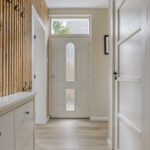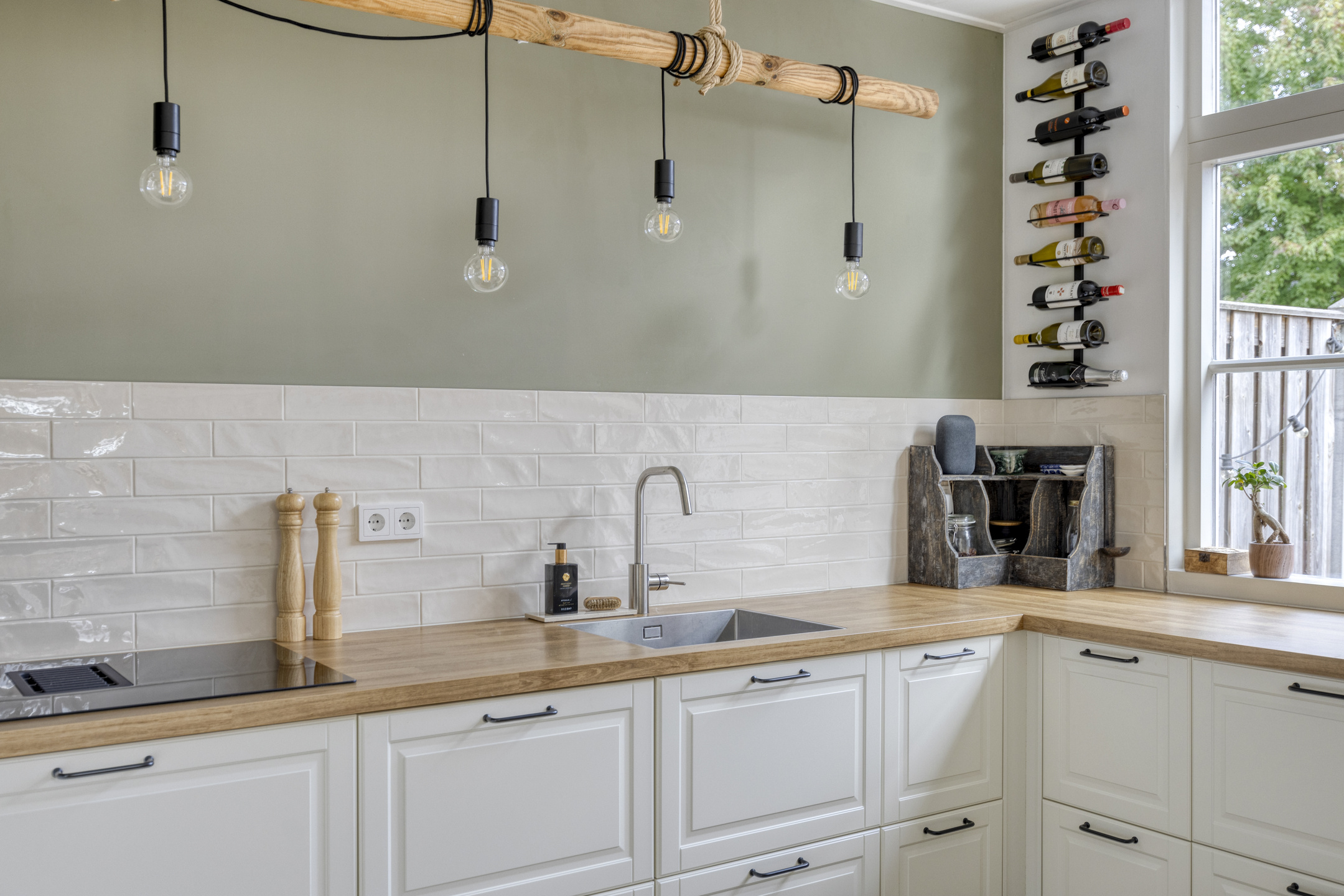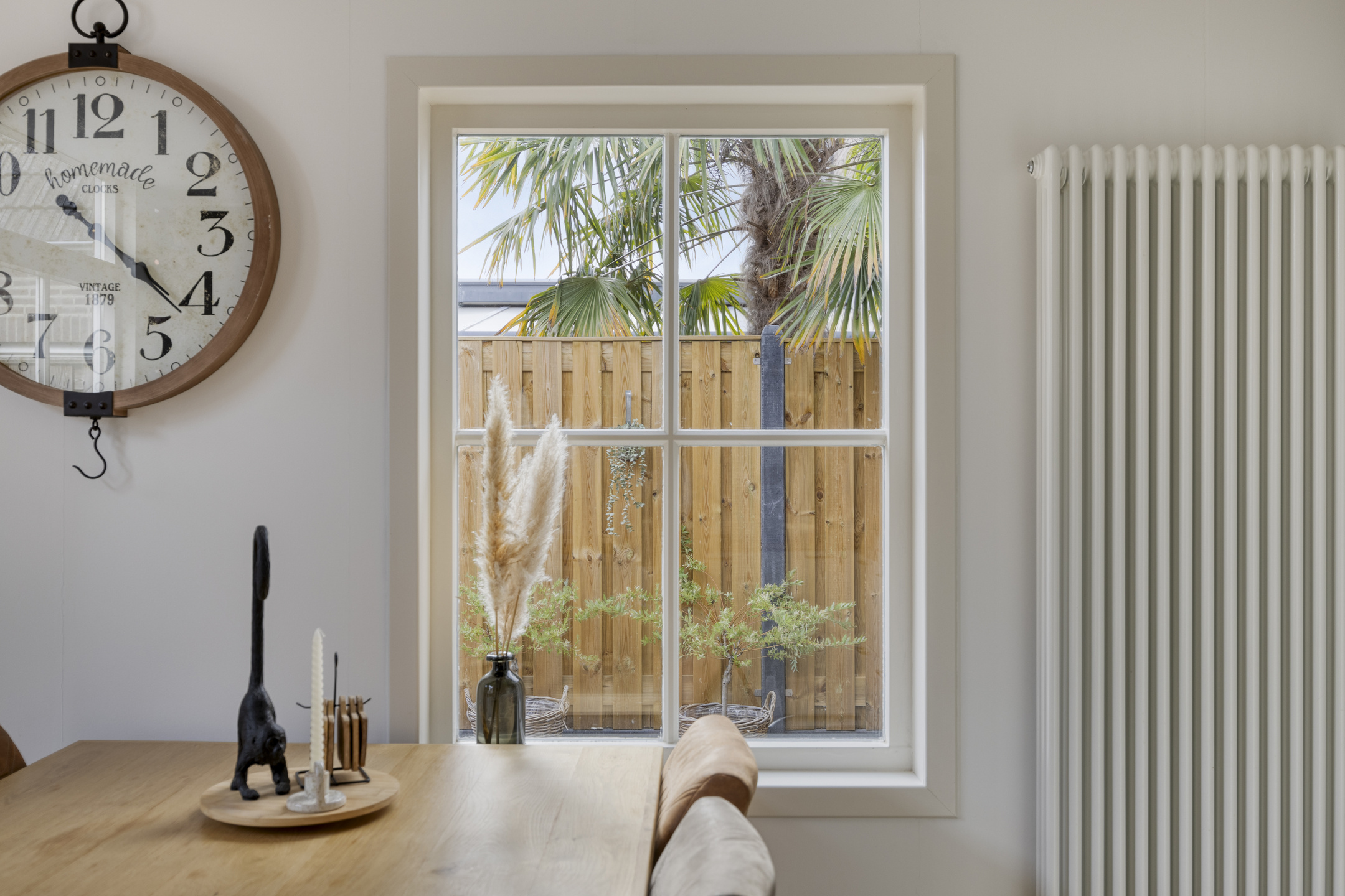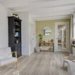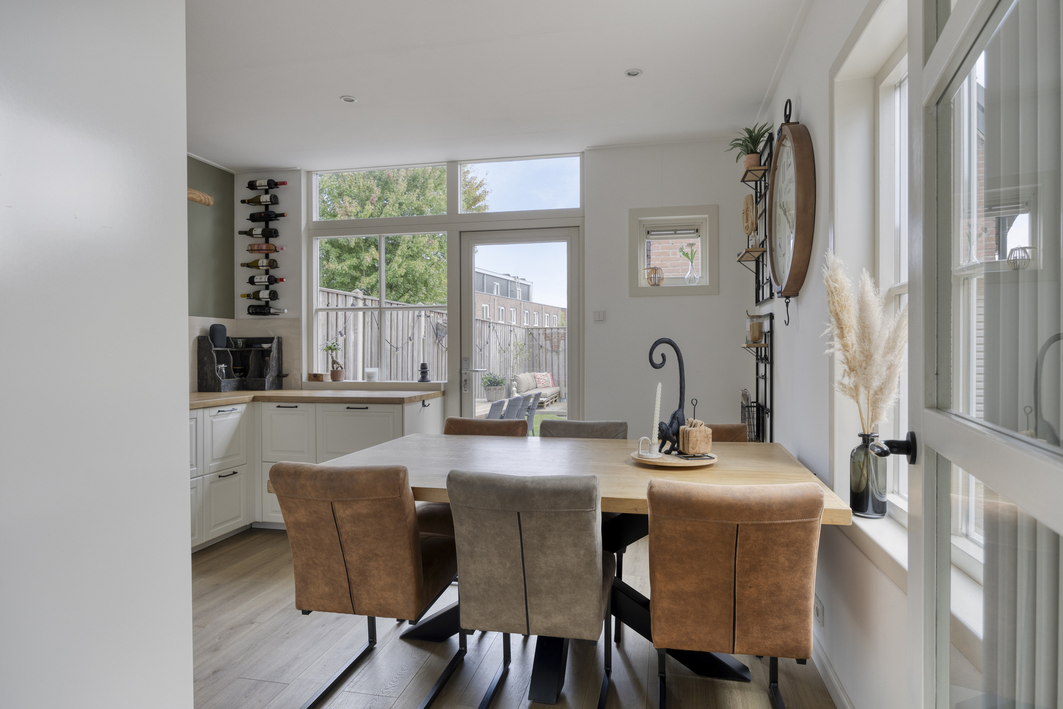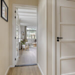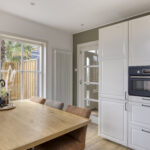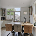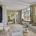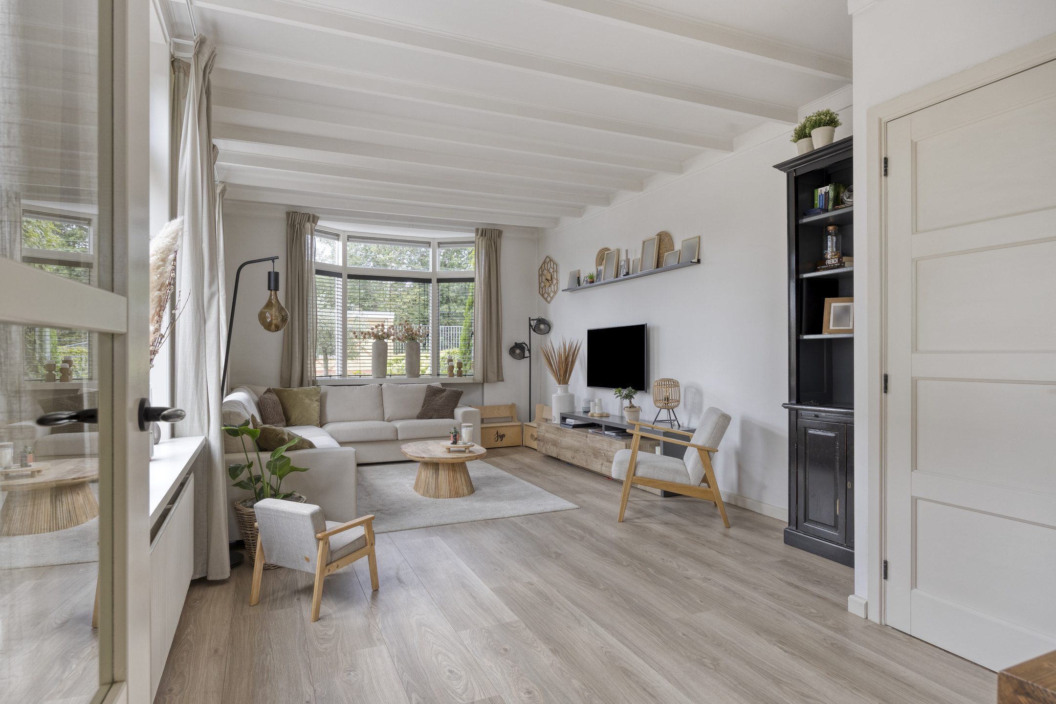 Entree, hal met toegang tot de woonkamer en keuken. Deze ruime en lichte woonkamer met stijlvolle houtlook laminaatvloer voelt aan als een heerlijke woonsfeer. Vanuit de hal stap je de lichte keuken binnen, compleet met handige inbouwapparatuur en uitzicht op de tuin. De keuken is voorzien van inductiekookplaat met afzuiging, vaatwasser, koelkast, vriezer en combimagnetron.
