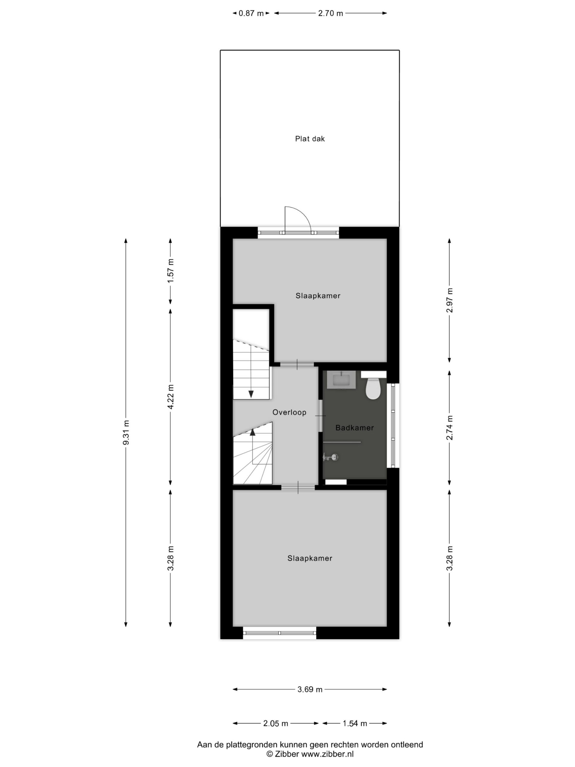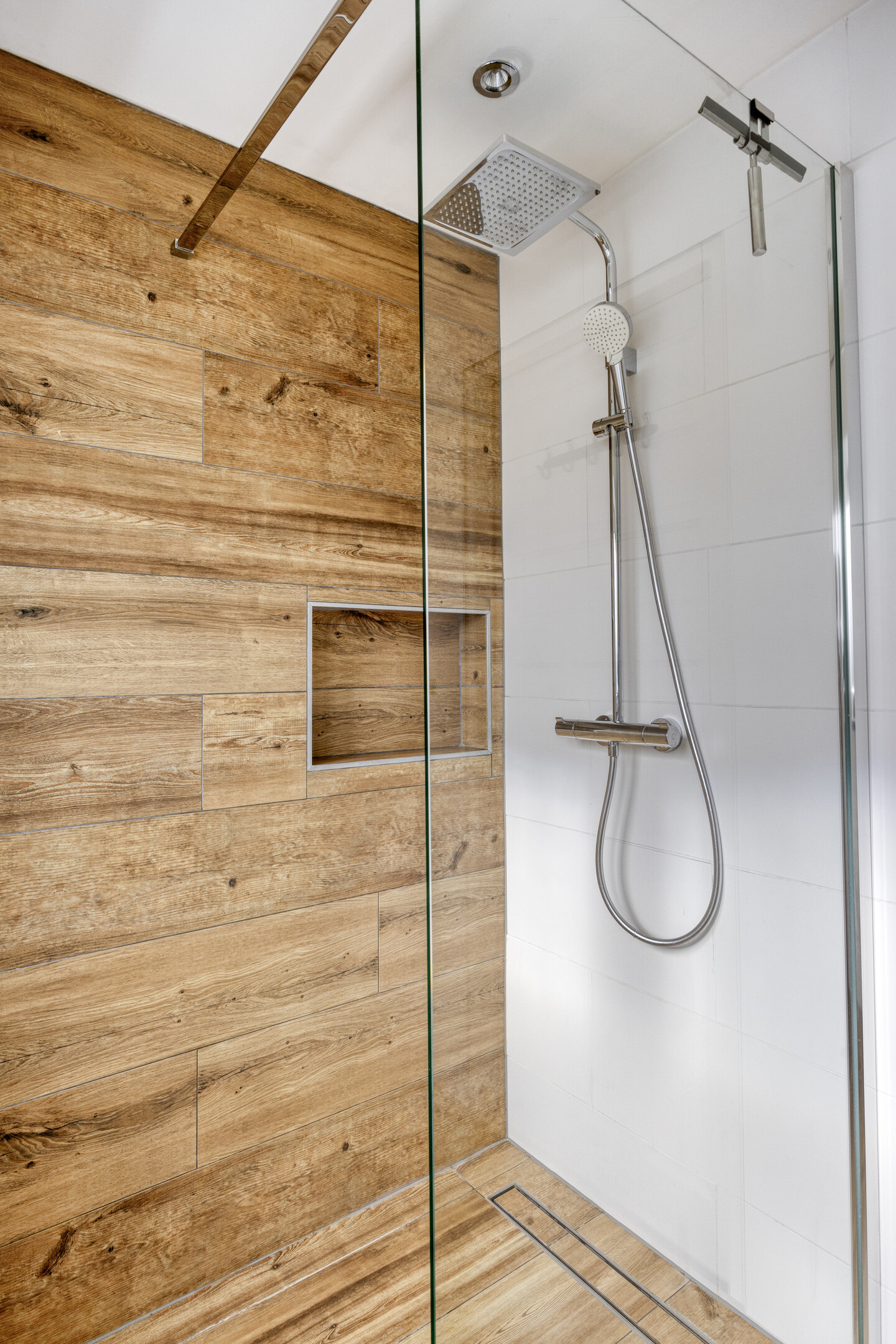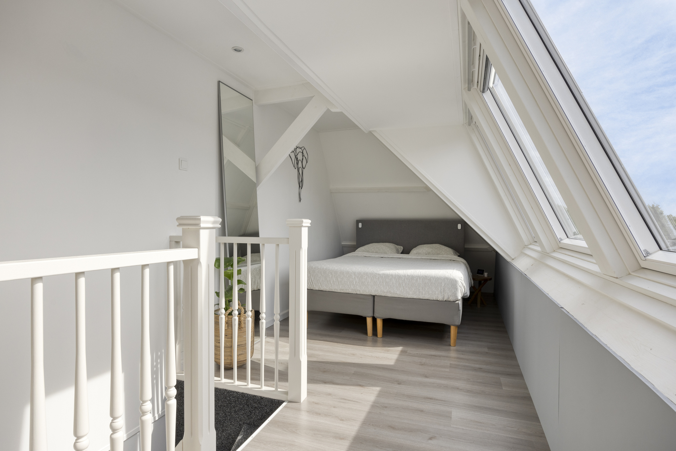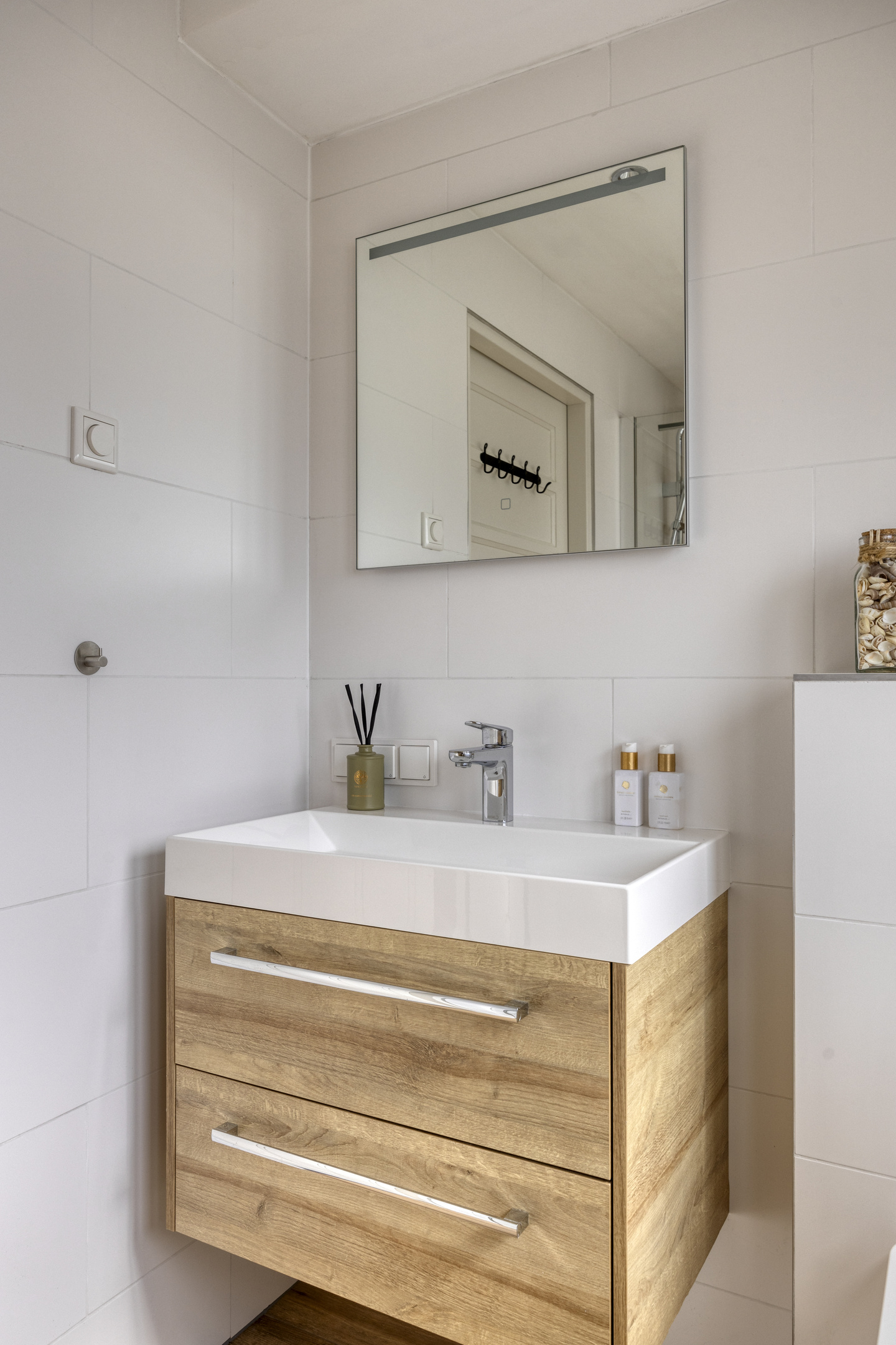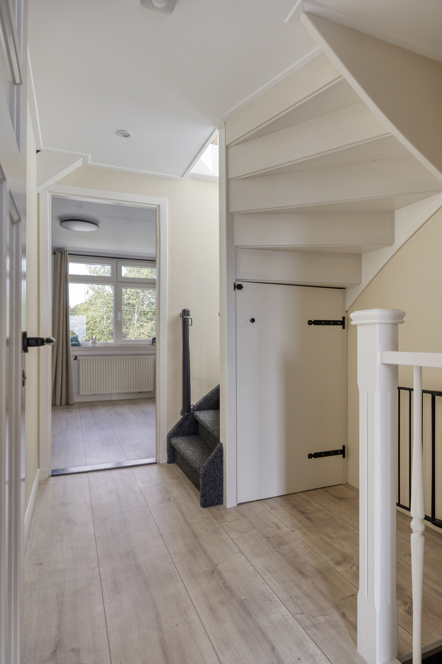 Overloop, 2 slaapkamers en de badkamer met inloopdouche, wastafel en 2e toilet.
