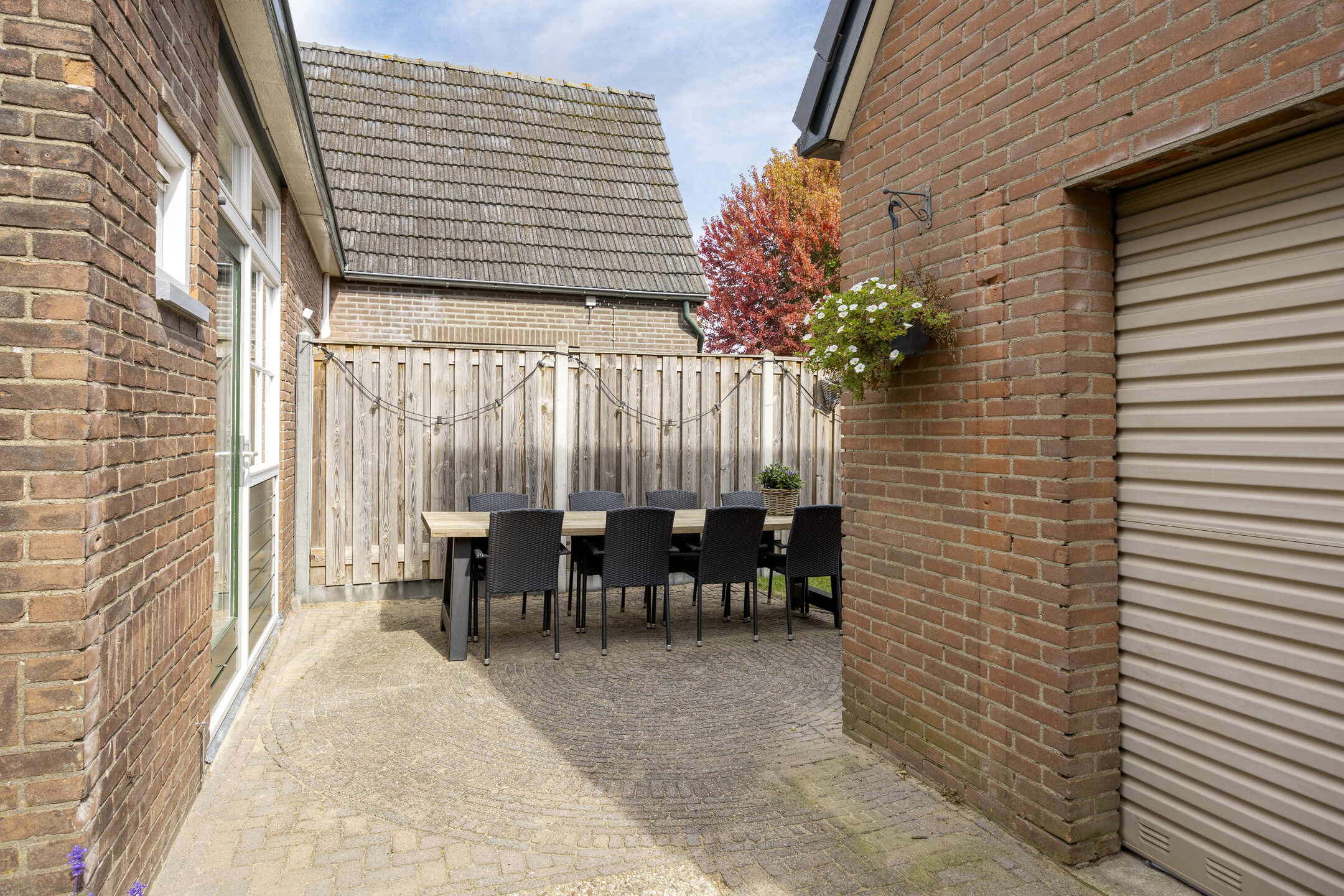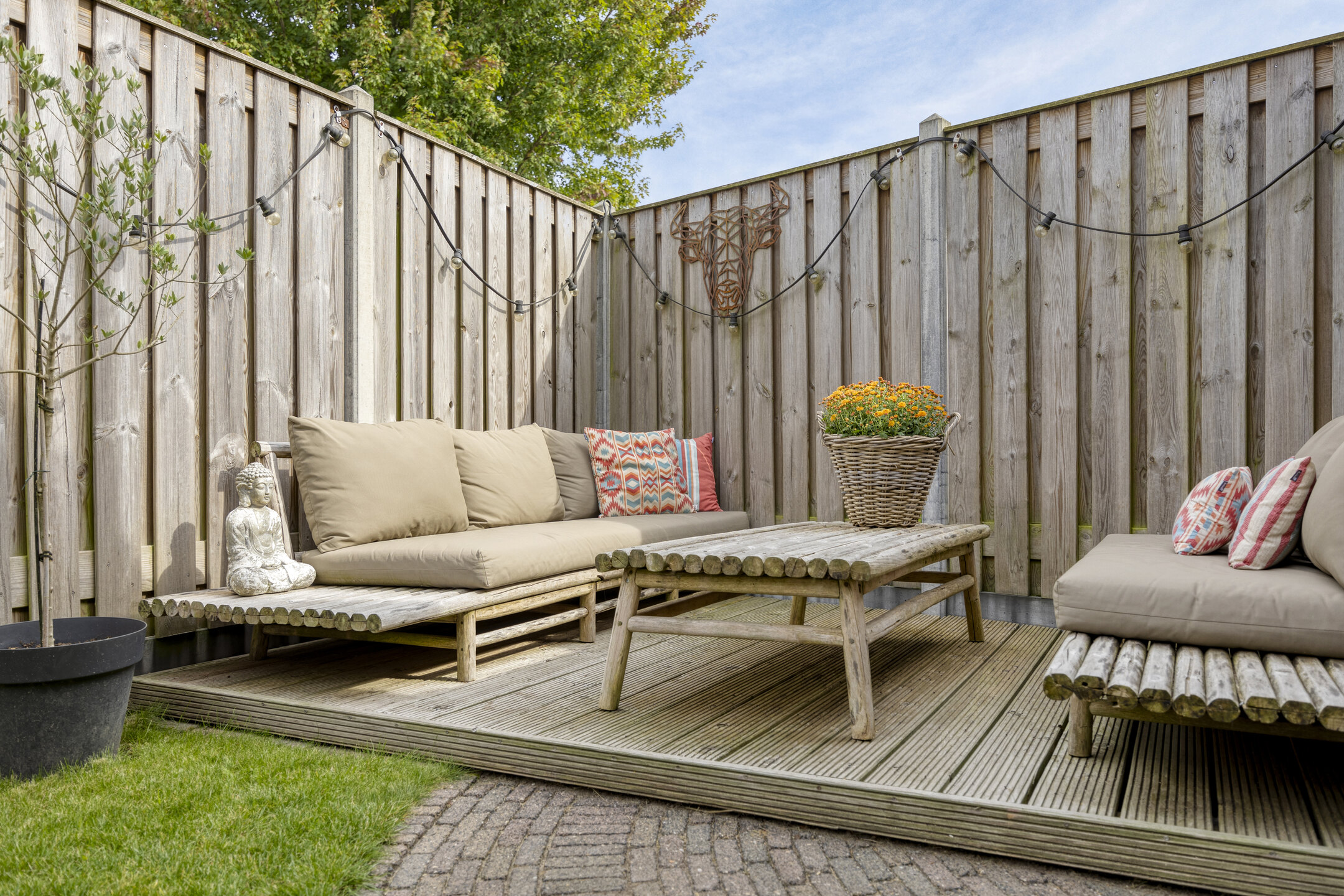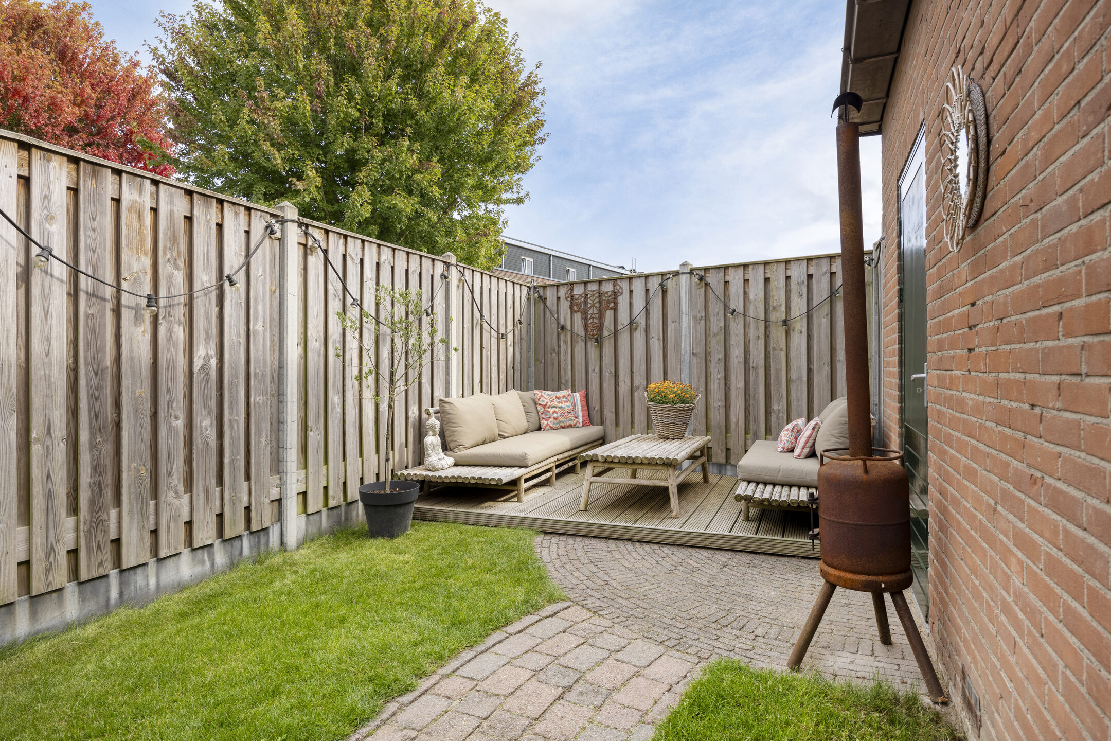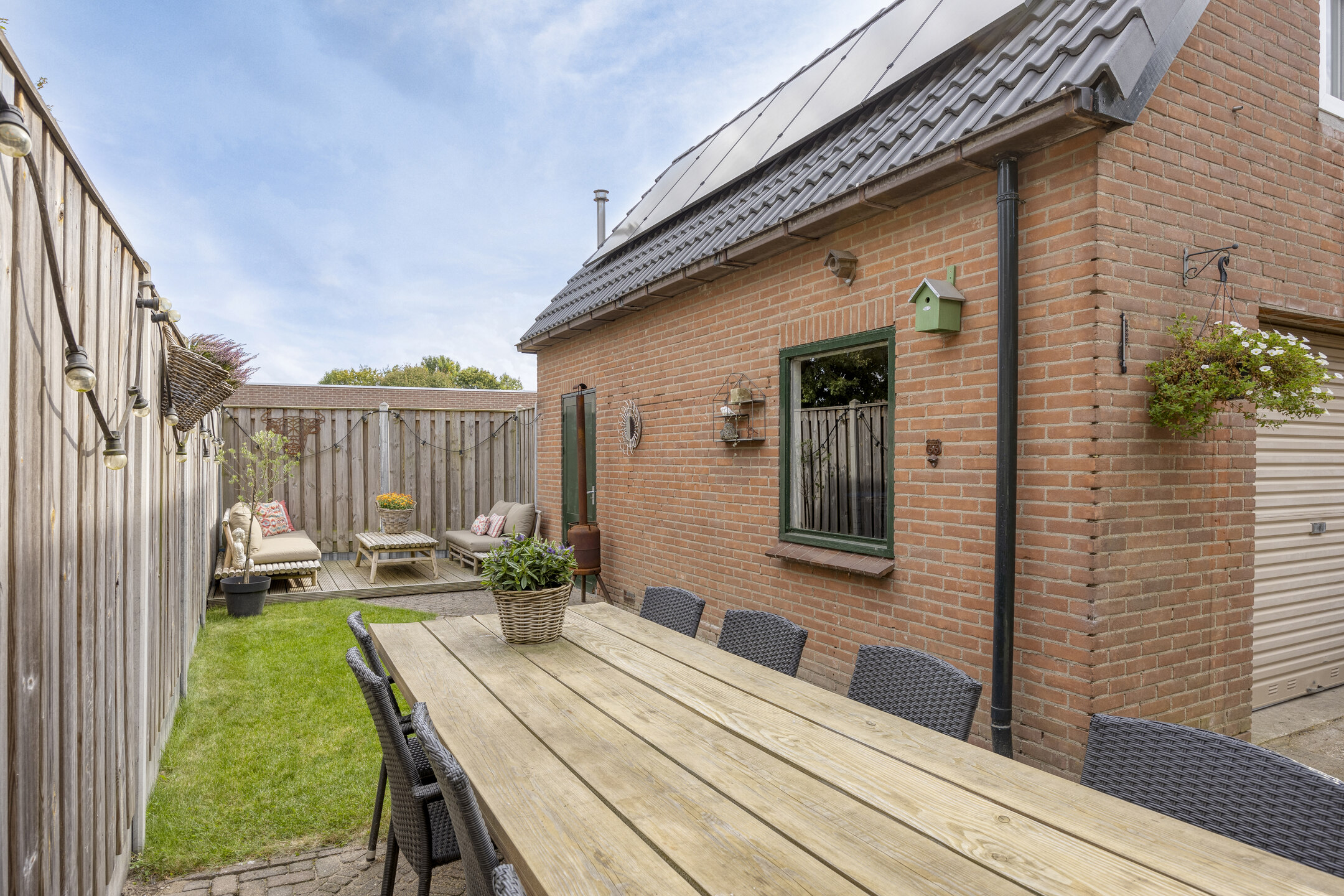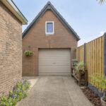 De besloten tuin biedt volop privacy en directe toegang tot de garage. Parkeren kan gewoon op eigen terrein of aan de straat.