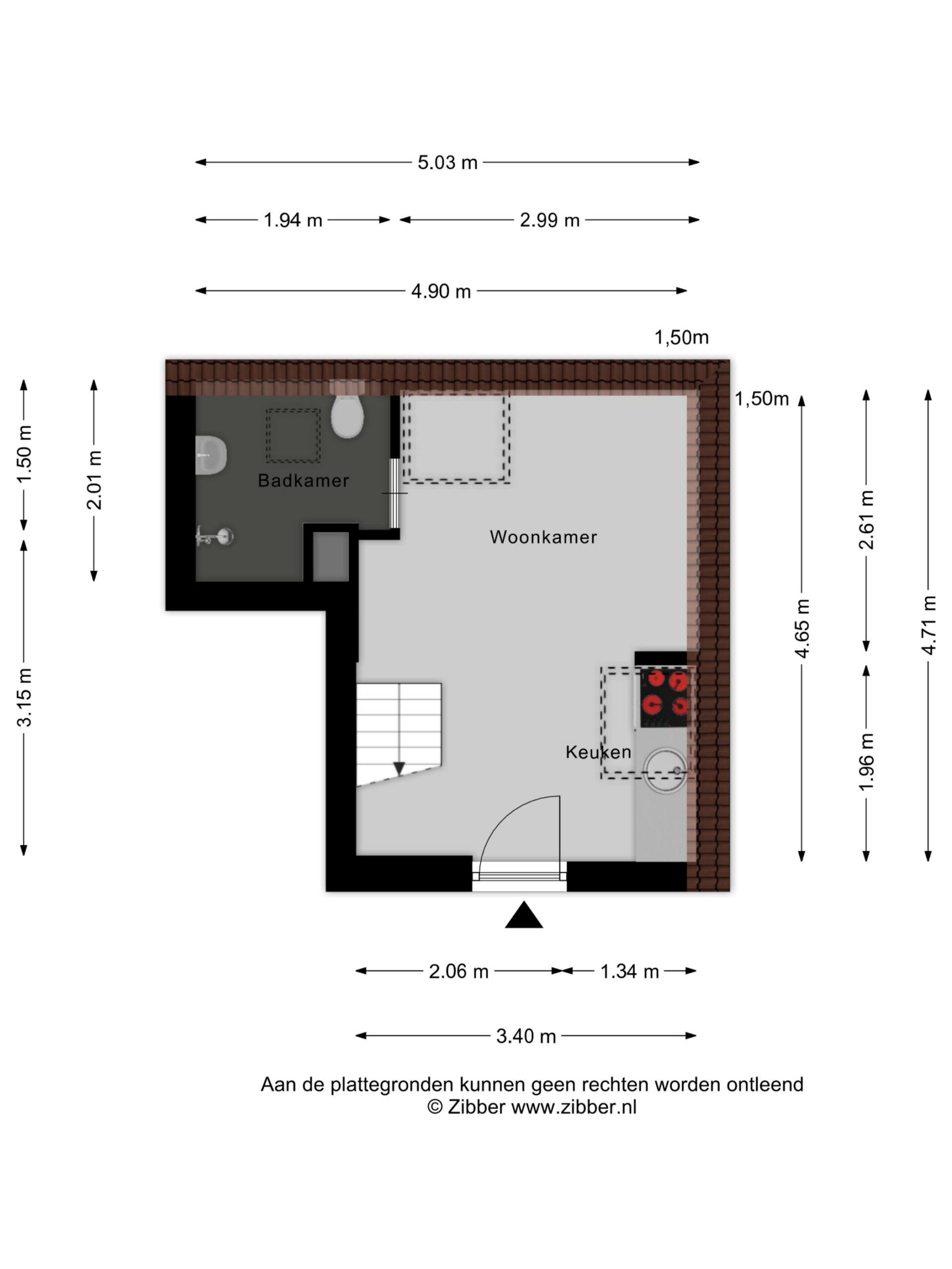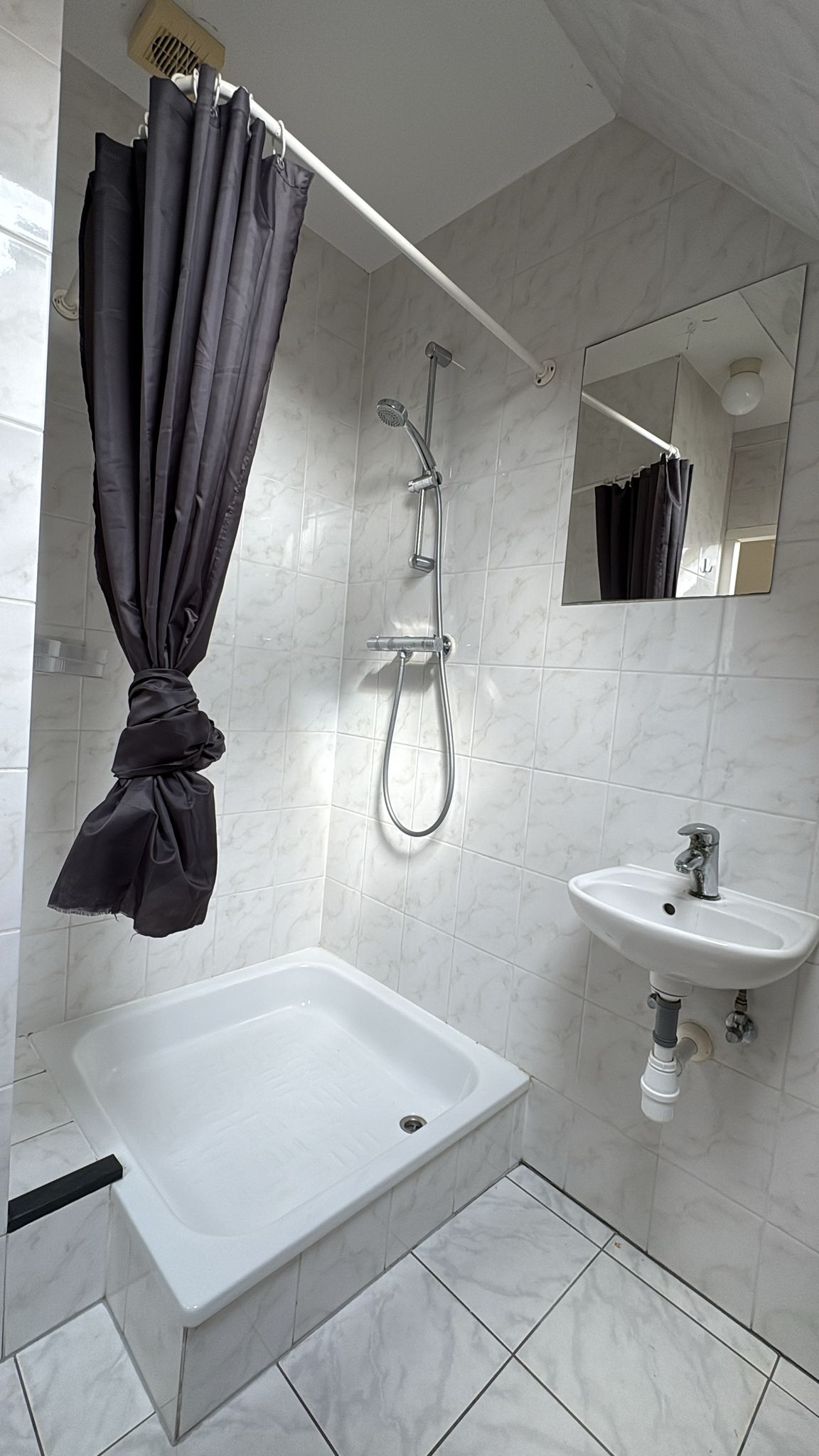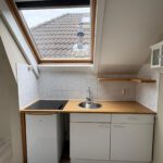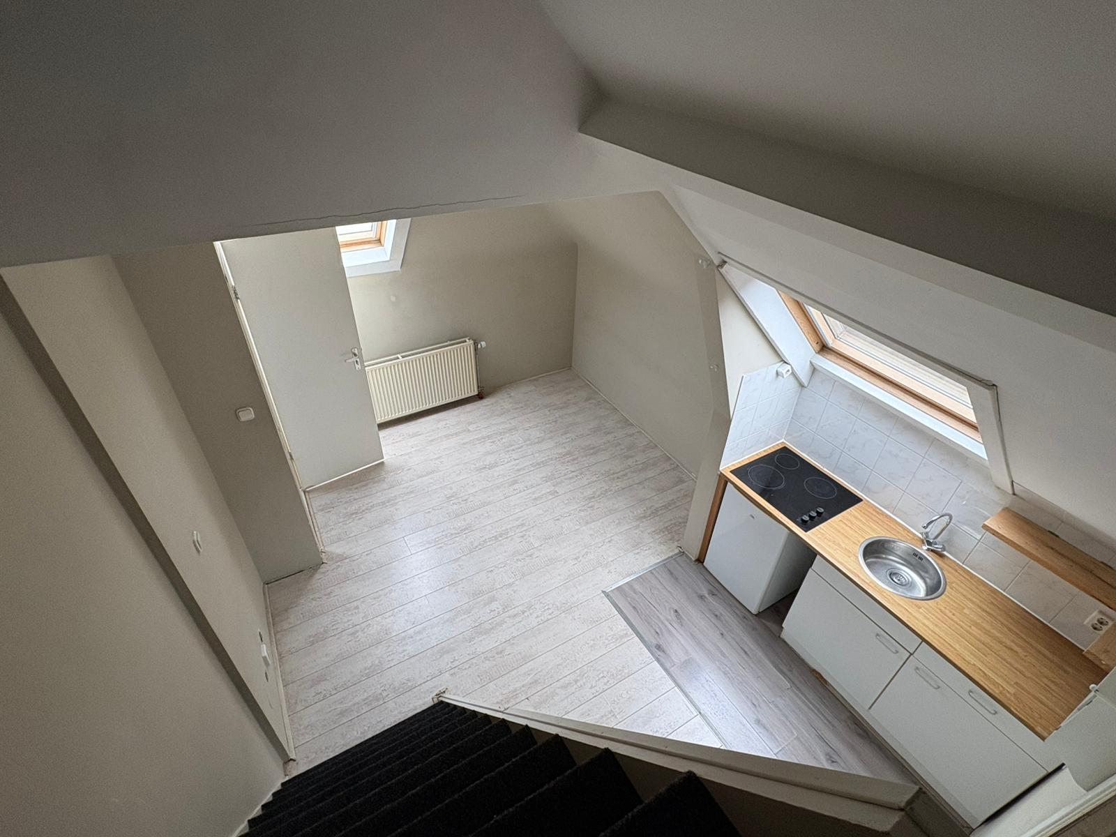 Deze is de woning slim en efficiënt ingedeeld. De woonkamer met keuken vormt het hart van de ruimte. De open keuken is compact maar functioneel en ideaal voor dagelijks gebruik. Via de trap bereik je de slaapvide. Deze is volledig uitgerust met douche, wastafel en toilet.