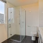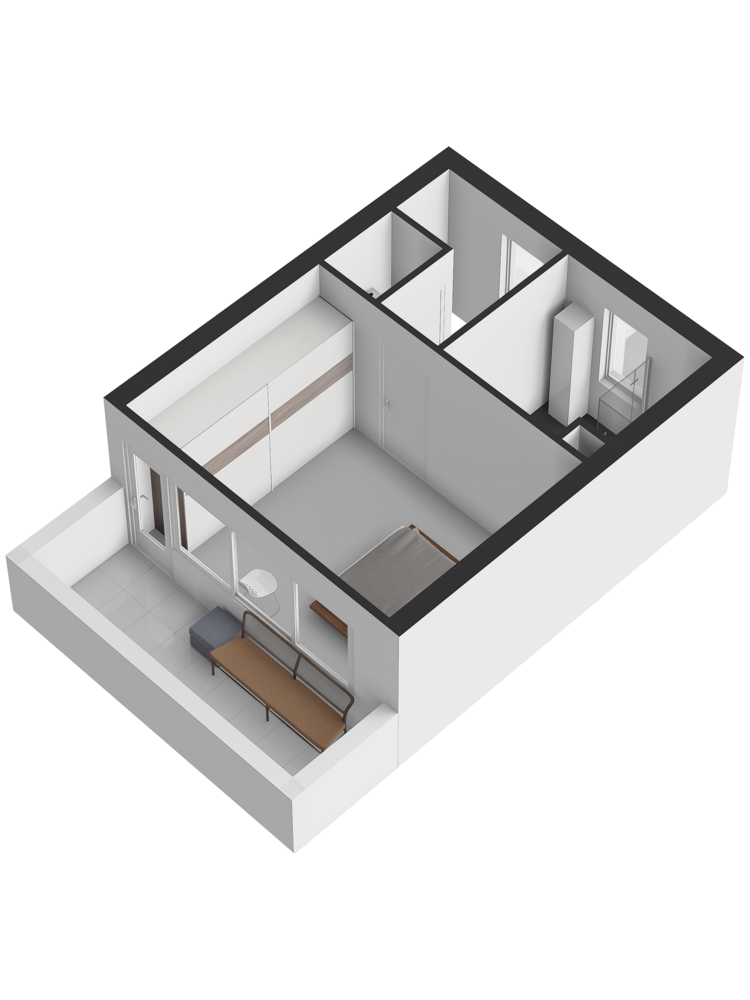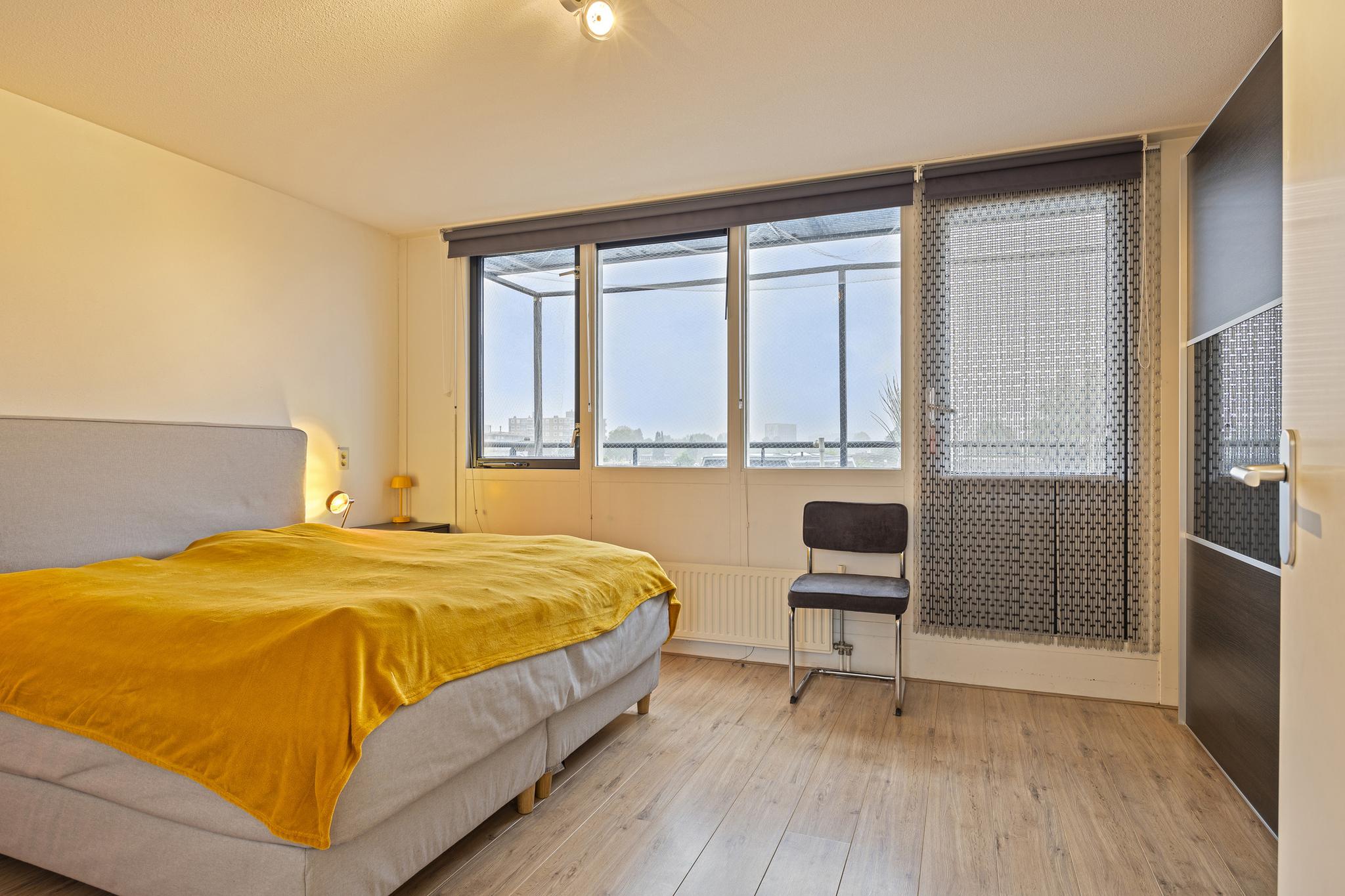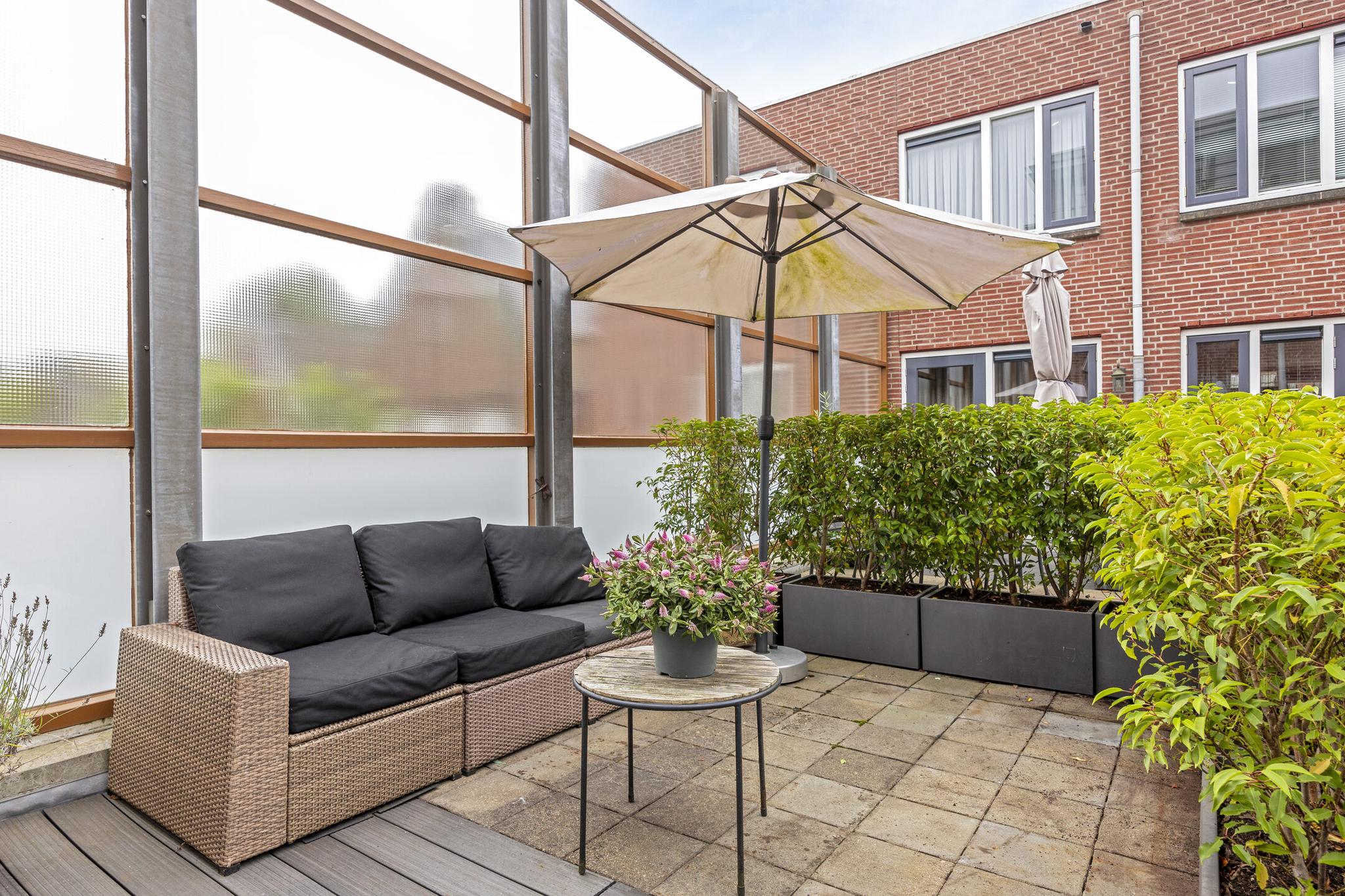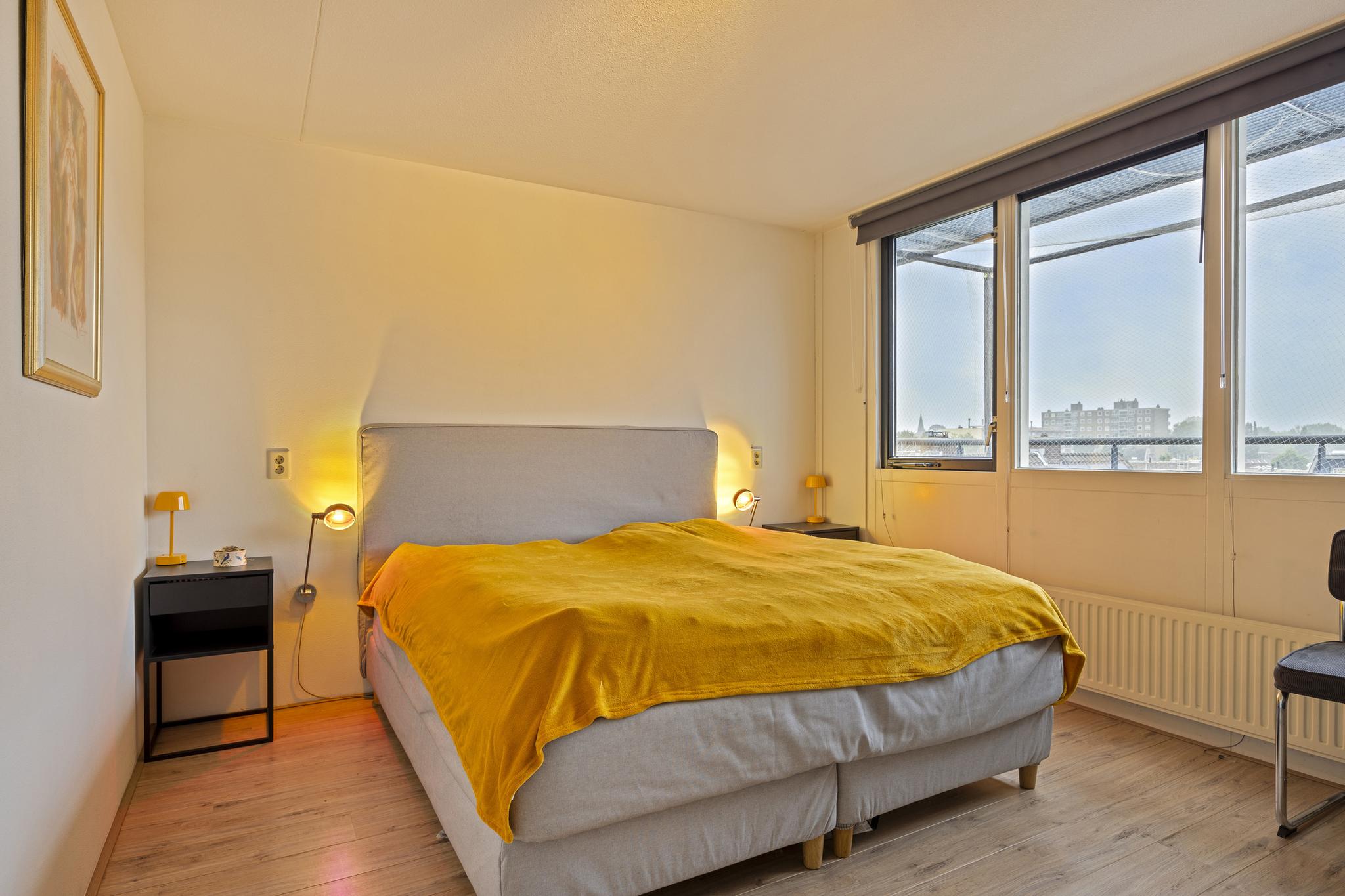 Derde verdieping: Overloop, bergkast met cv-opstelling, luxe badkamer met douche, dubbel wastafelmeubel, toilet, designradiator, ruime slaapkamer met terras op het zuiden.