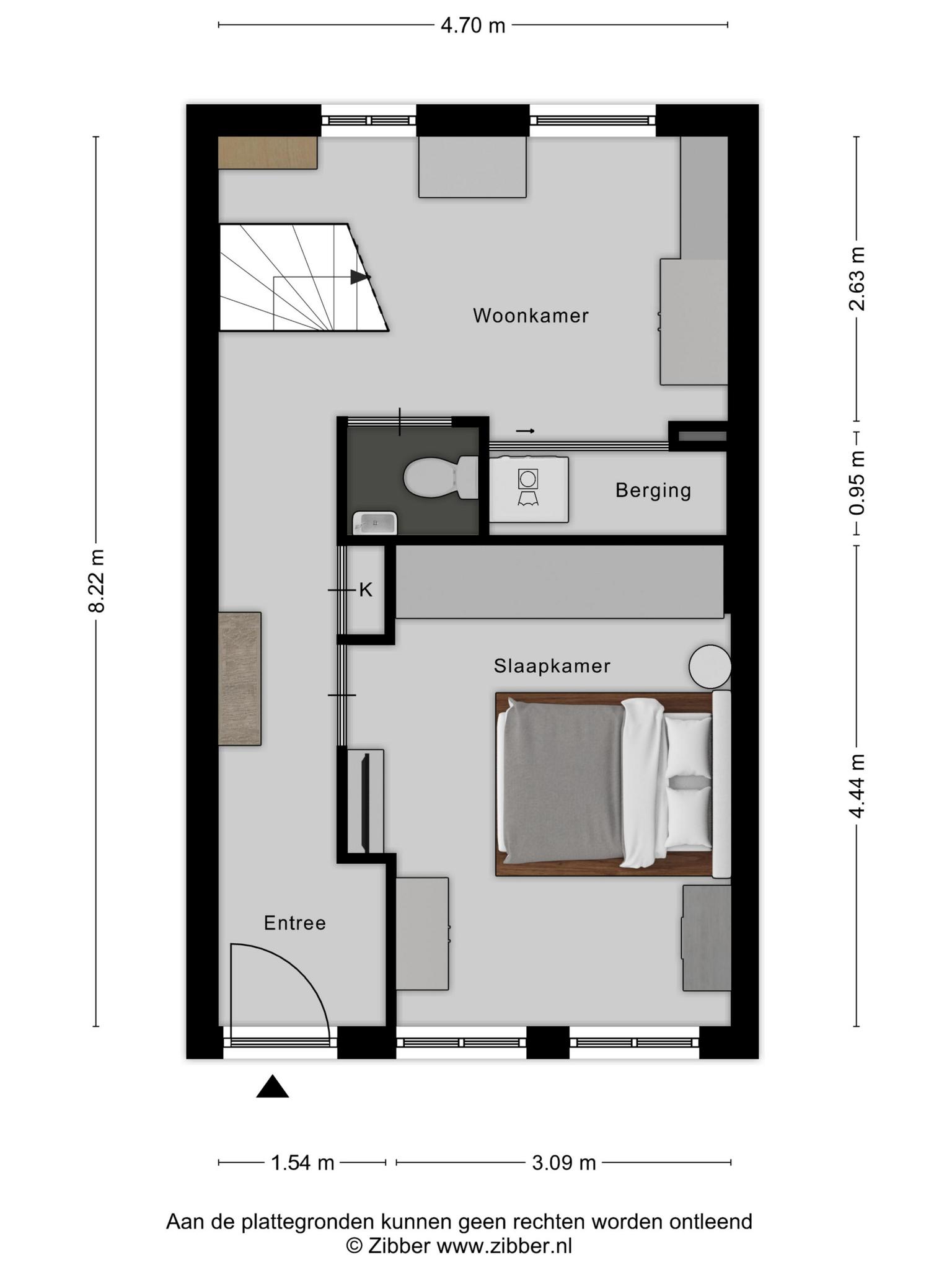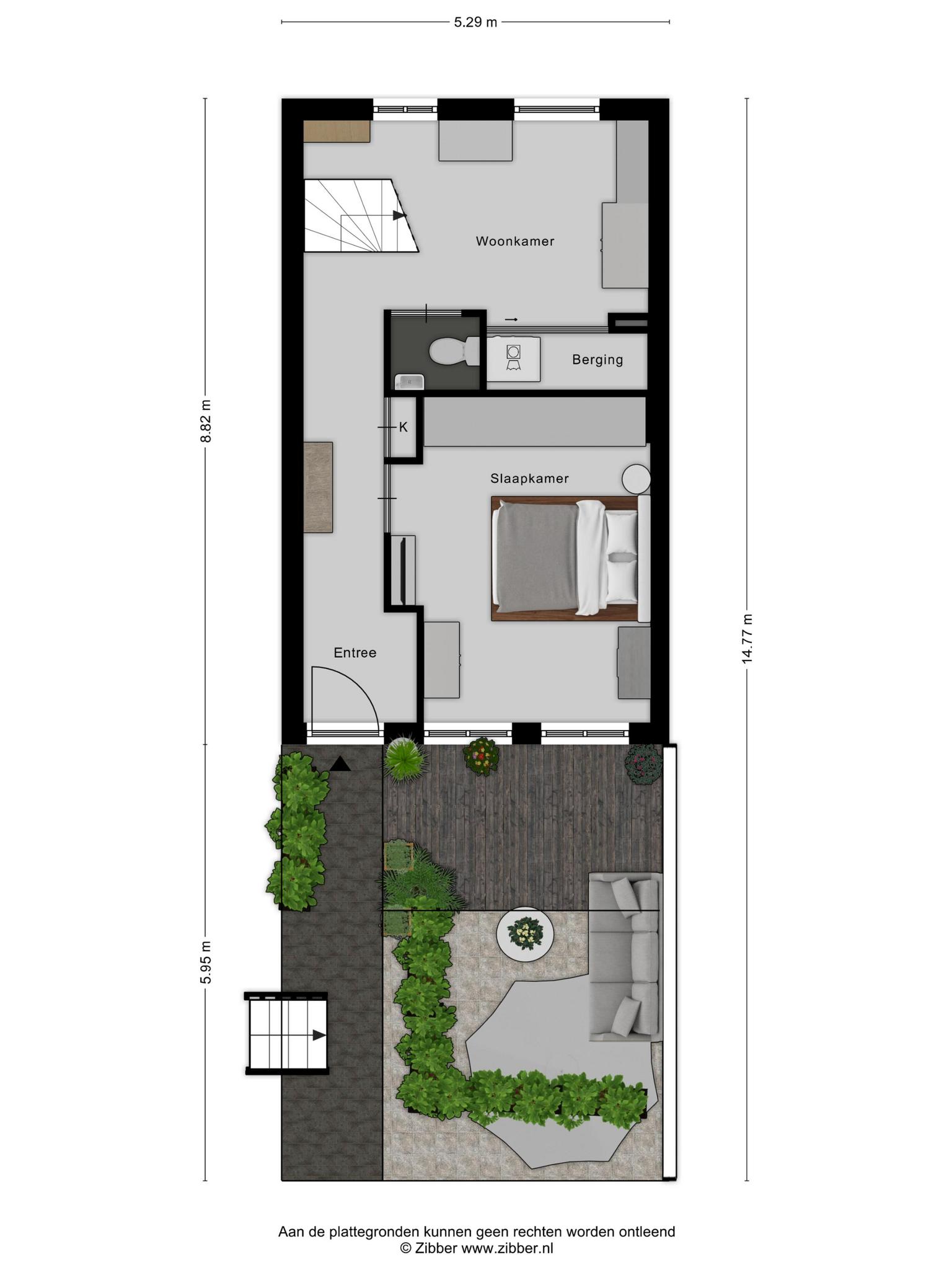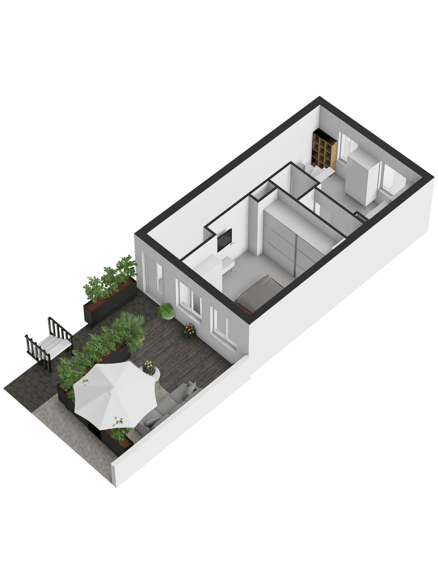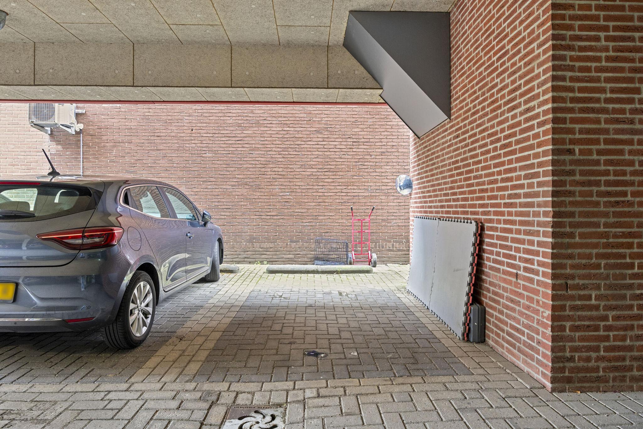 Op straatniveau is de berging en een vaste parkeerplaats die via een elektrische deur te bereiken is.