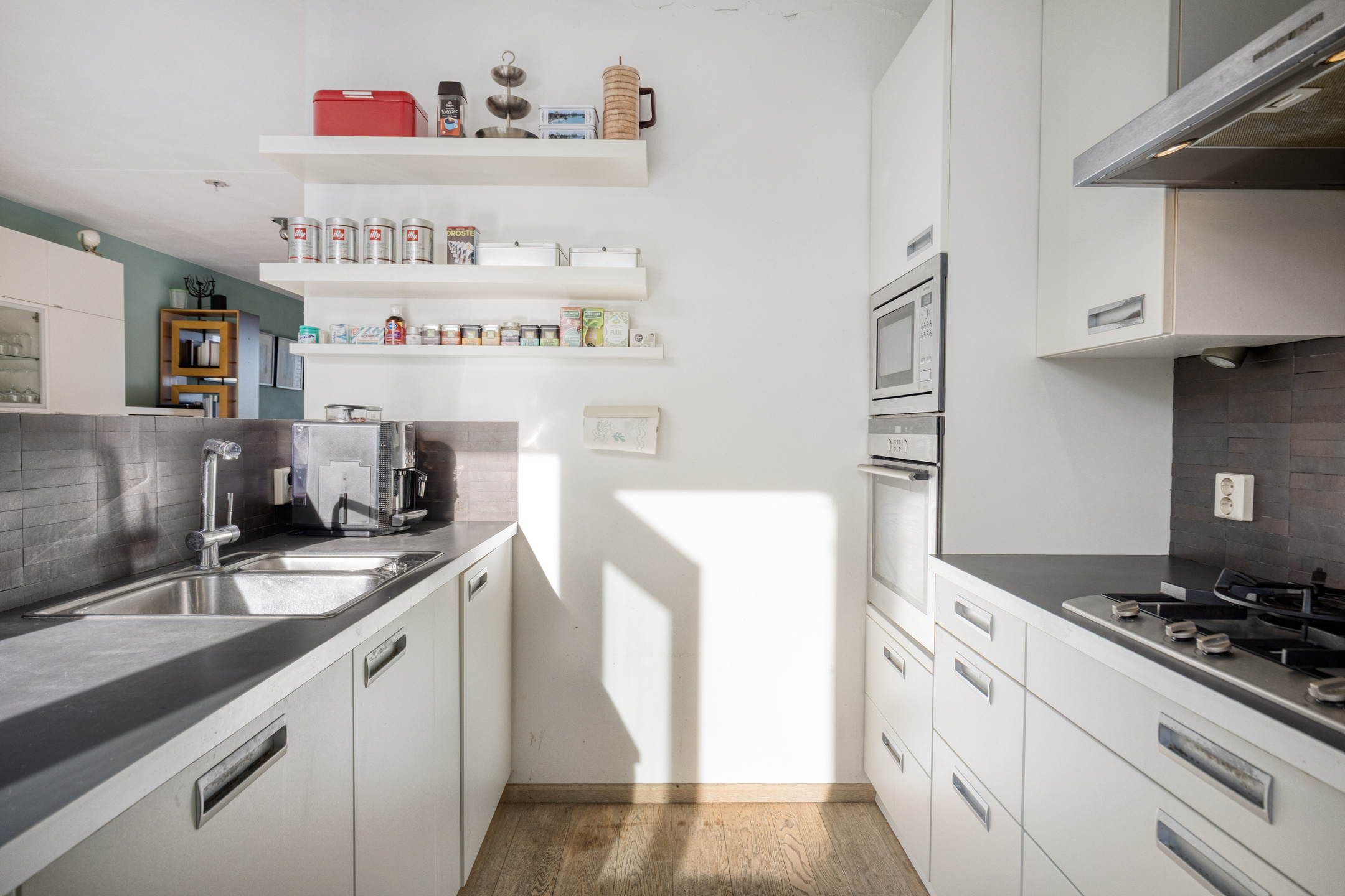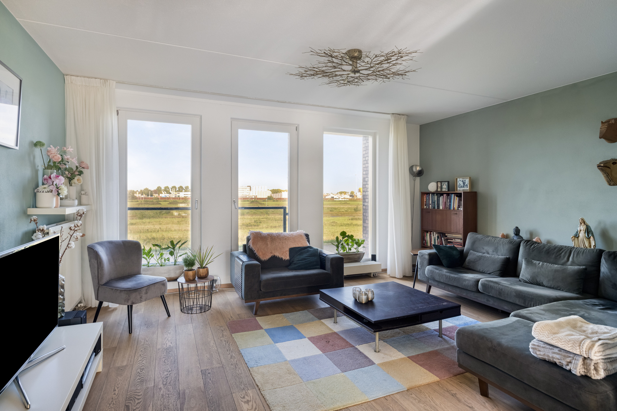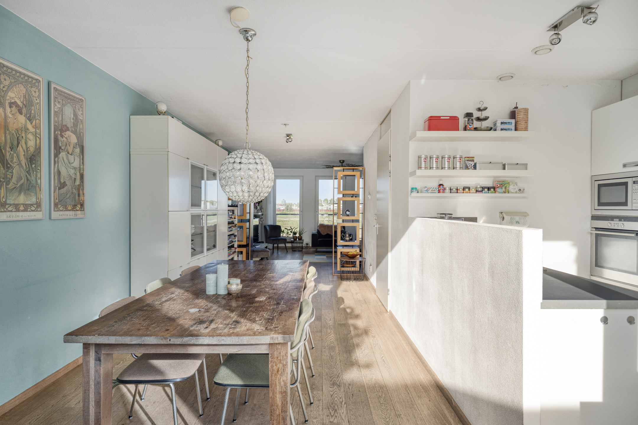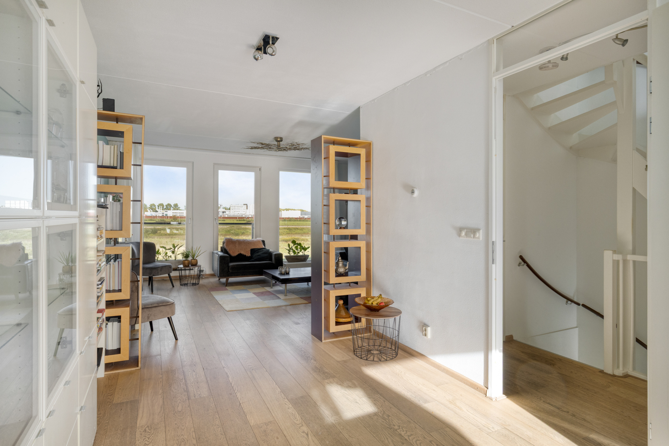 De woonverdieping vormt het hart van de woning. De ruime en lichte woonkamer heeft grote ramen aan beide zijden en biedt een prachtig uitzicht over het groen en de uiterwaarden. De moderne open keuken is compleet uitgevoerd en sluit perfect aan bij het woongedeelte. Vanuit de keuken is het zonnige terras bereikbaar: een heerlijke plek om buiten te zitten en te genieten van de rust en ruimte. De gehele verdieping is strak afgewerkt en voorzien van een moderne vloer.
