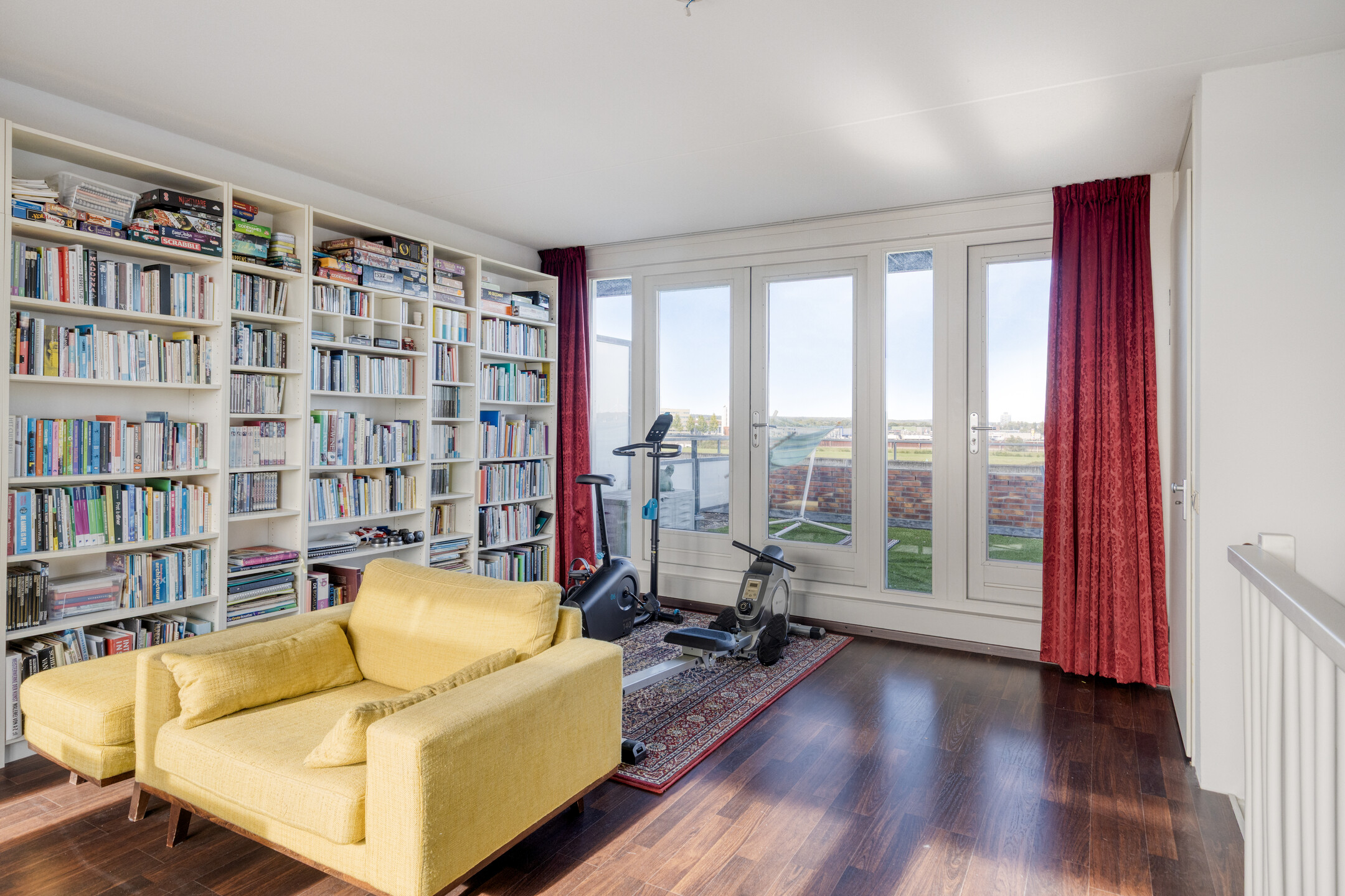 Op de bovenste verdieping bevinden zich nog volwaardige slaapkamer, uitstekend geschikt als werk-, logeer- of hobbykamer. Vanuit hier is ook het dakterras bereikbaar, waar je in alle privacy kunt genieten van zon en uitzicht.