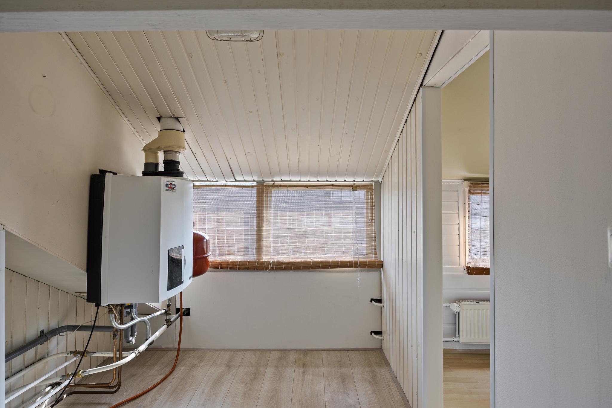 Vaste trap, CV-ruimte (Atag CV-ketel 2016), slaapkamer met dakkapel, bergruimte.