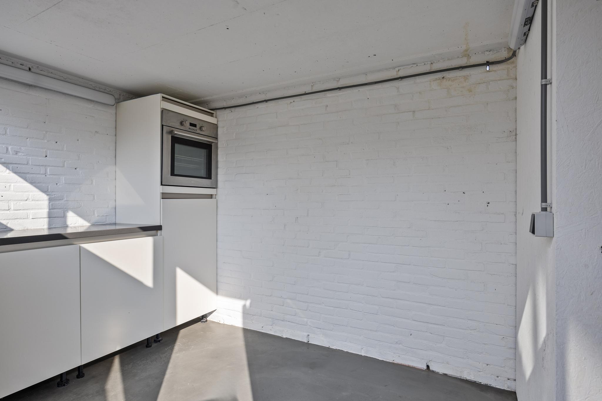 Royale achtertuin op het zuiden. Kleine overkapping grenzend aan stenen berging met kasten.